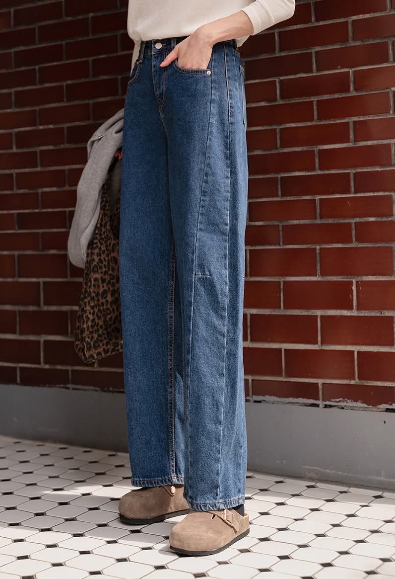 顯瘦復古刷藍小喇叭牛仔褲