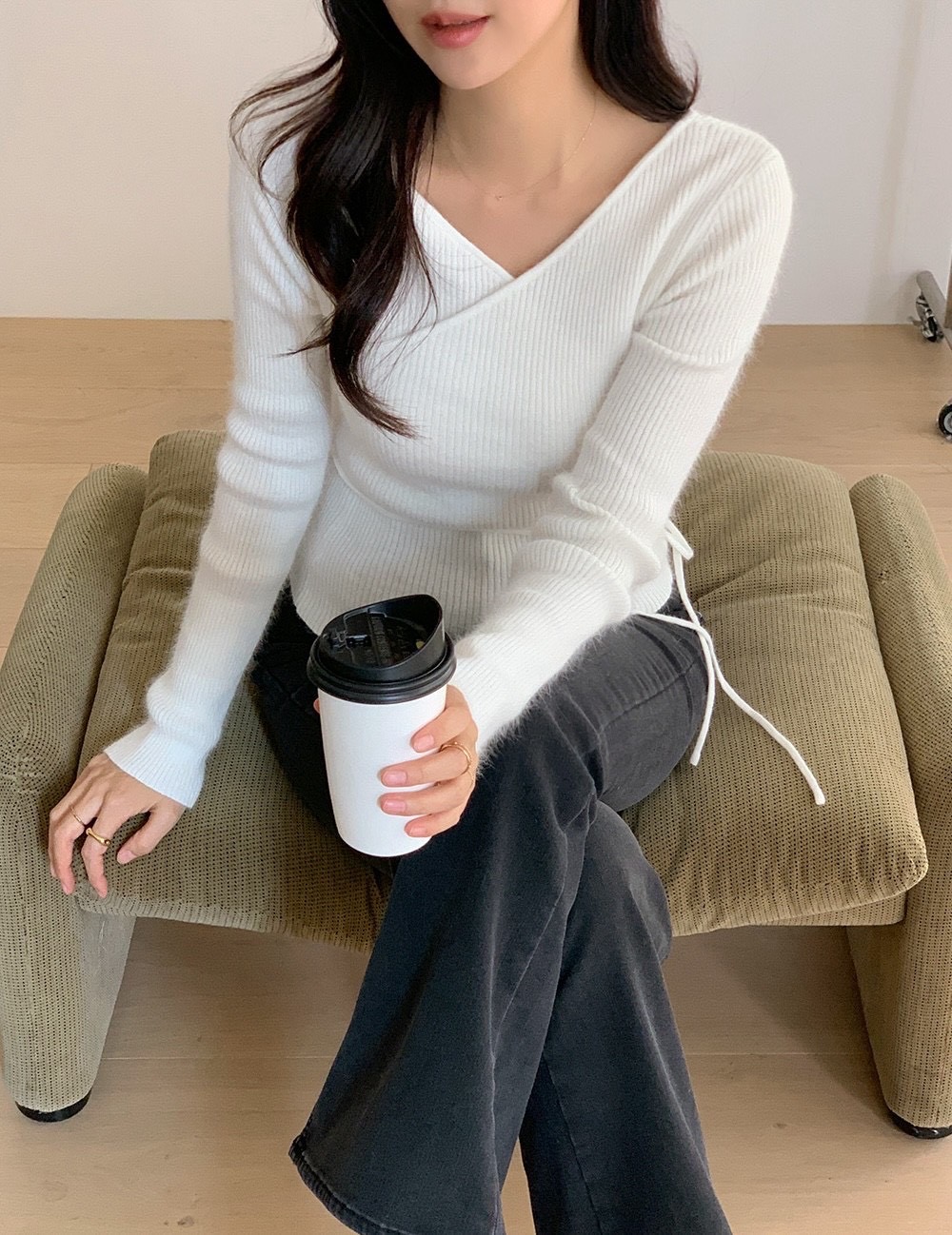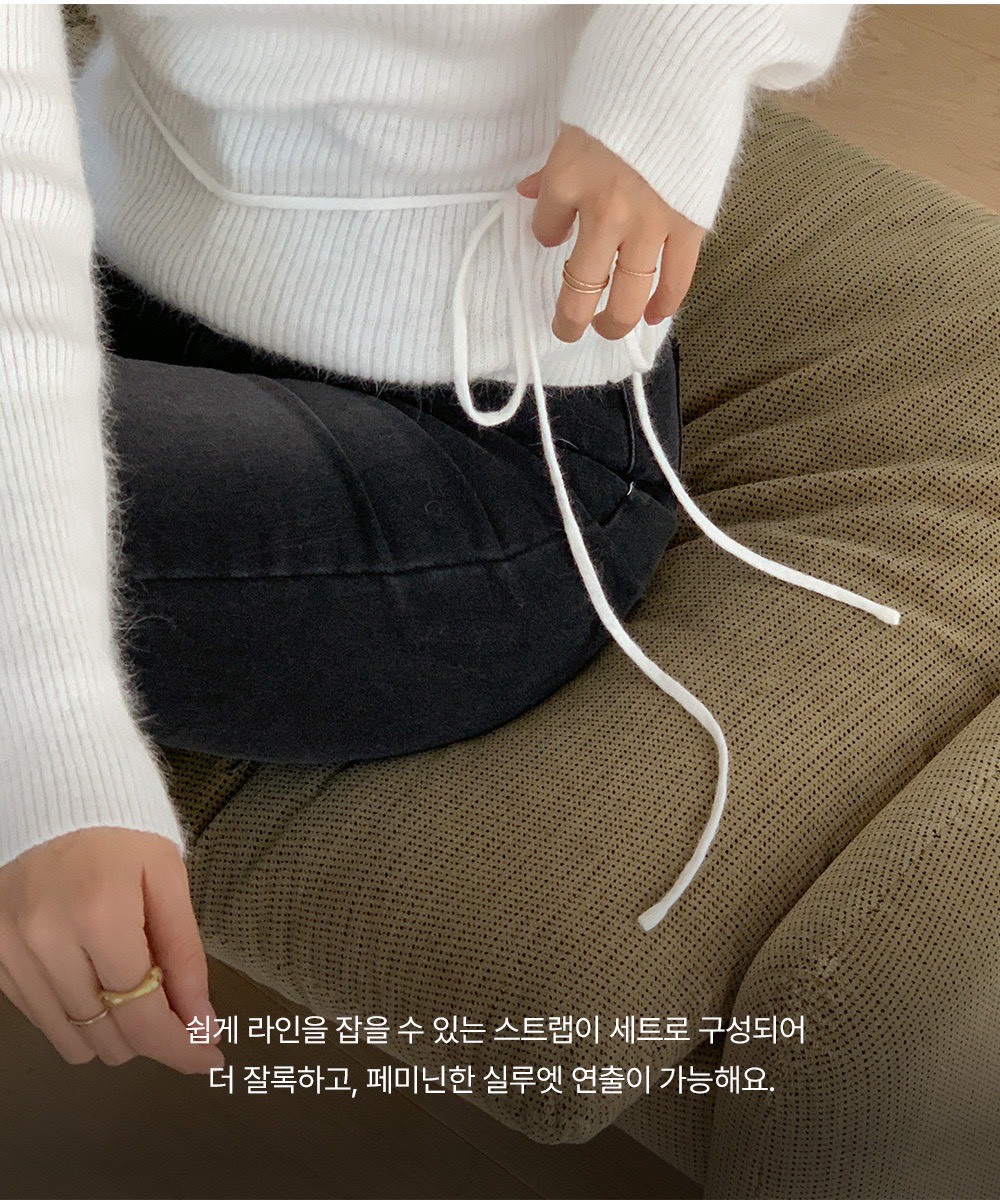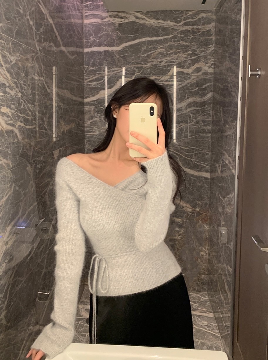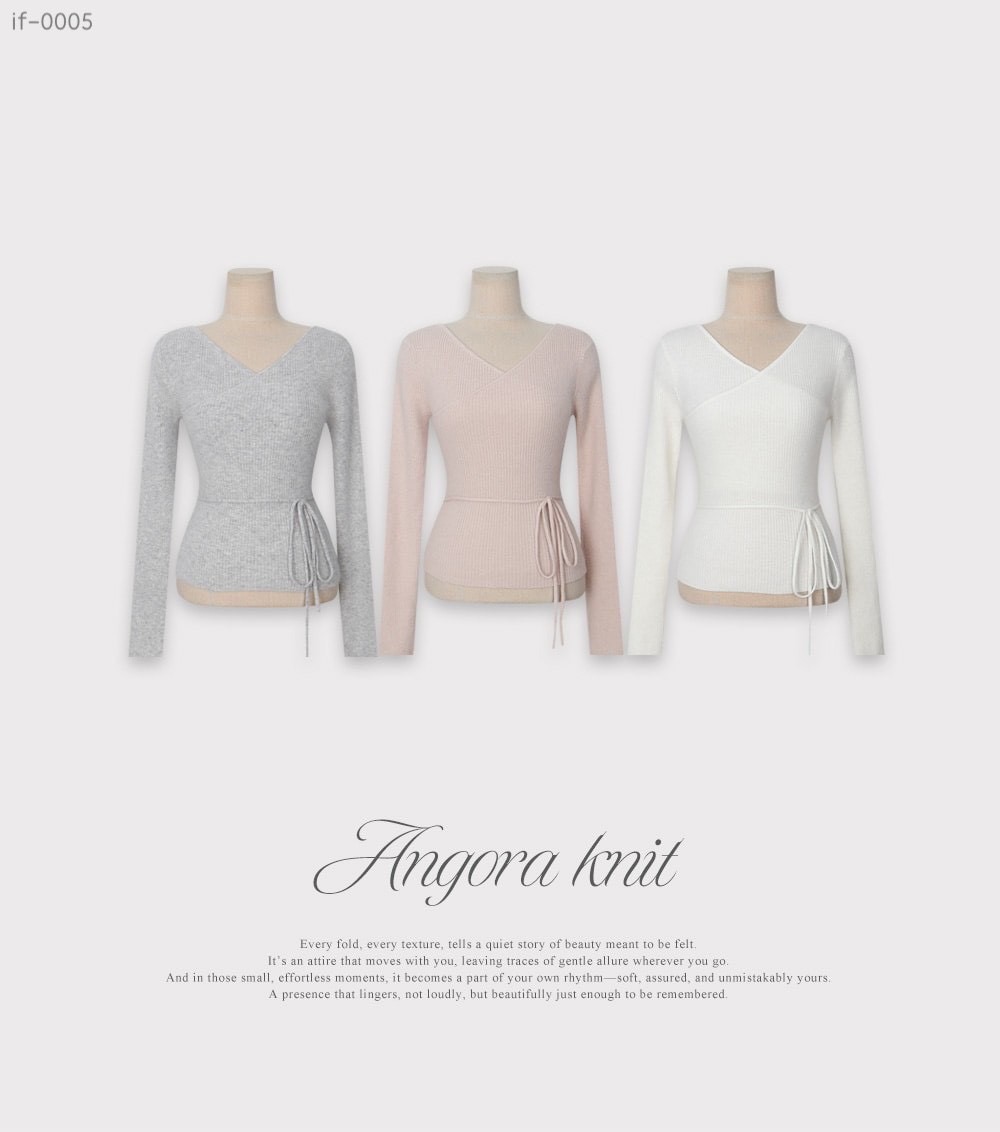 安格拉羊毛交錯V領綁帶針織衫