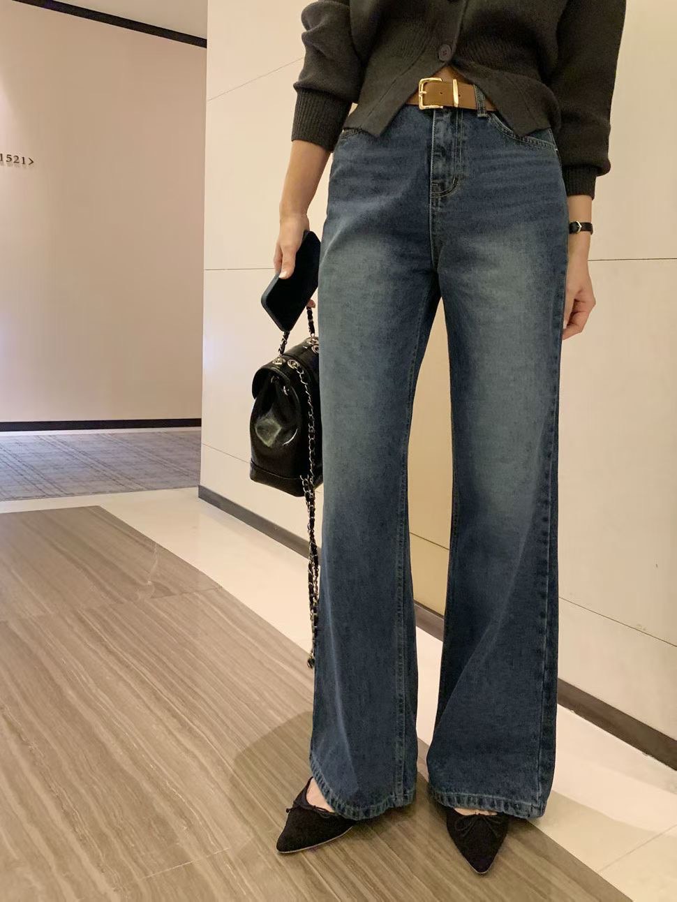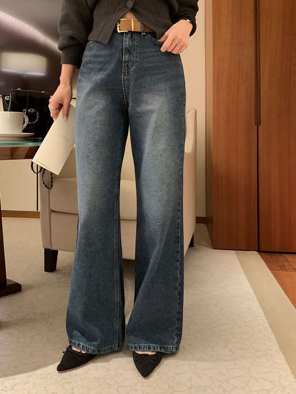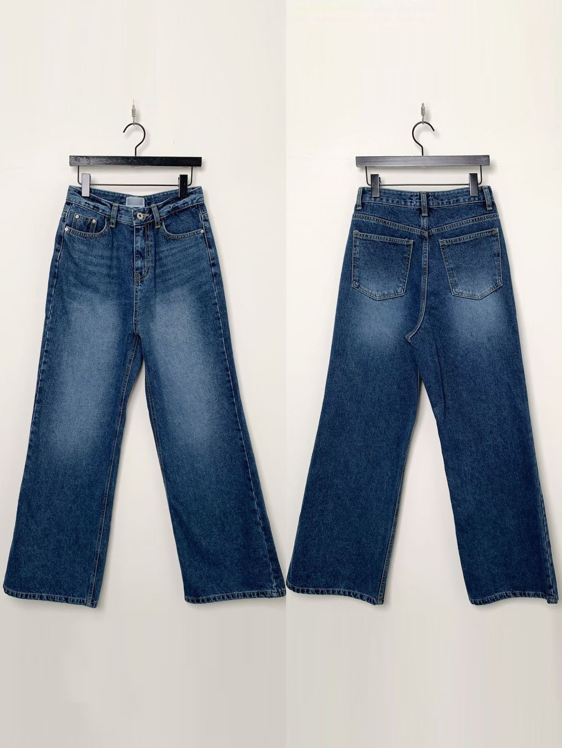 高腰復古刷色微寬落地褲