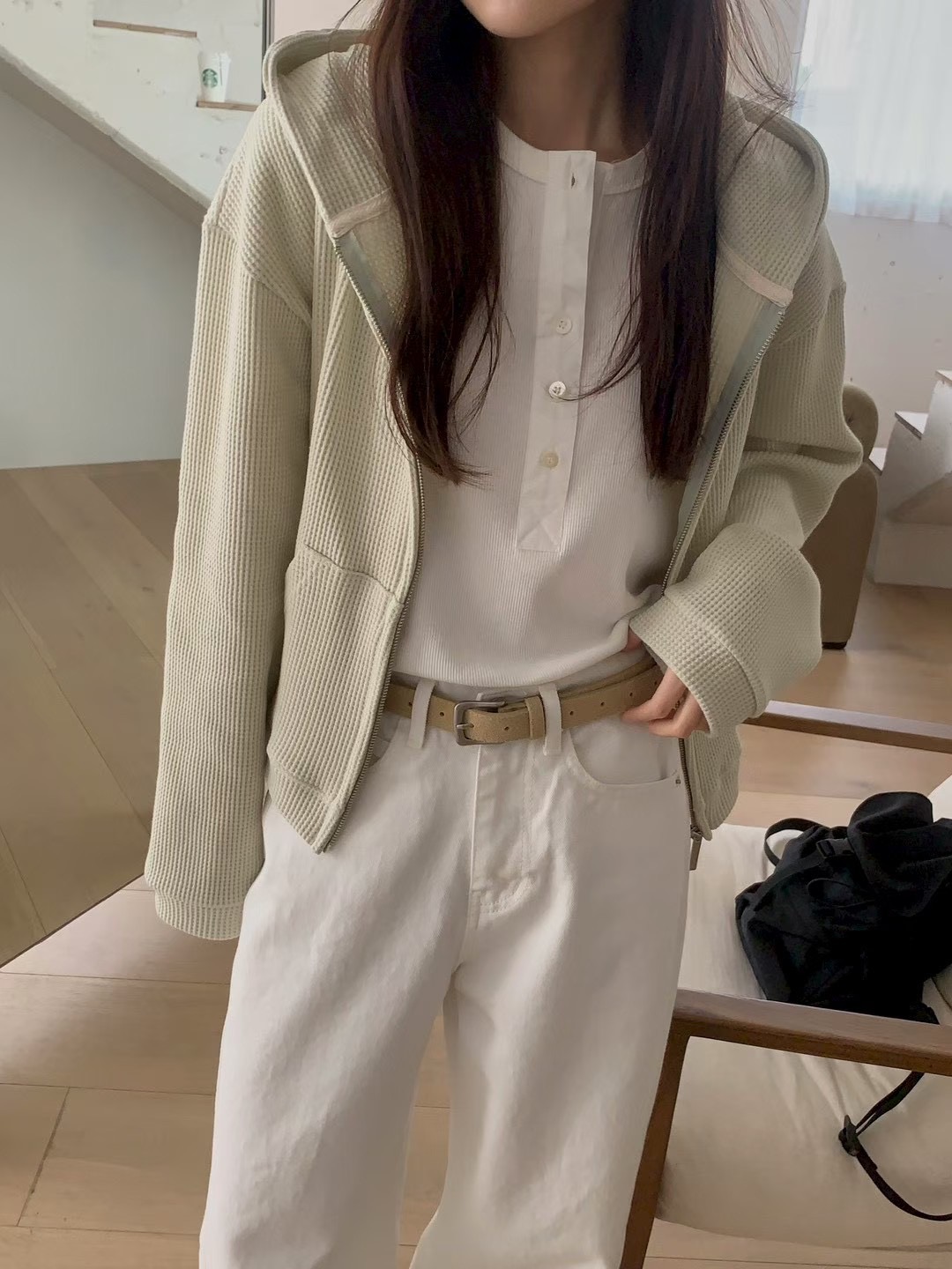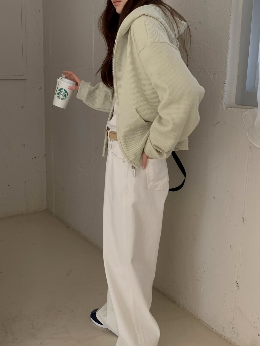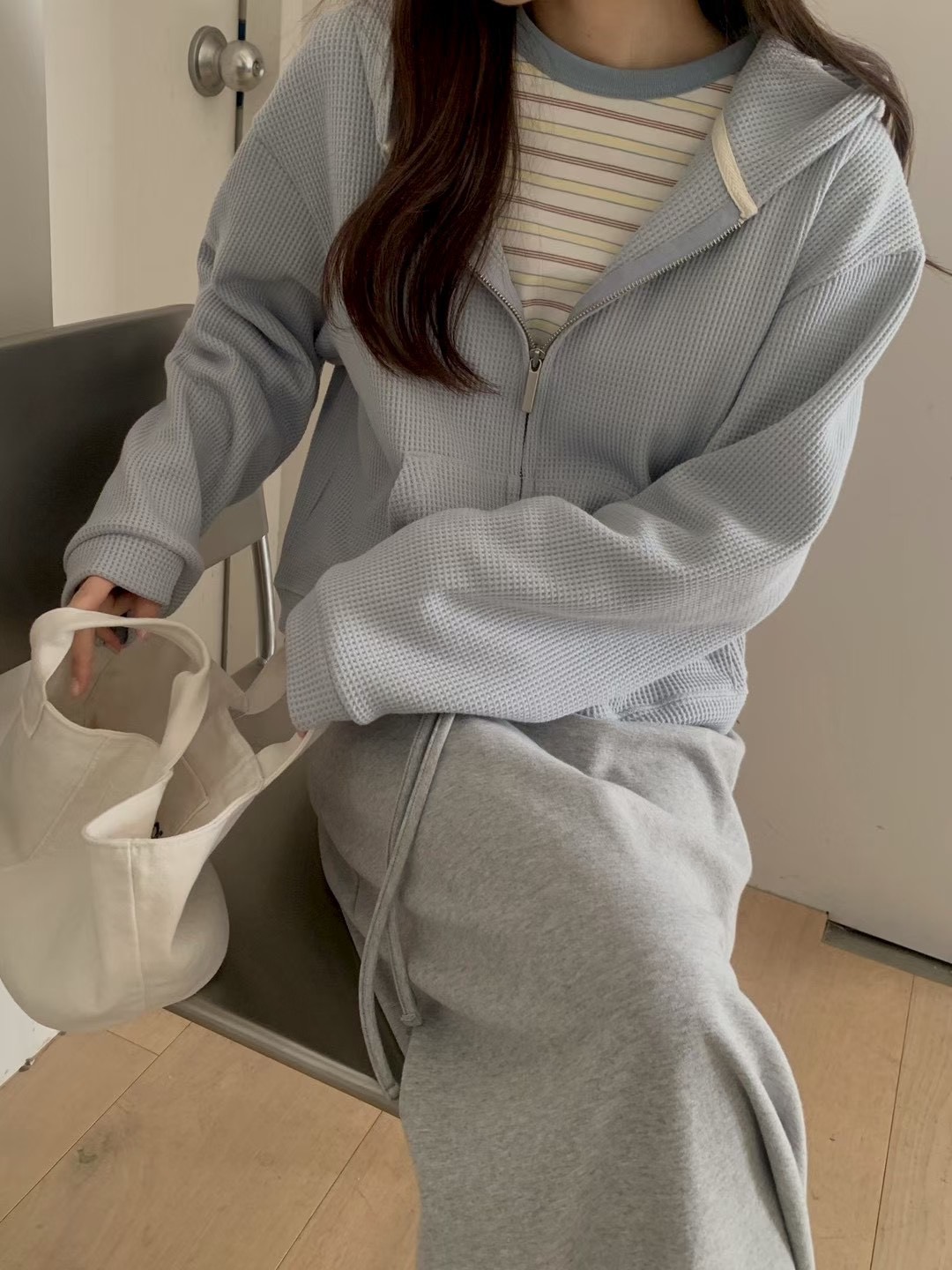 毛毛大翻領設計連帽外套+鬆緊長褲SET