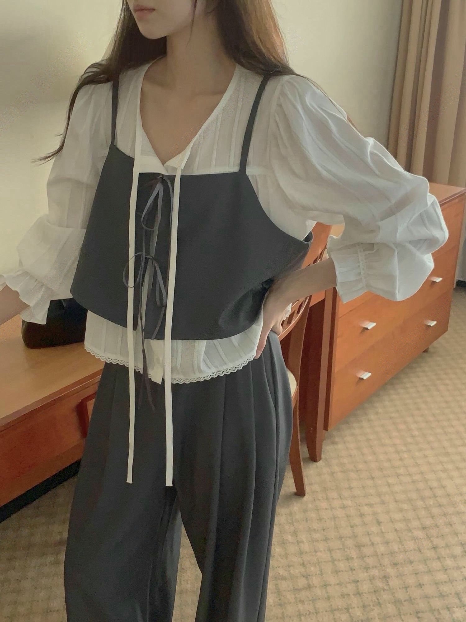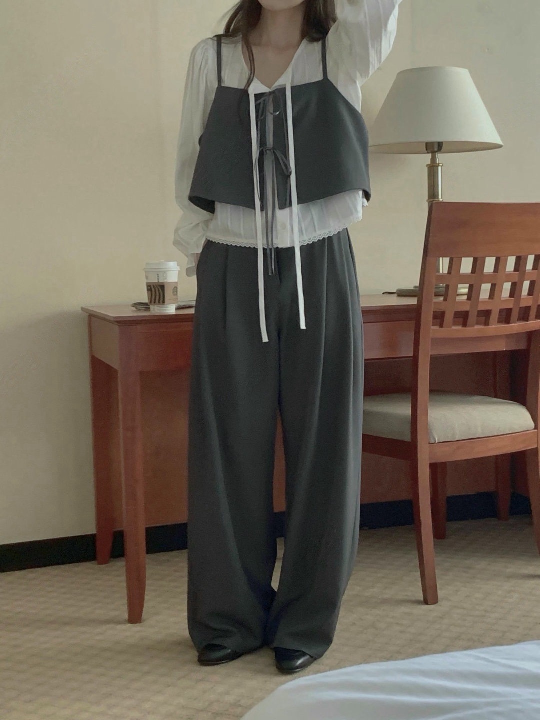 兩面穿雙綁結背心+壓摺西裝長褲SET