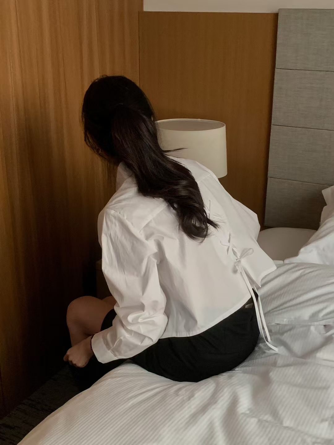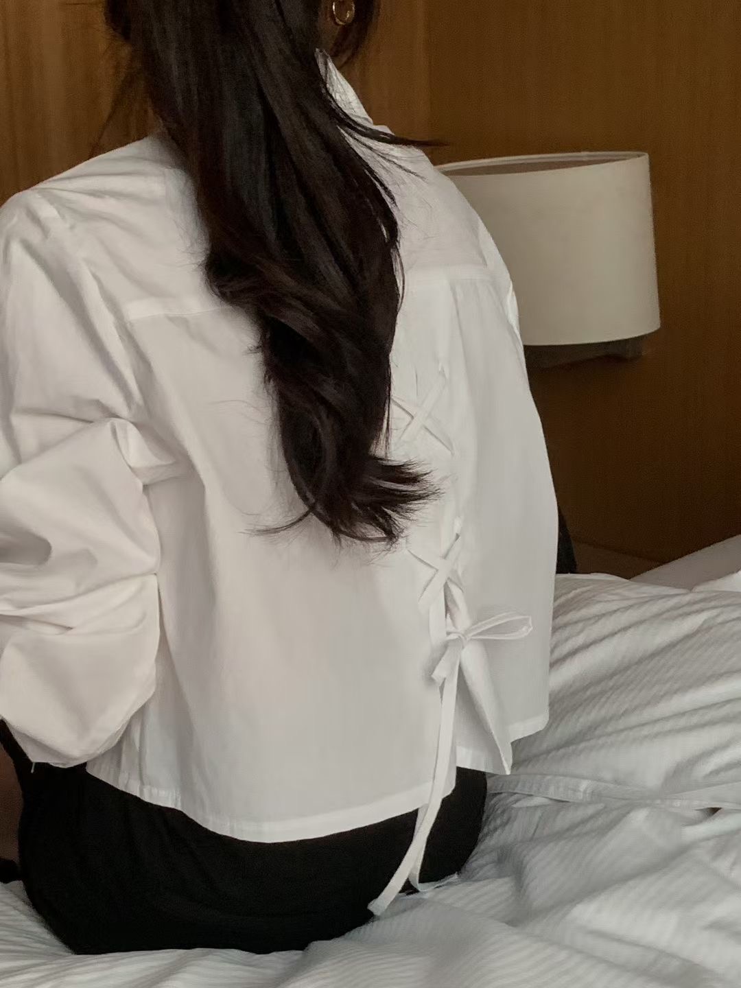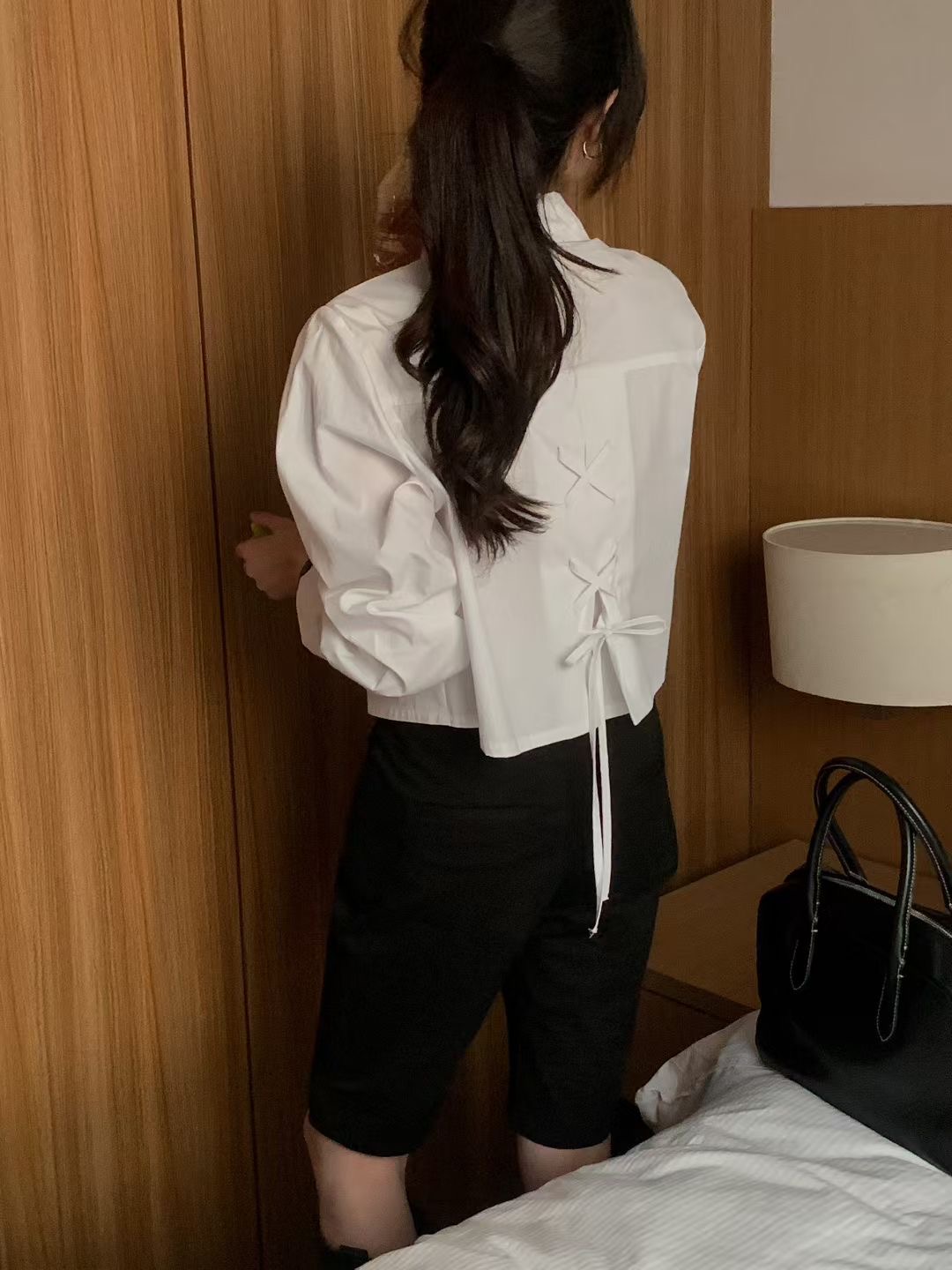 背後交叉綁繩造型短版襯衫