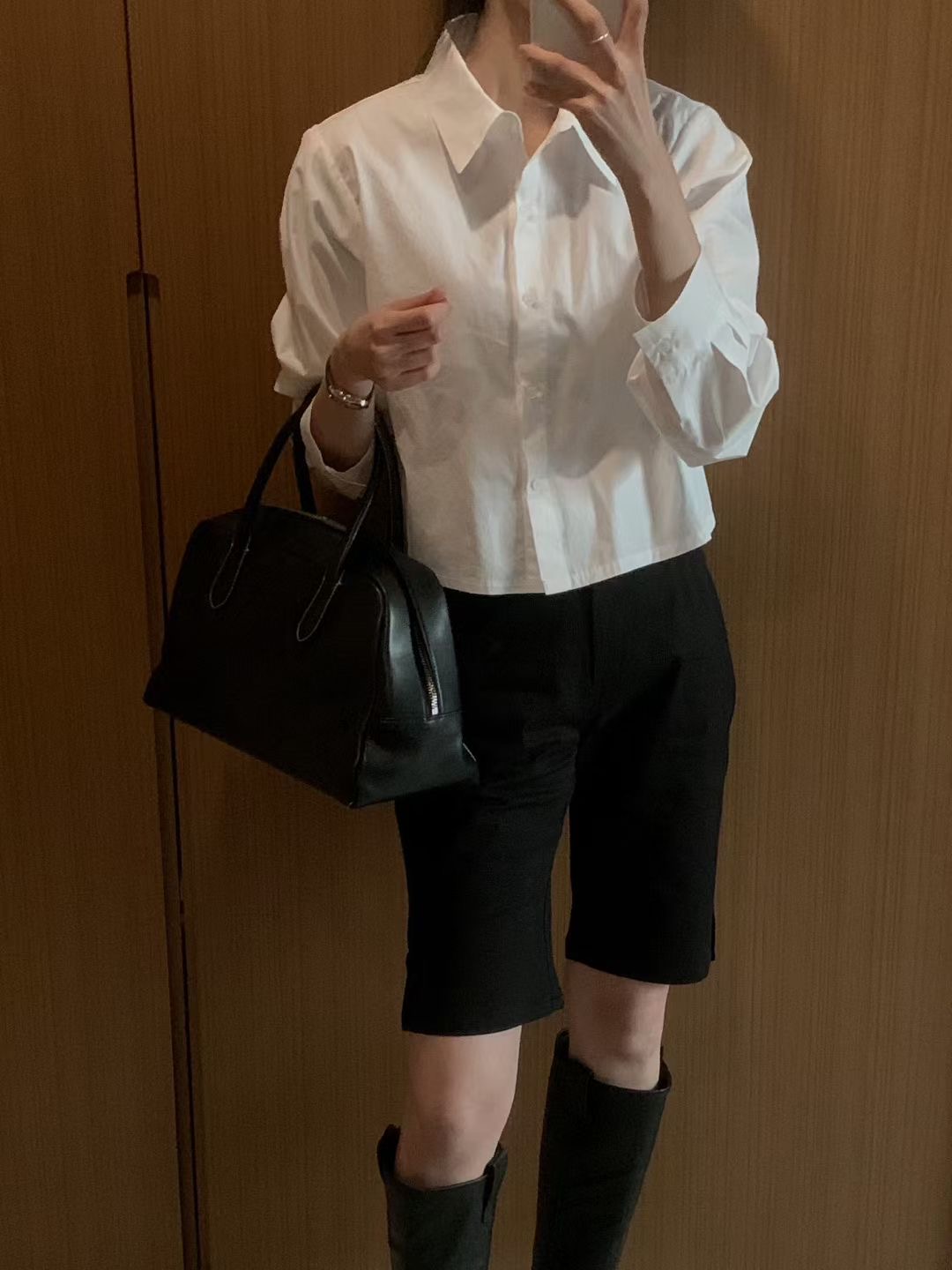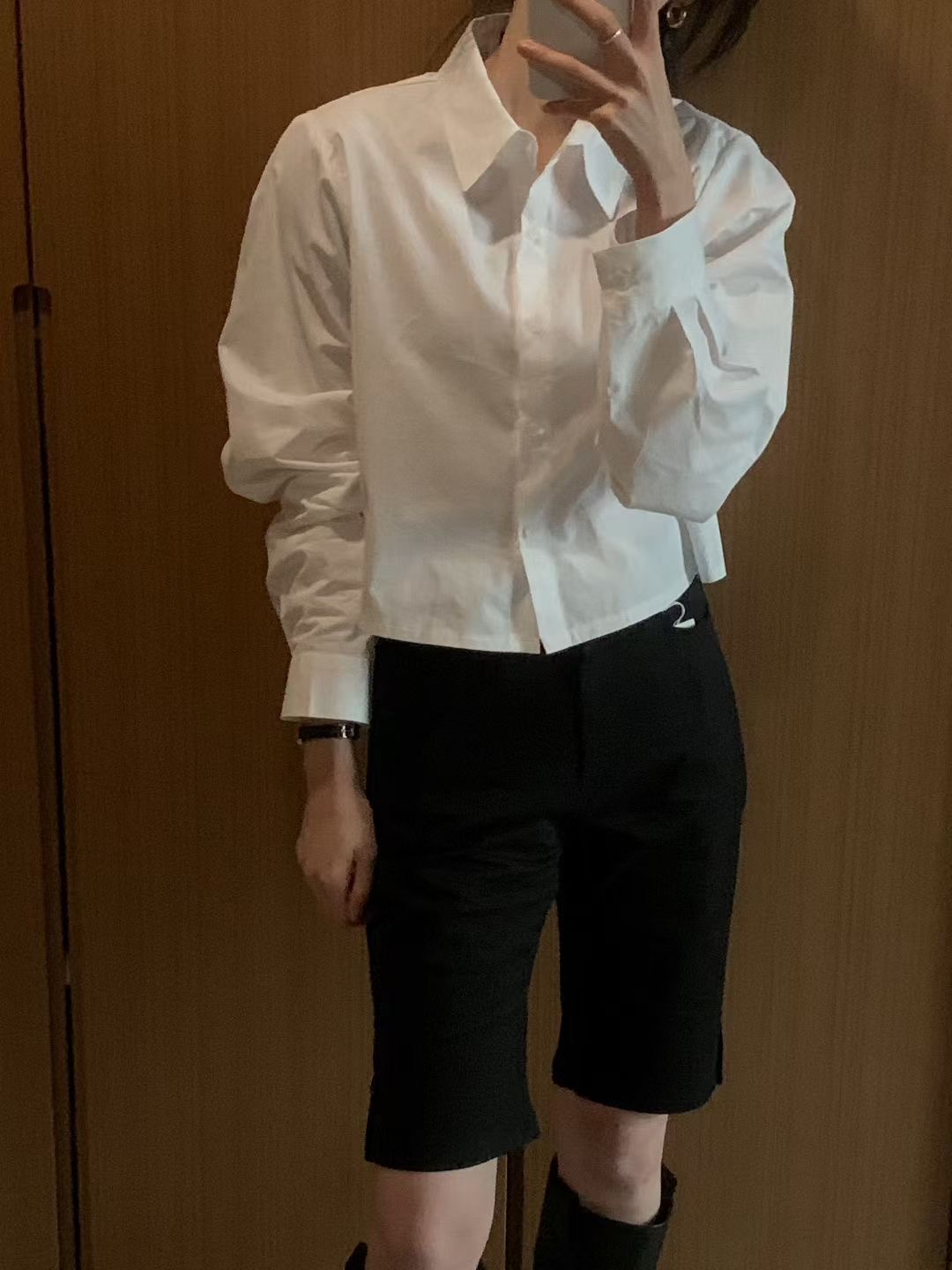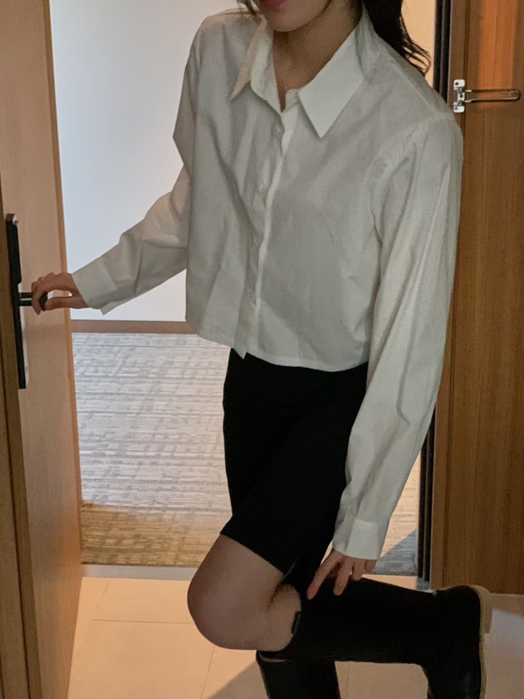 背後交叉綁繩造型短版襯衫