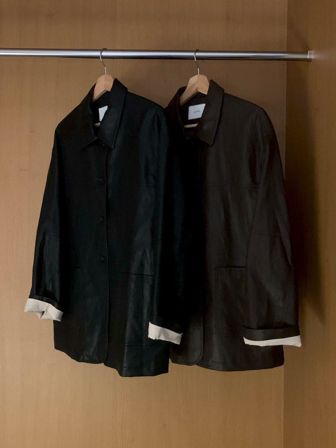 翻領皮革長版外套