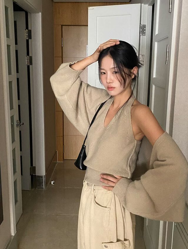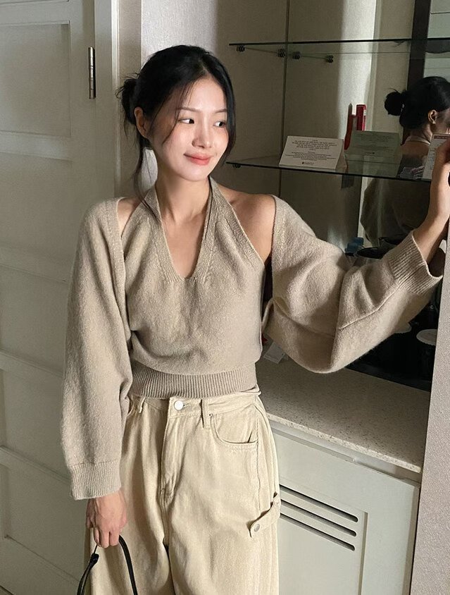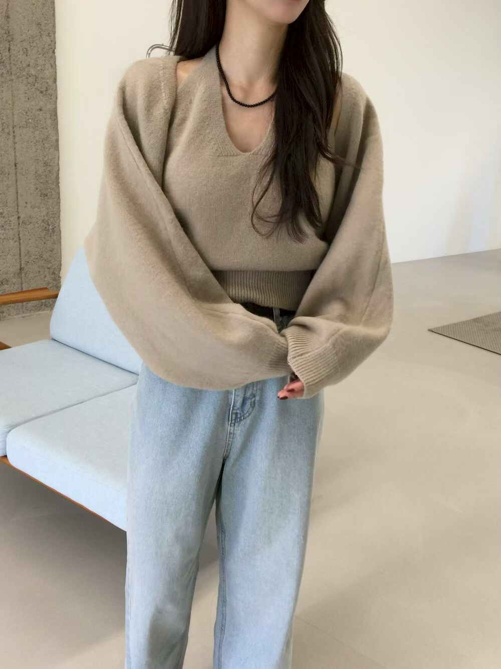針織背心+抽繩三分短褲+排釦罩衫SET