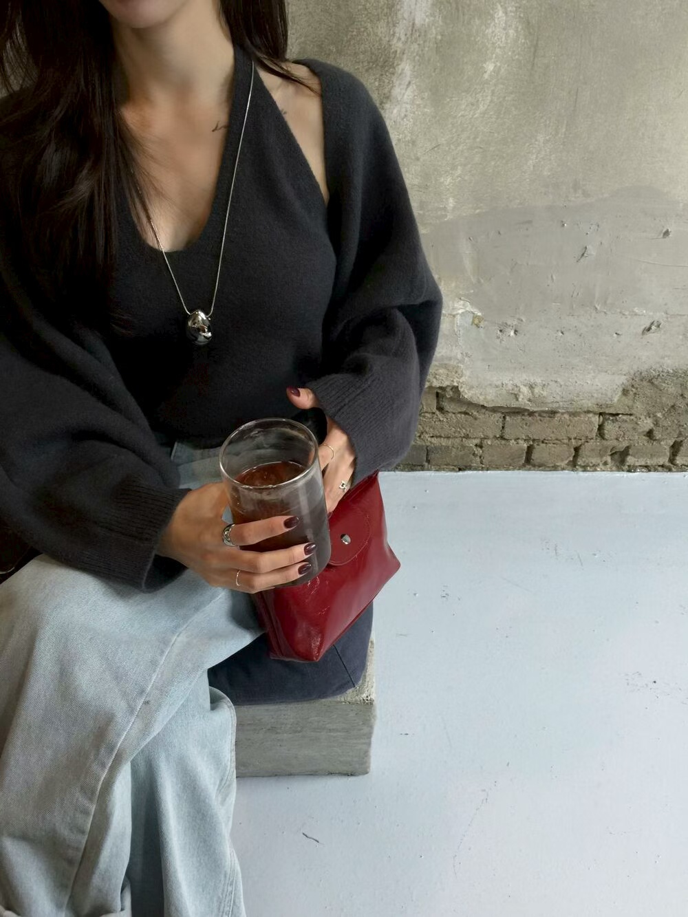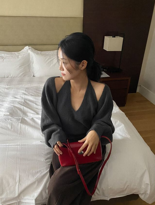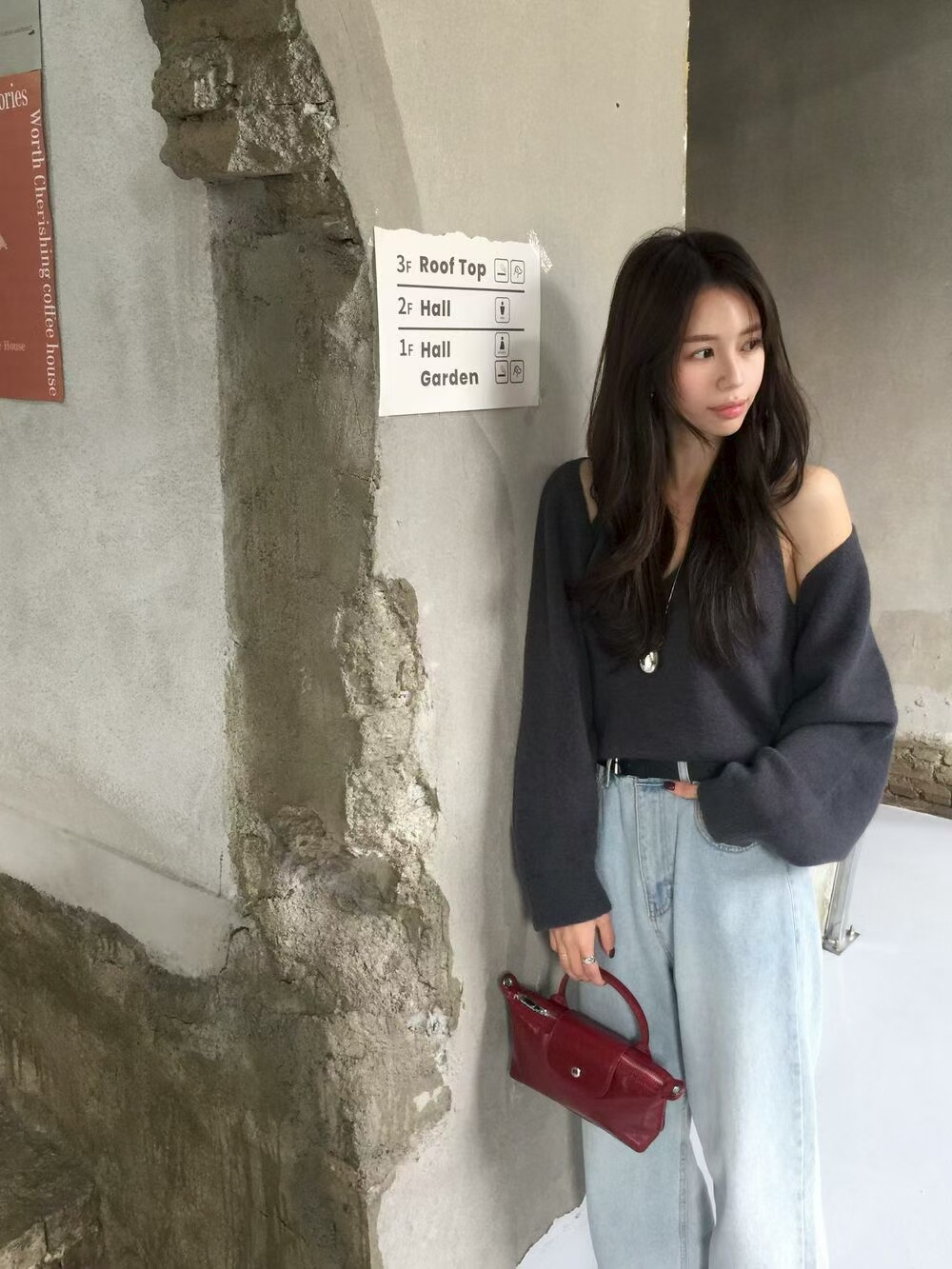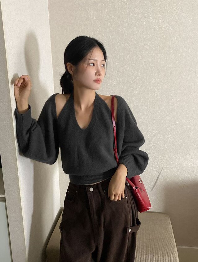 落肩寬鬆橫紋鏤空微透薄針織衫