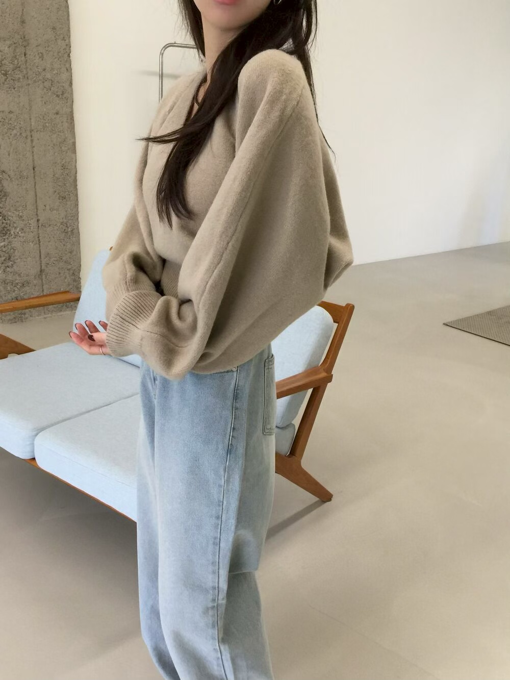 雙向拉鍊壓線連帽針織外套+落地長褲SET