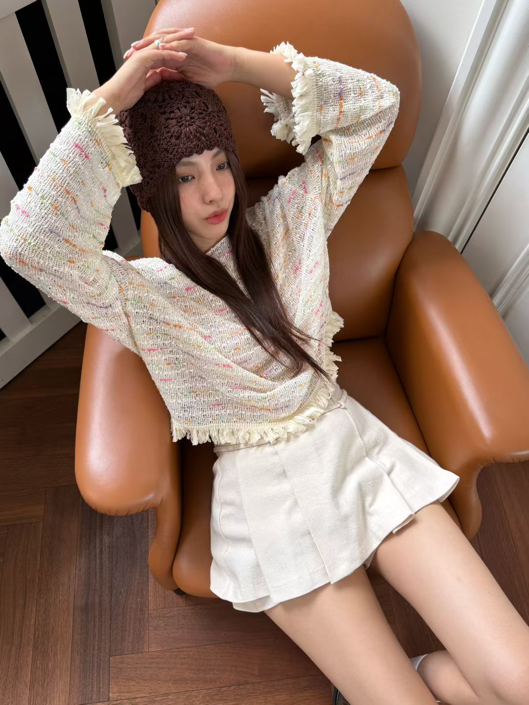 針織背心+抽繩三分短褲+排釦罩衫SET