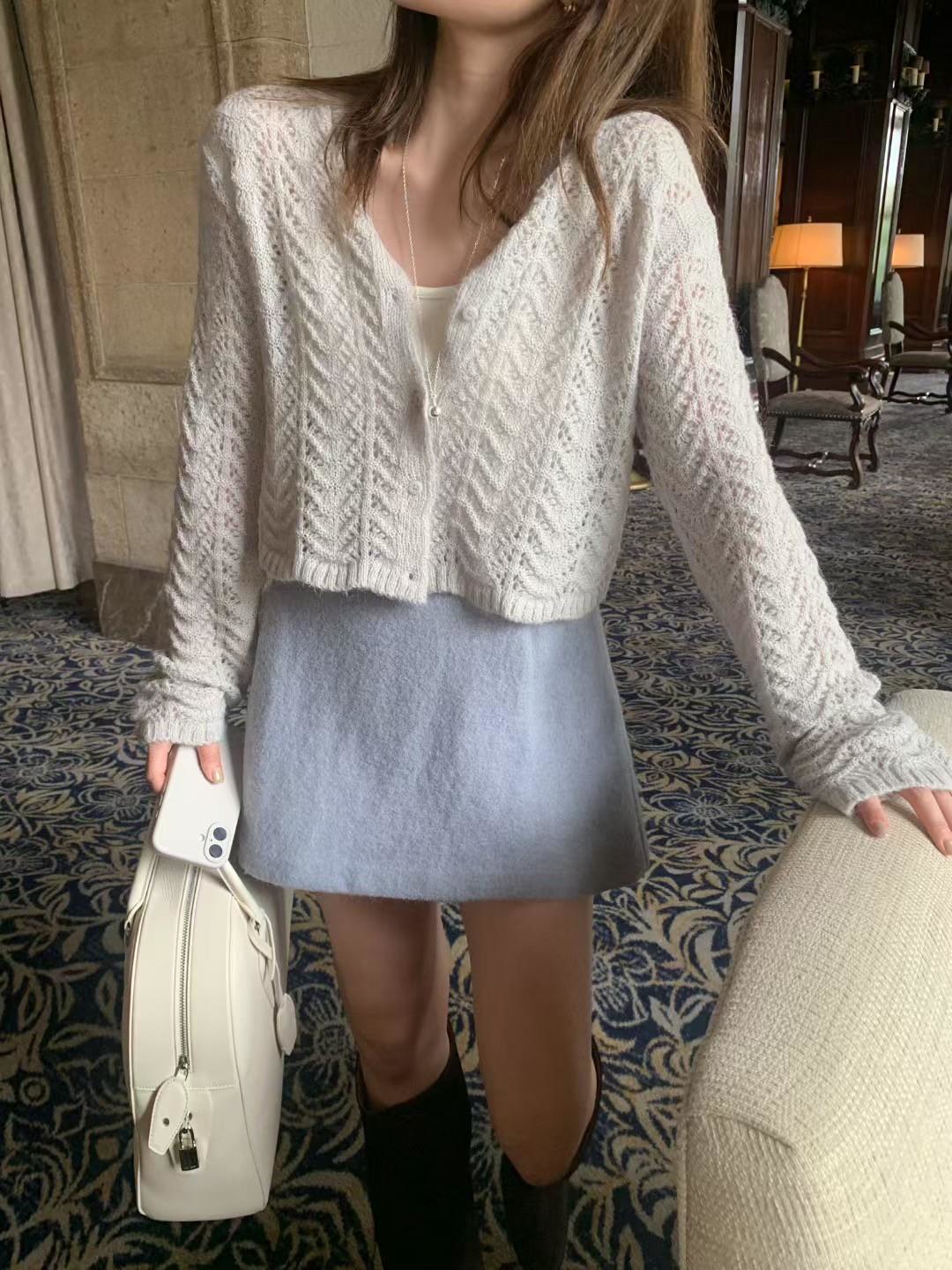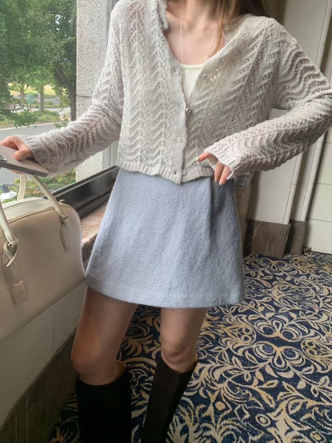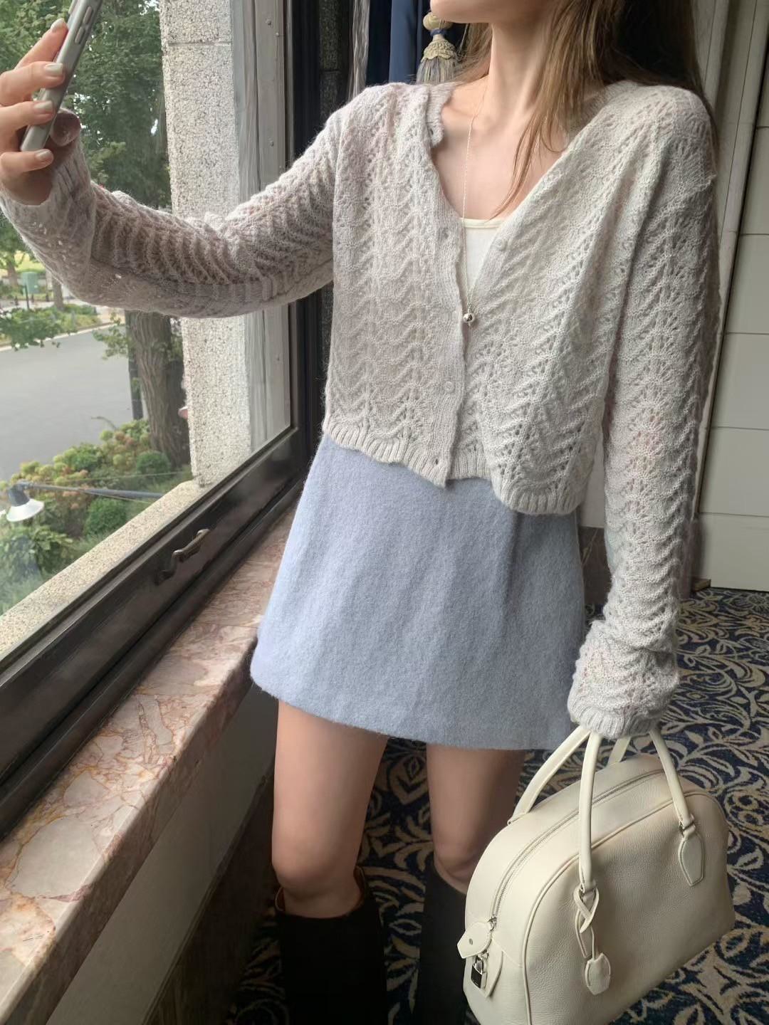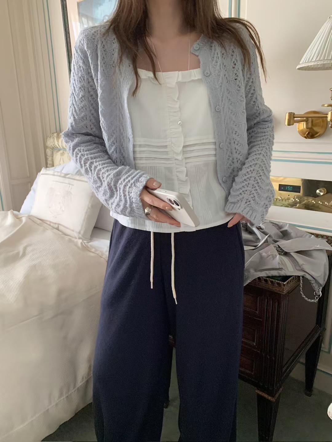 針織背心+抽繩三分短褲+排釦罩衫SET