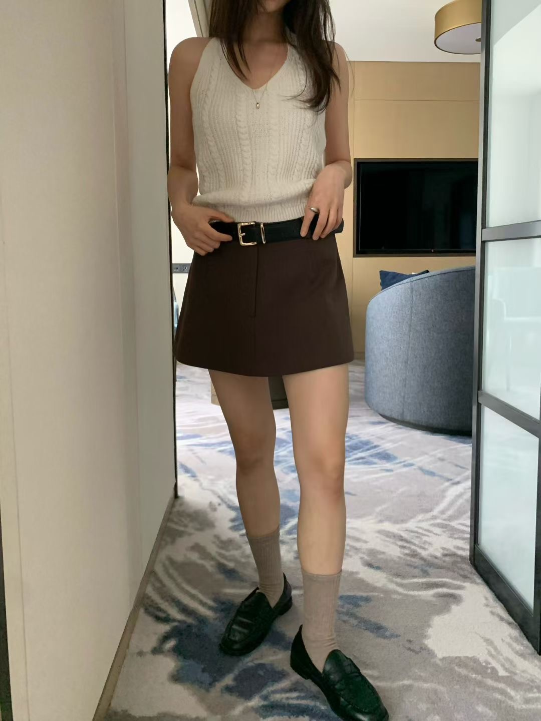 內磨毛可斜肩T+鬆緊落地磨毛長裙SET(可拆買)