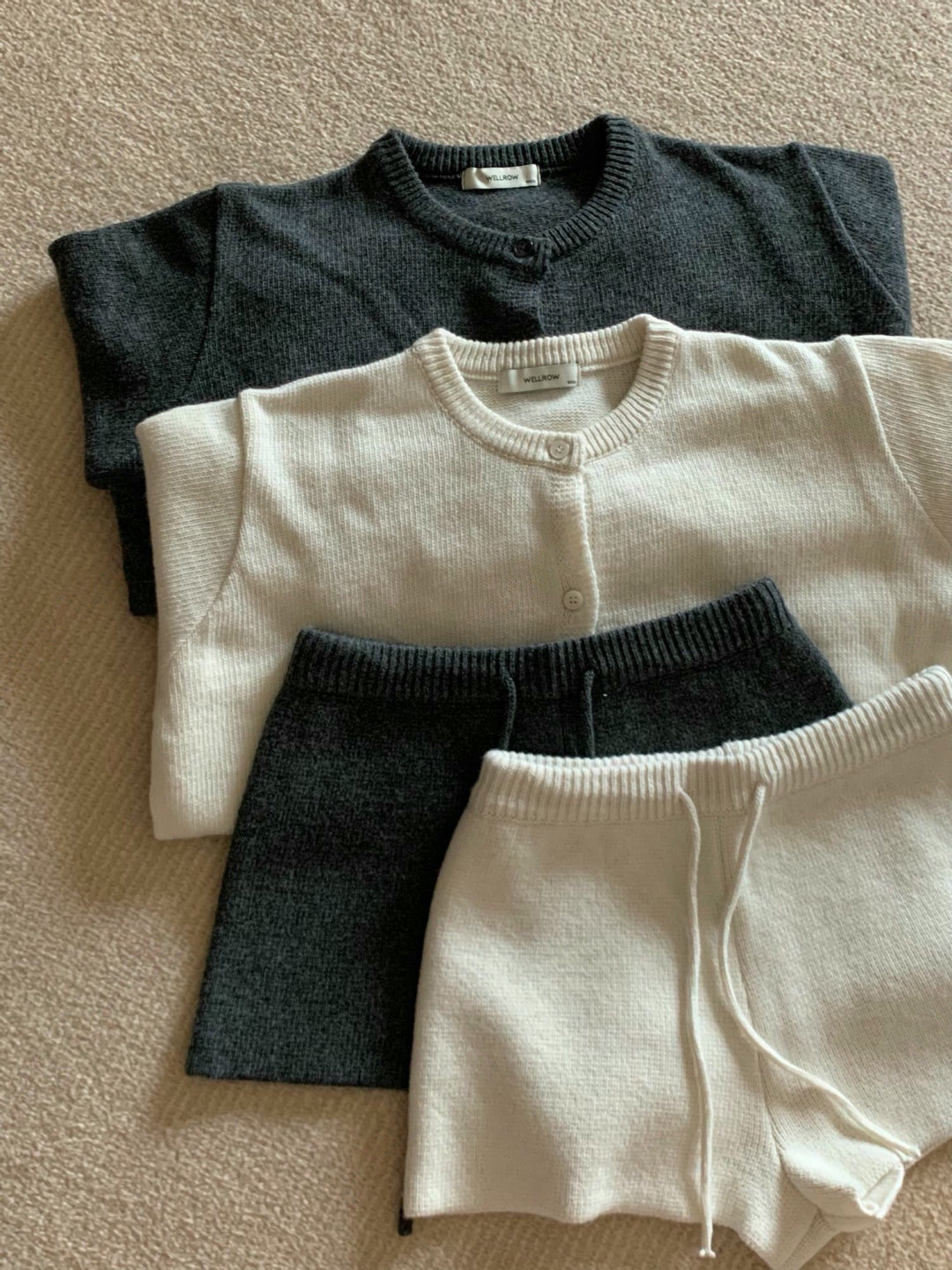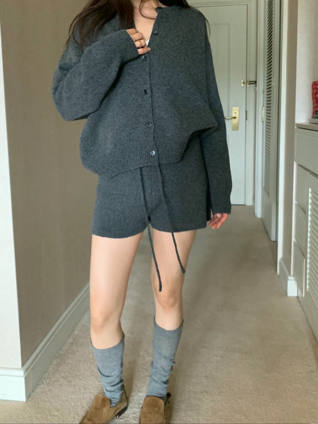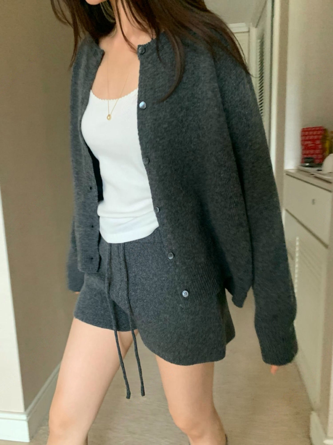 排釦圓領針織罩衫+螺紋抽繩針織短褲SET(可拆買)