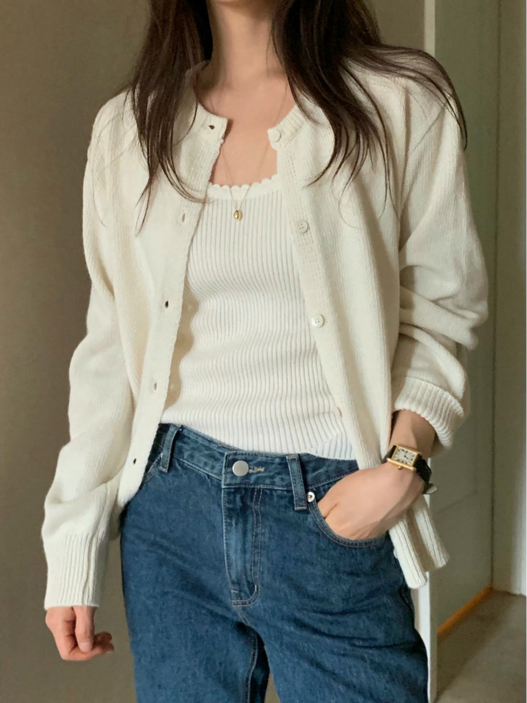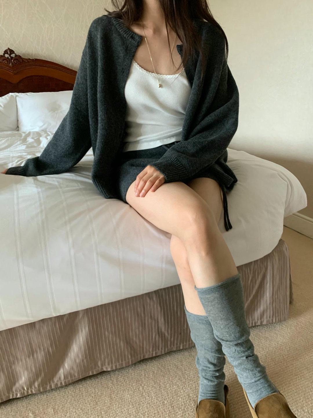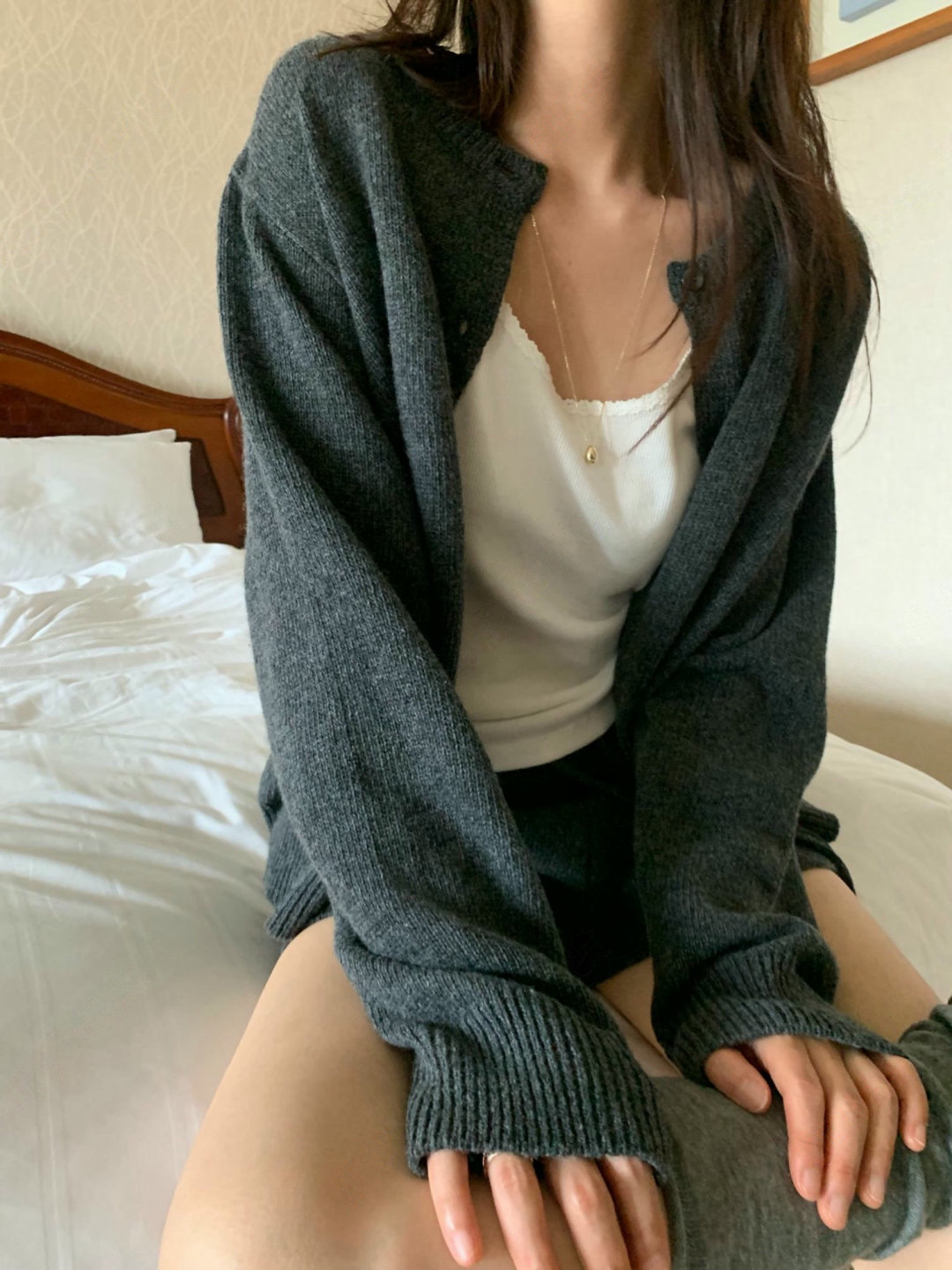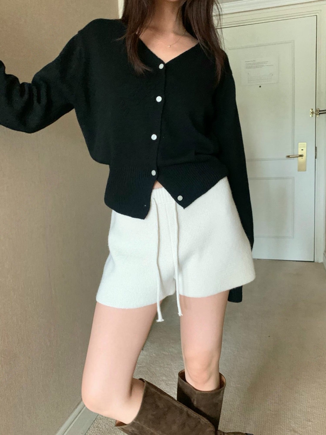 排釦圓領針織罩衫+螺紋抽繩針織短褲SET(可拆買)