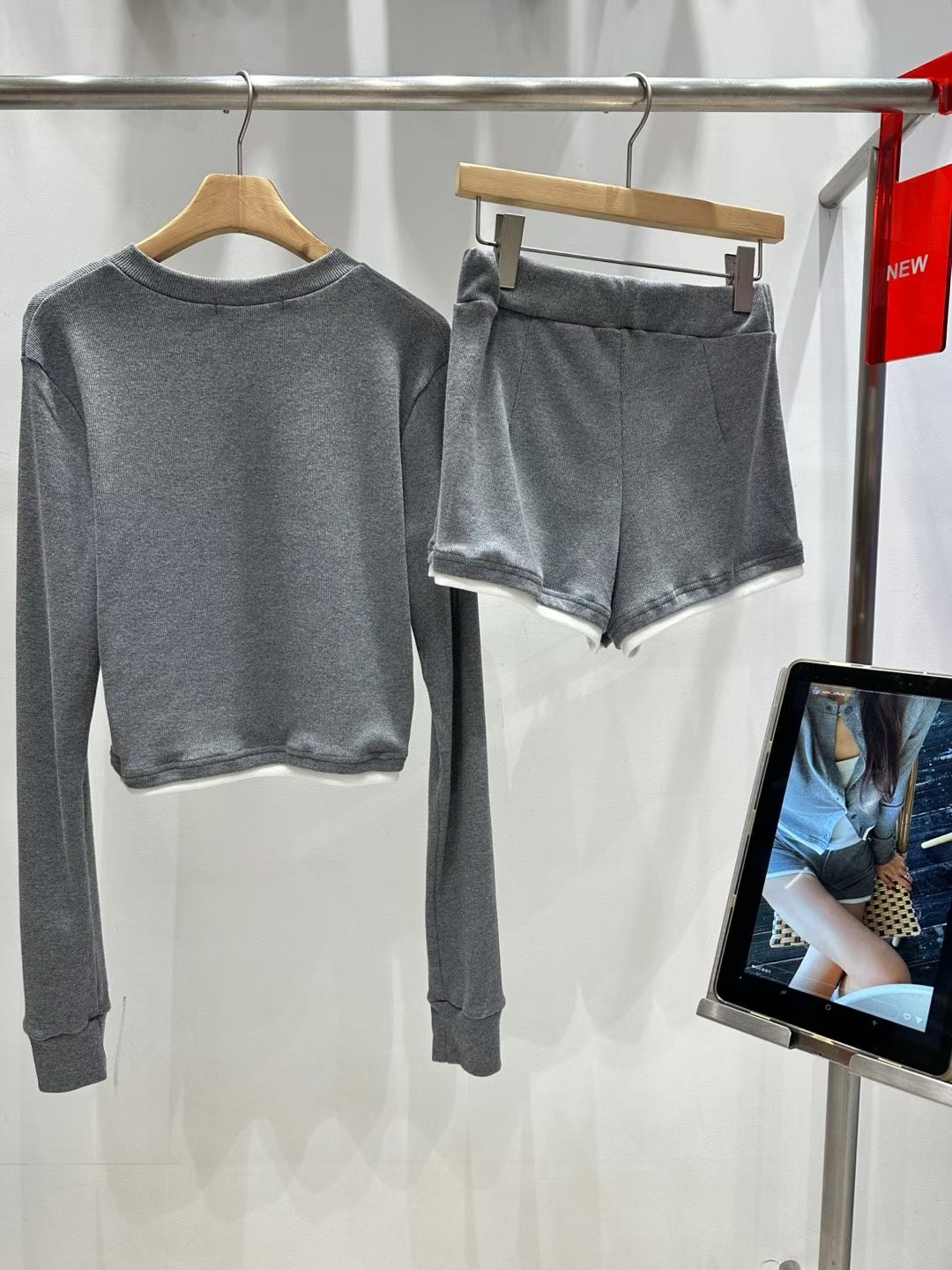 後綁帶露肩衛衣+鬆緊長褲SET