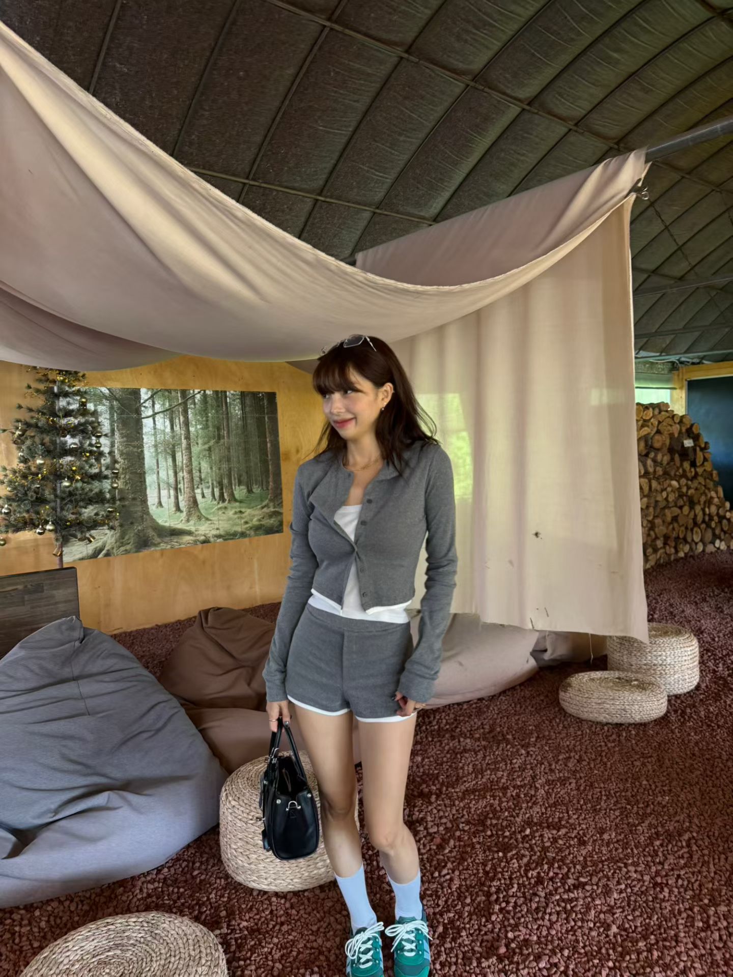 寬鬆抽繩連帽外套+抽繩短褲SET