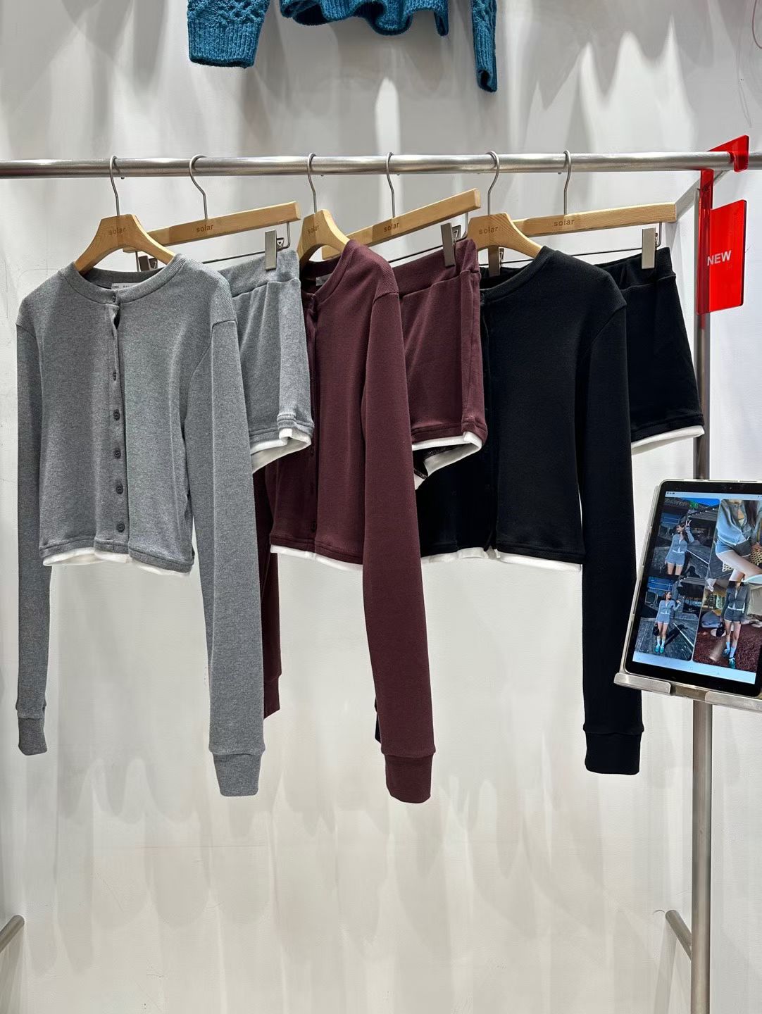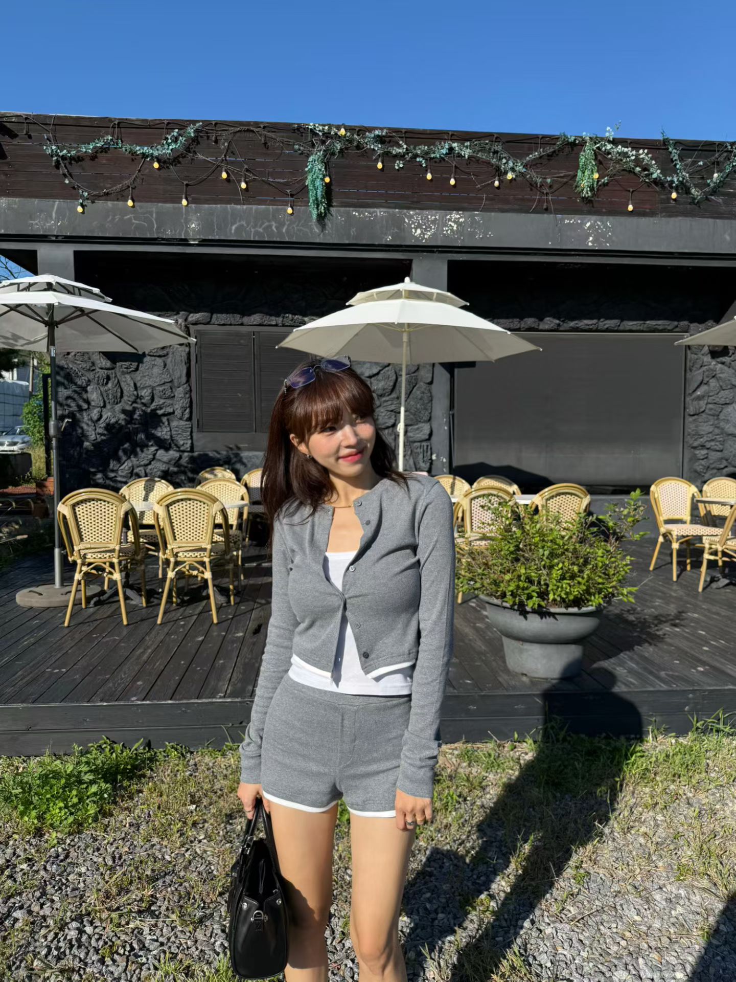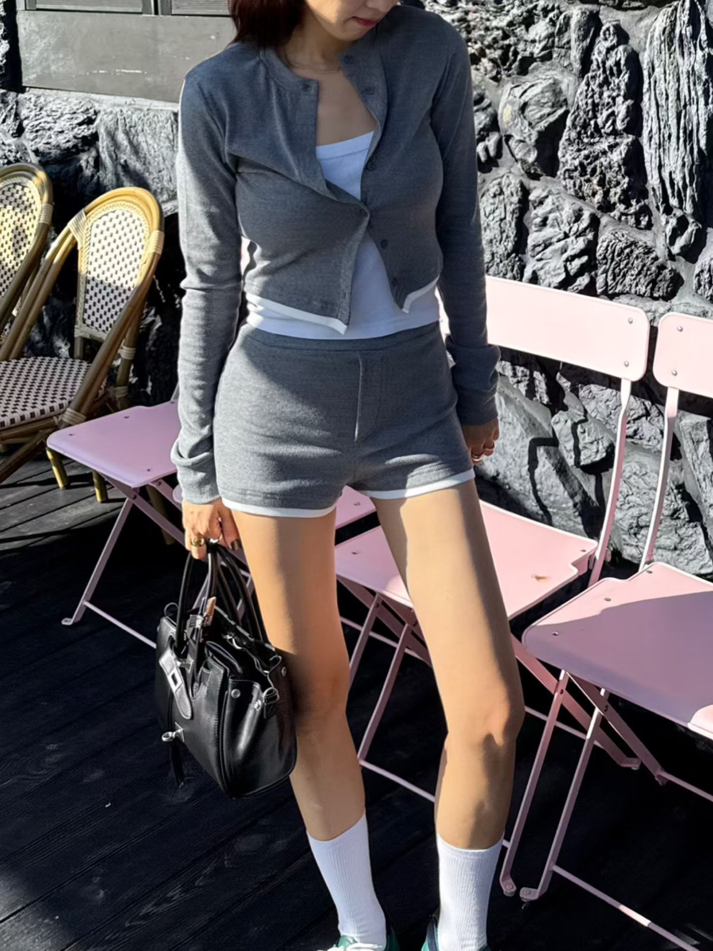針織背心+抽繩三分短褲+排釦罩衫SET
