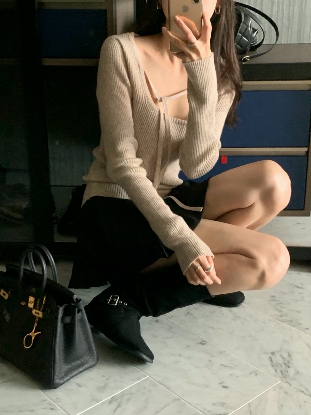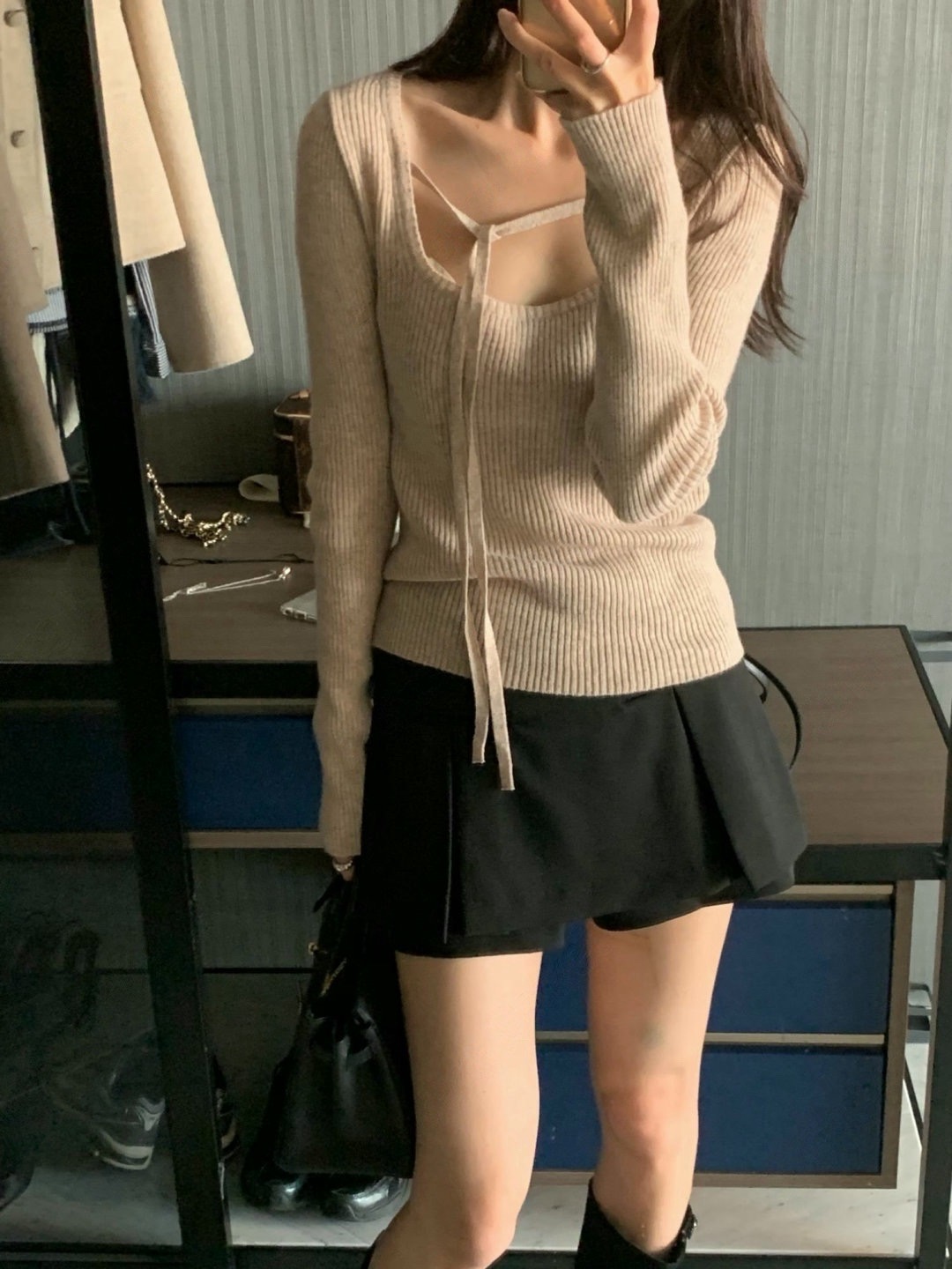 抽繩連帽針織衫+鬆緊三分針織褲SET