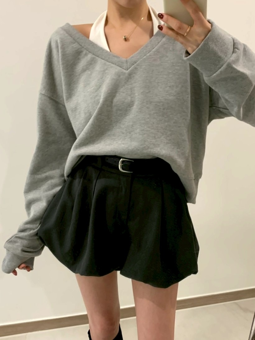 V領假兩件拼接襯衫坑紋針織衫