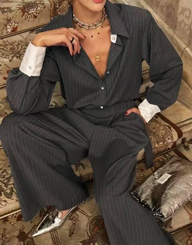 撞色滾邊排釦衫+合身鬆緊短褲SET(可拆買)
