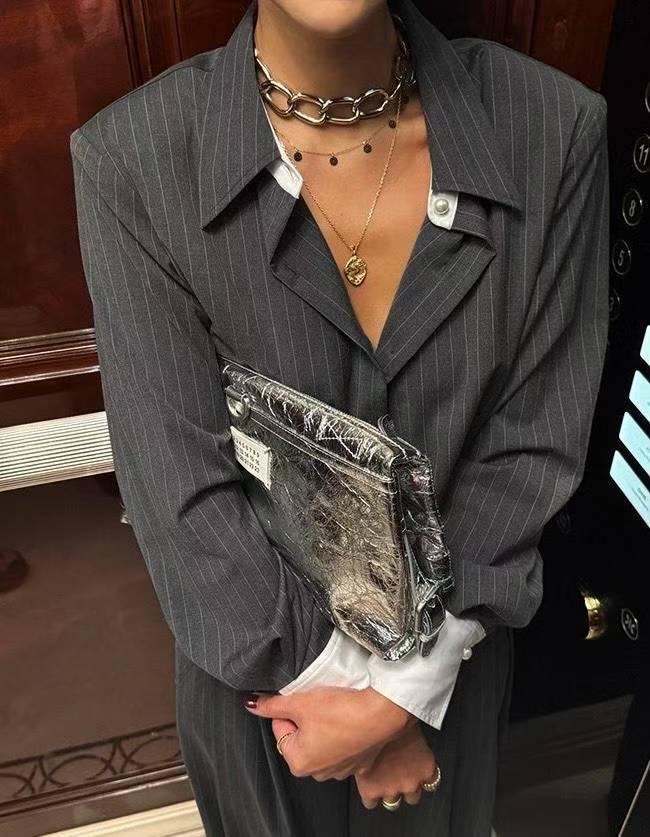 落肩寬鬆橫紋鏤空微透薄針織衫