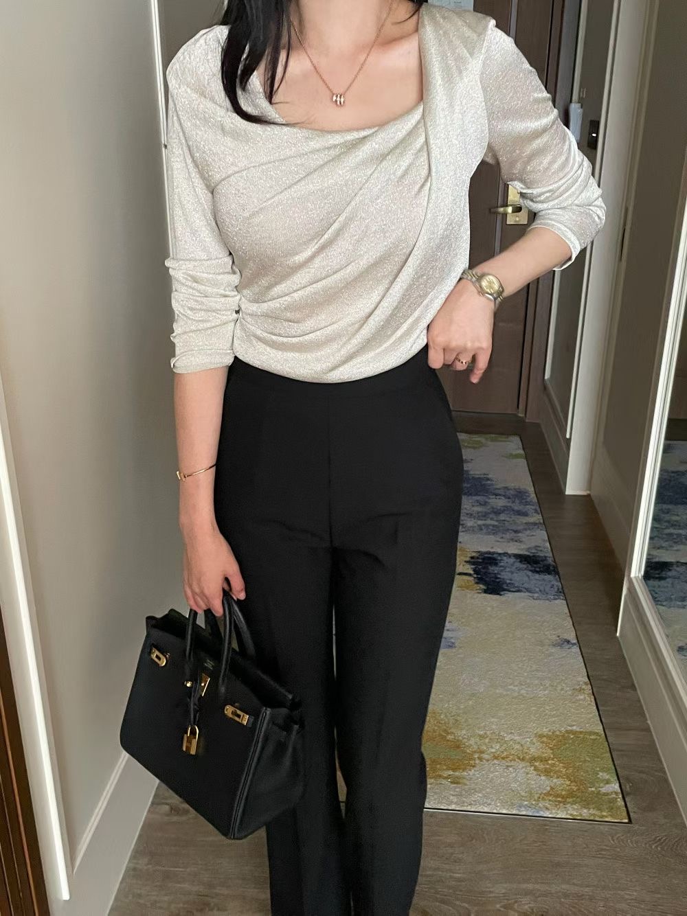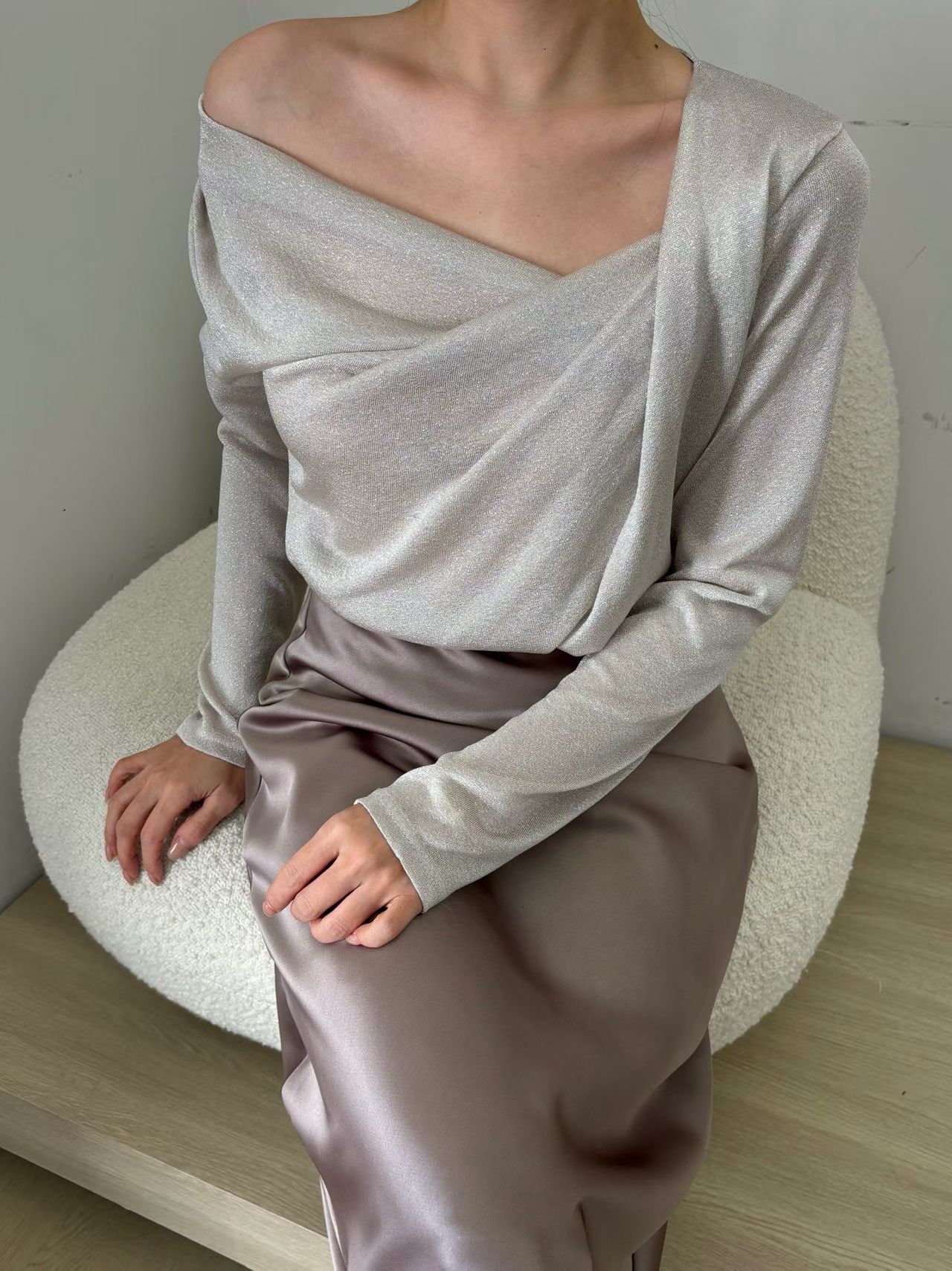 細閃金蔥扭結垂墜薄T