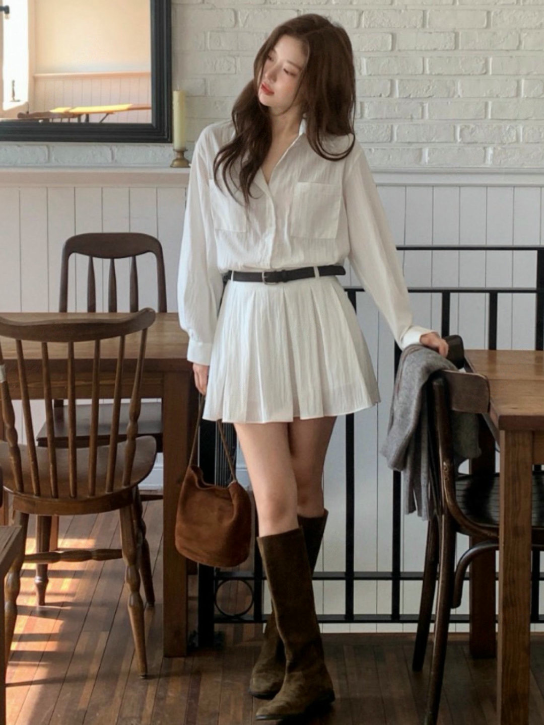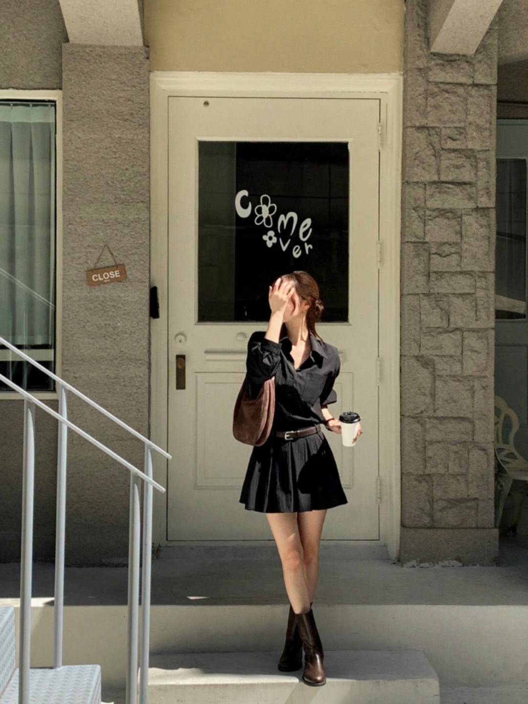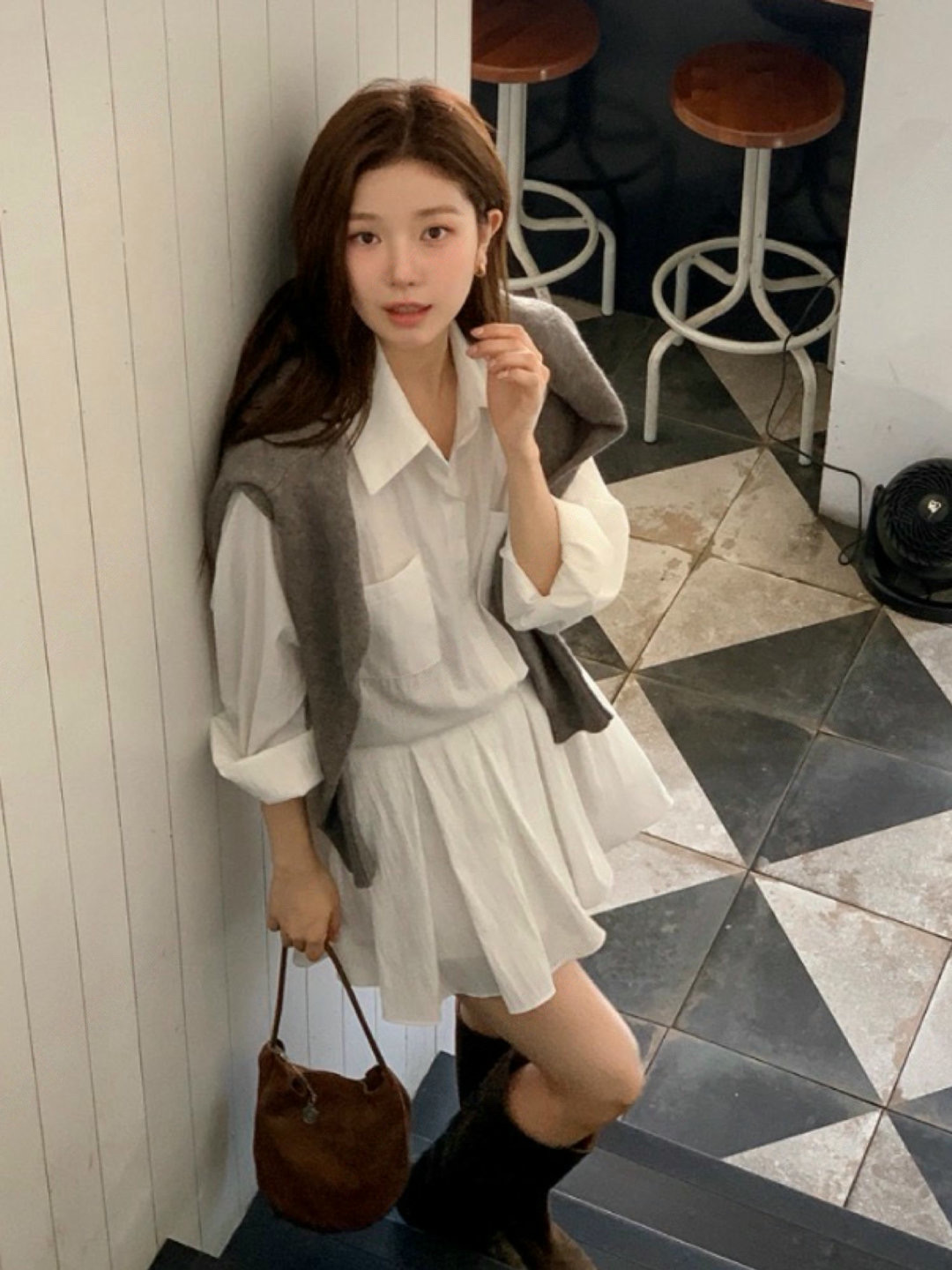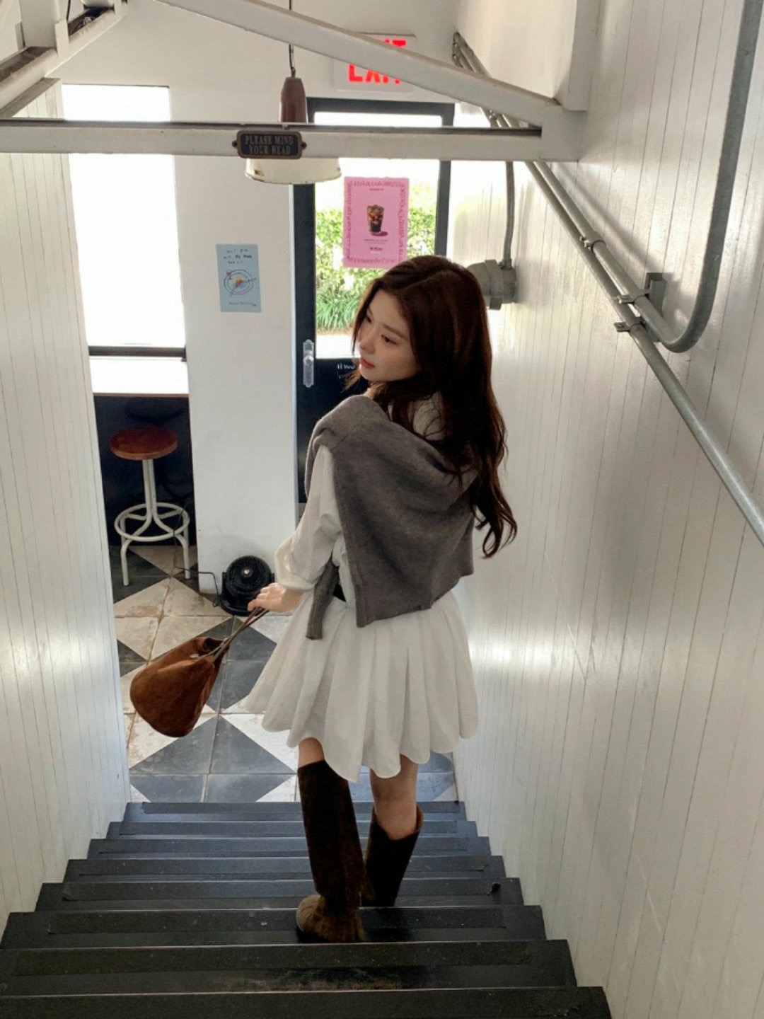 內磨毛可斜肩T+鬆緊落地磨毛長裙SET(可拆買)
