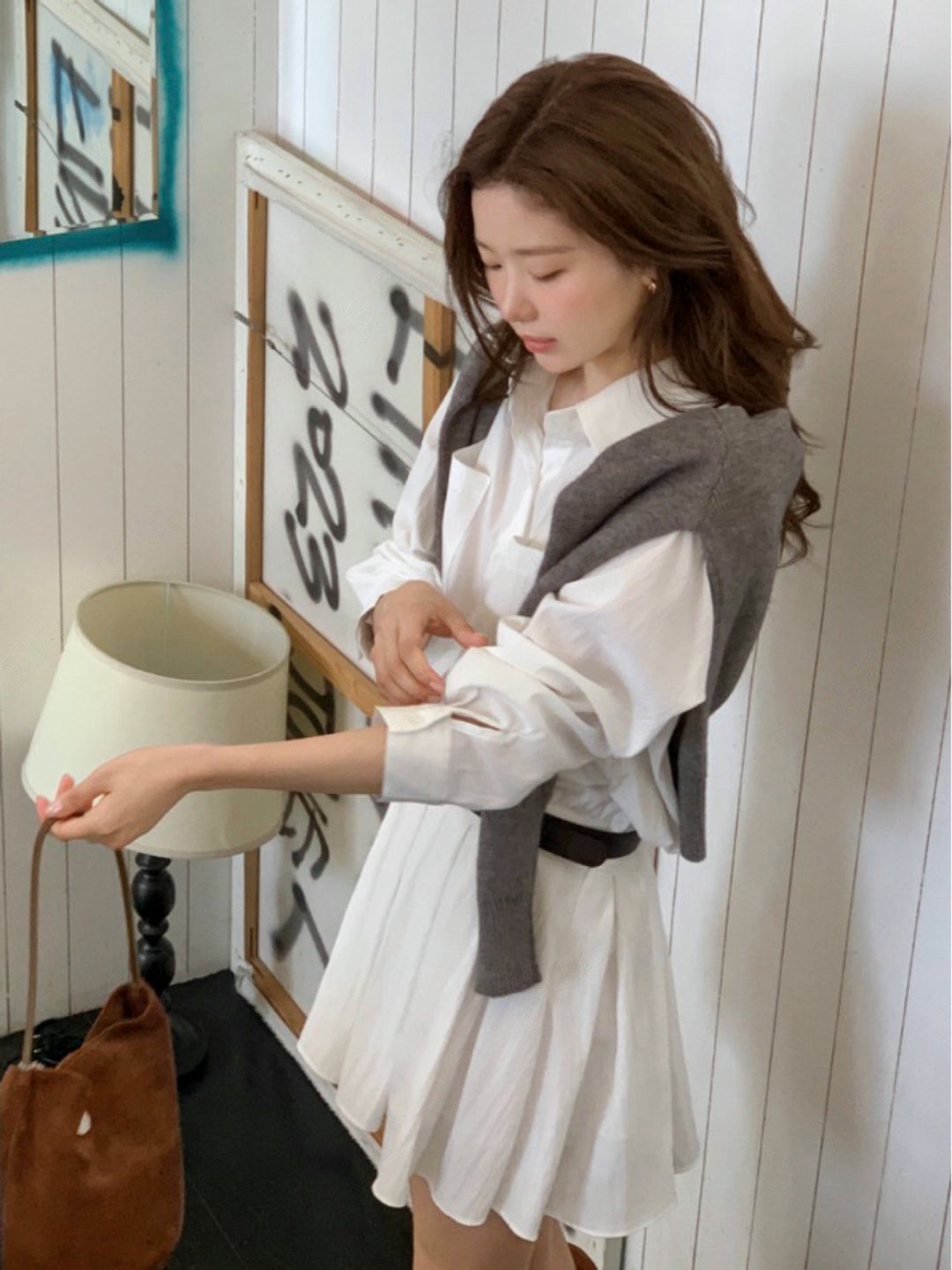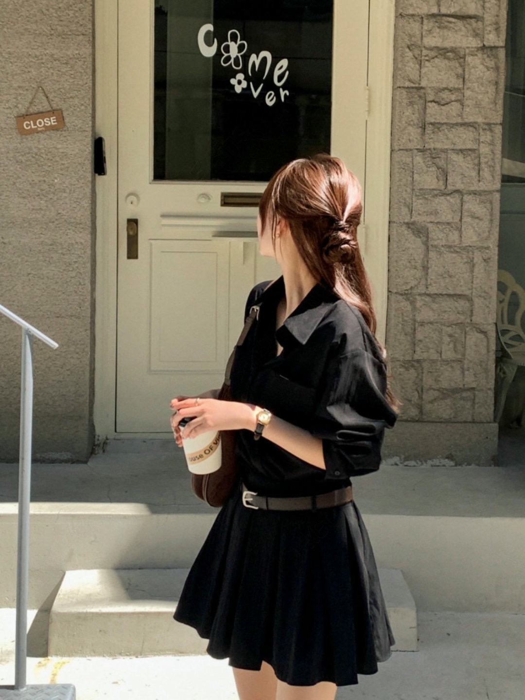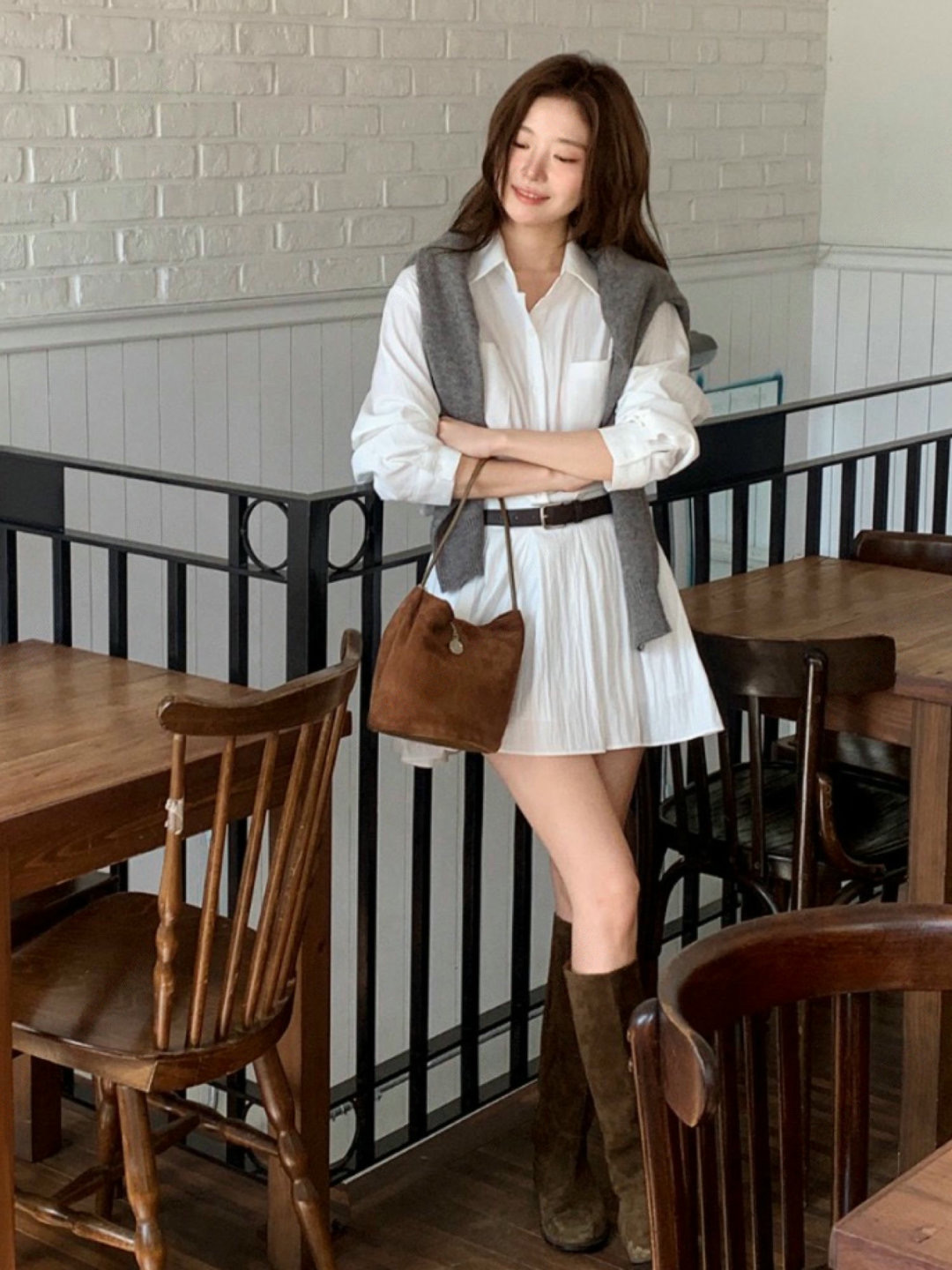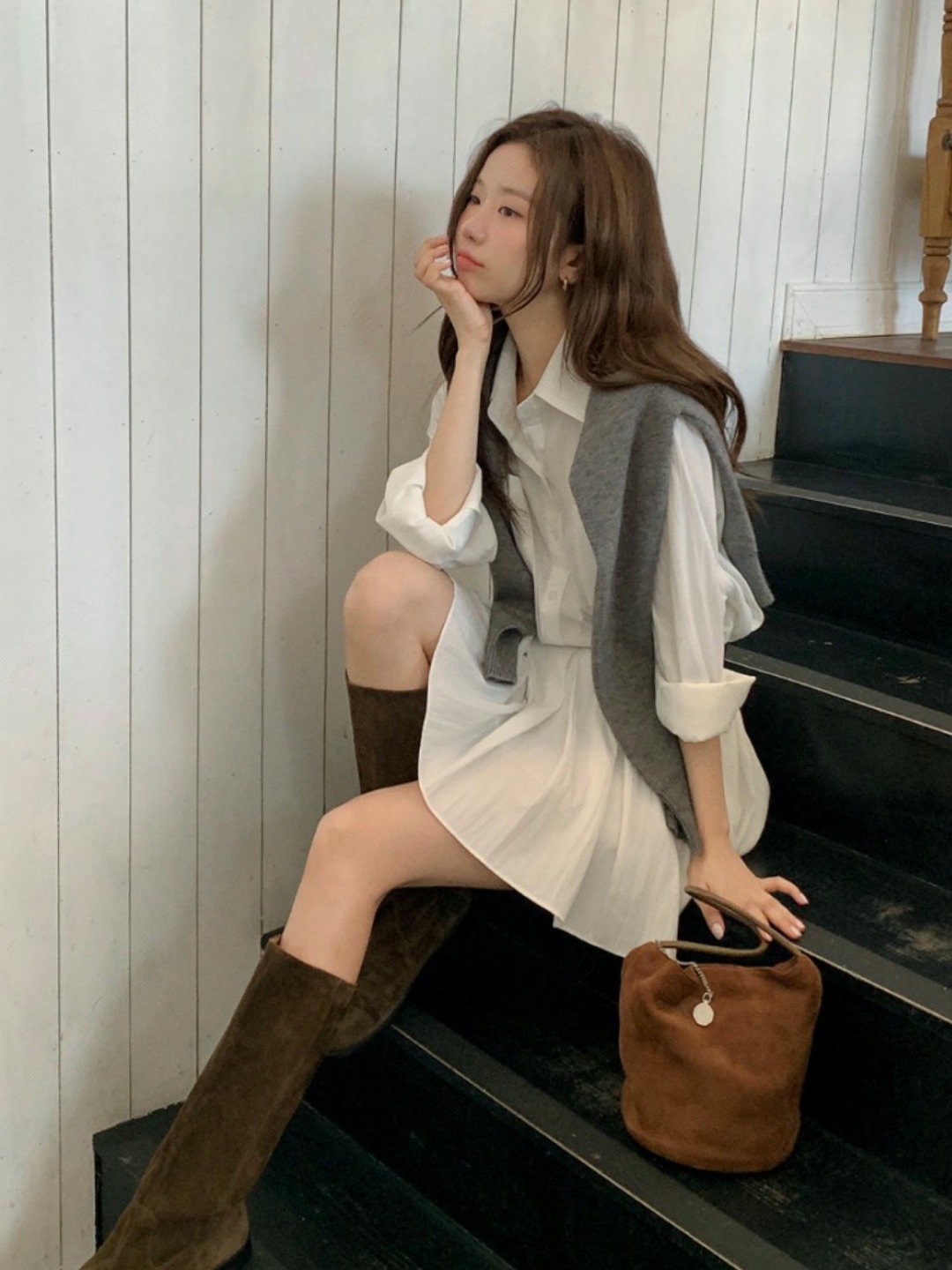內磨毛可斜肩T+鬆緊落地磨毛長裙SET(可拆買)