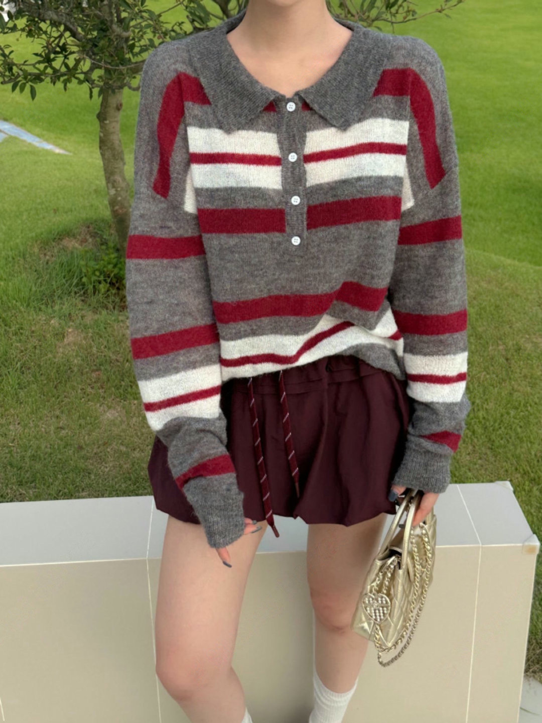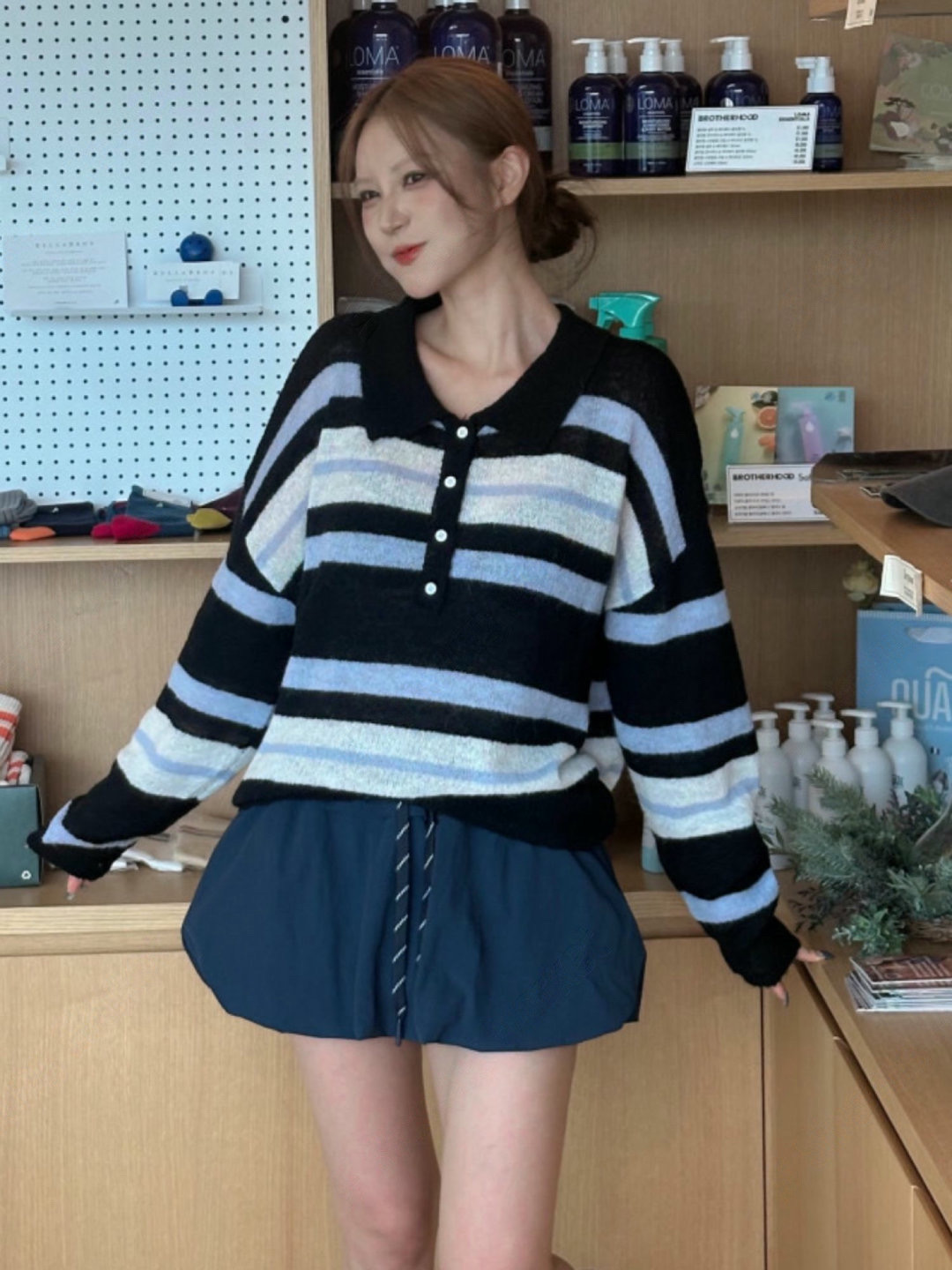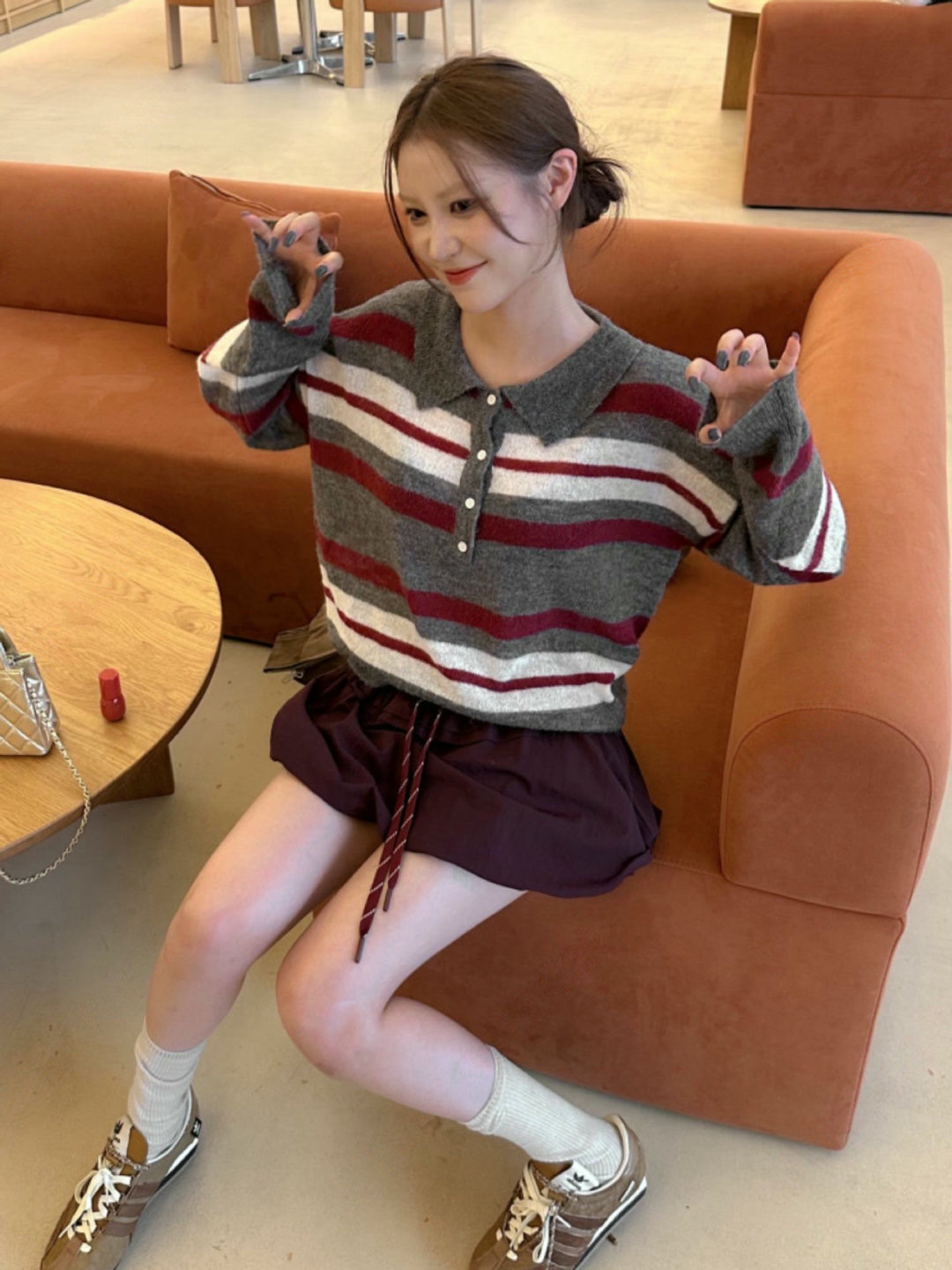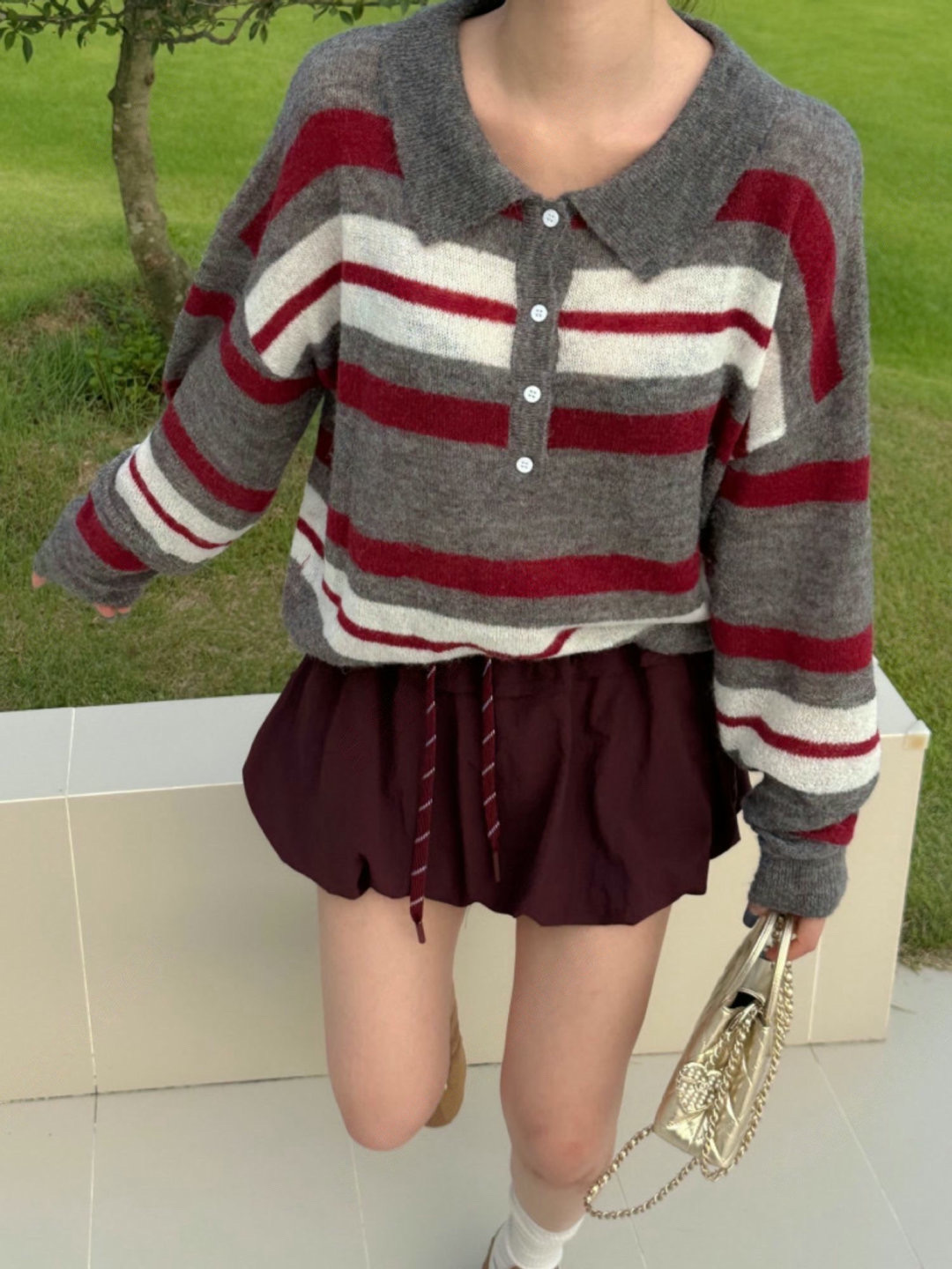撞色滾邊排釦衫+合身鬆緊短褲SET(可拆買)