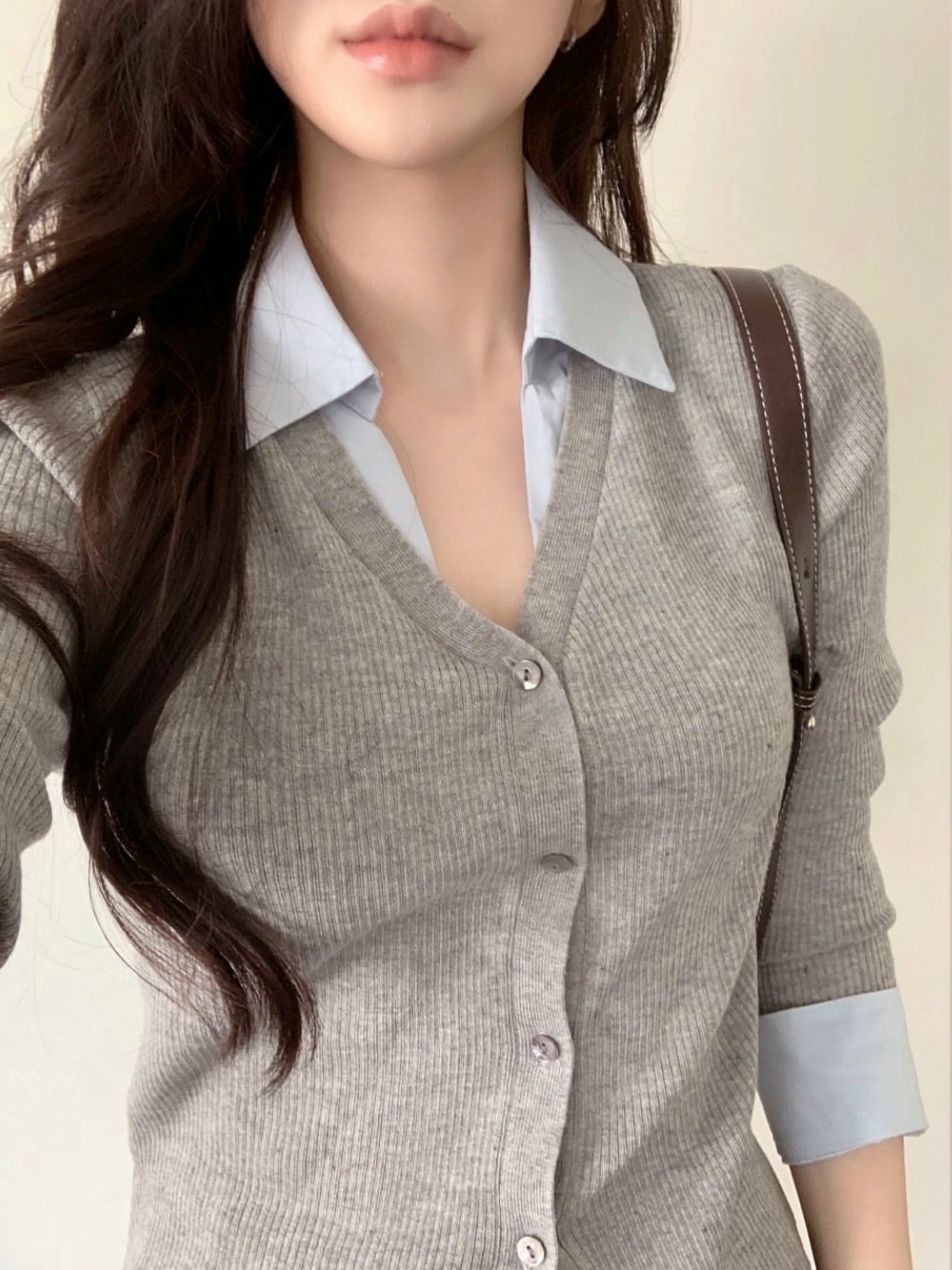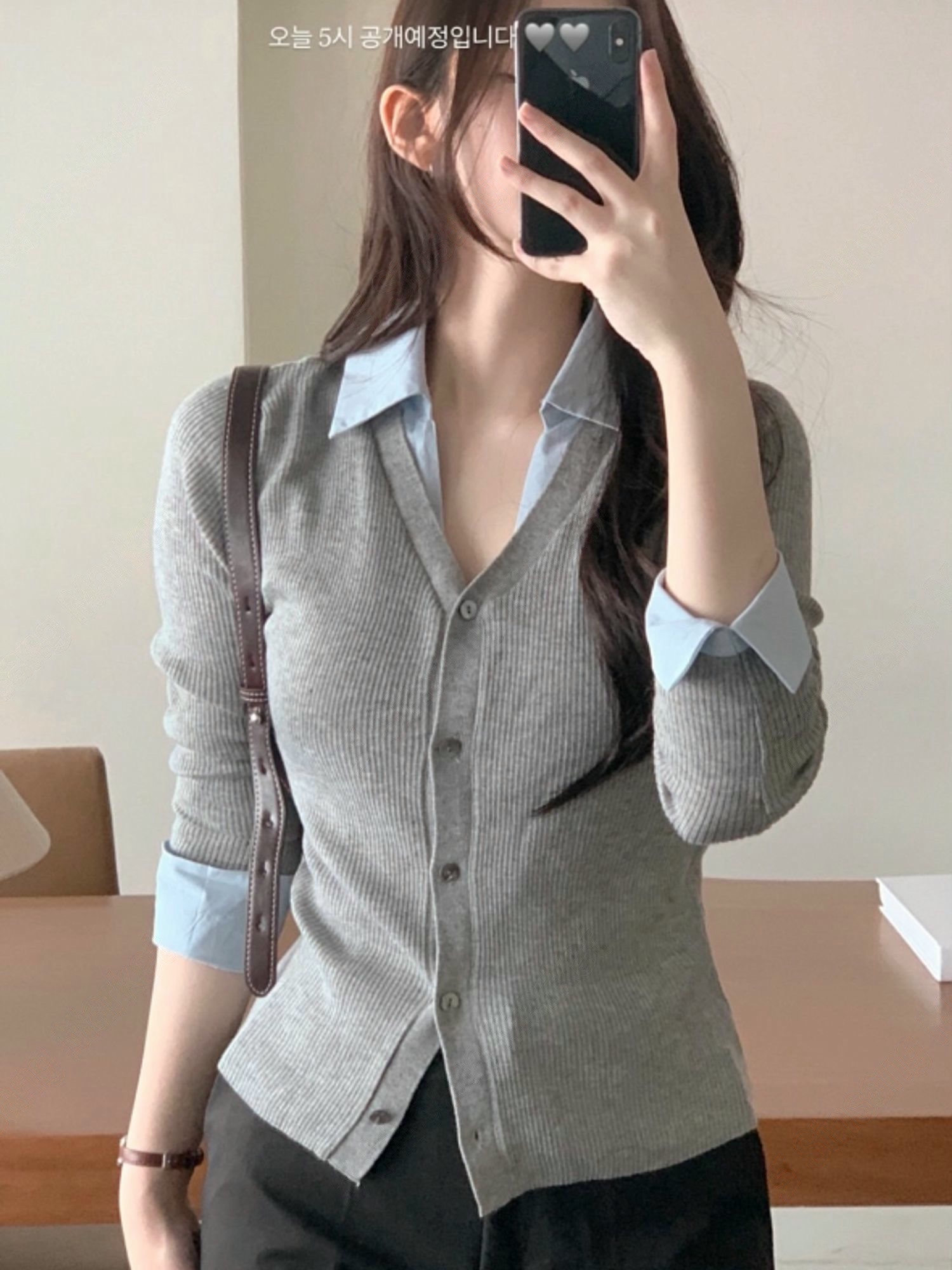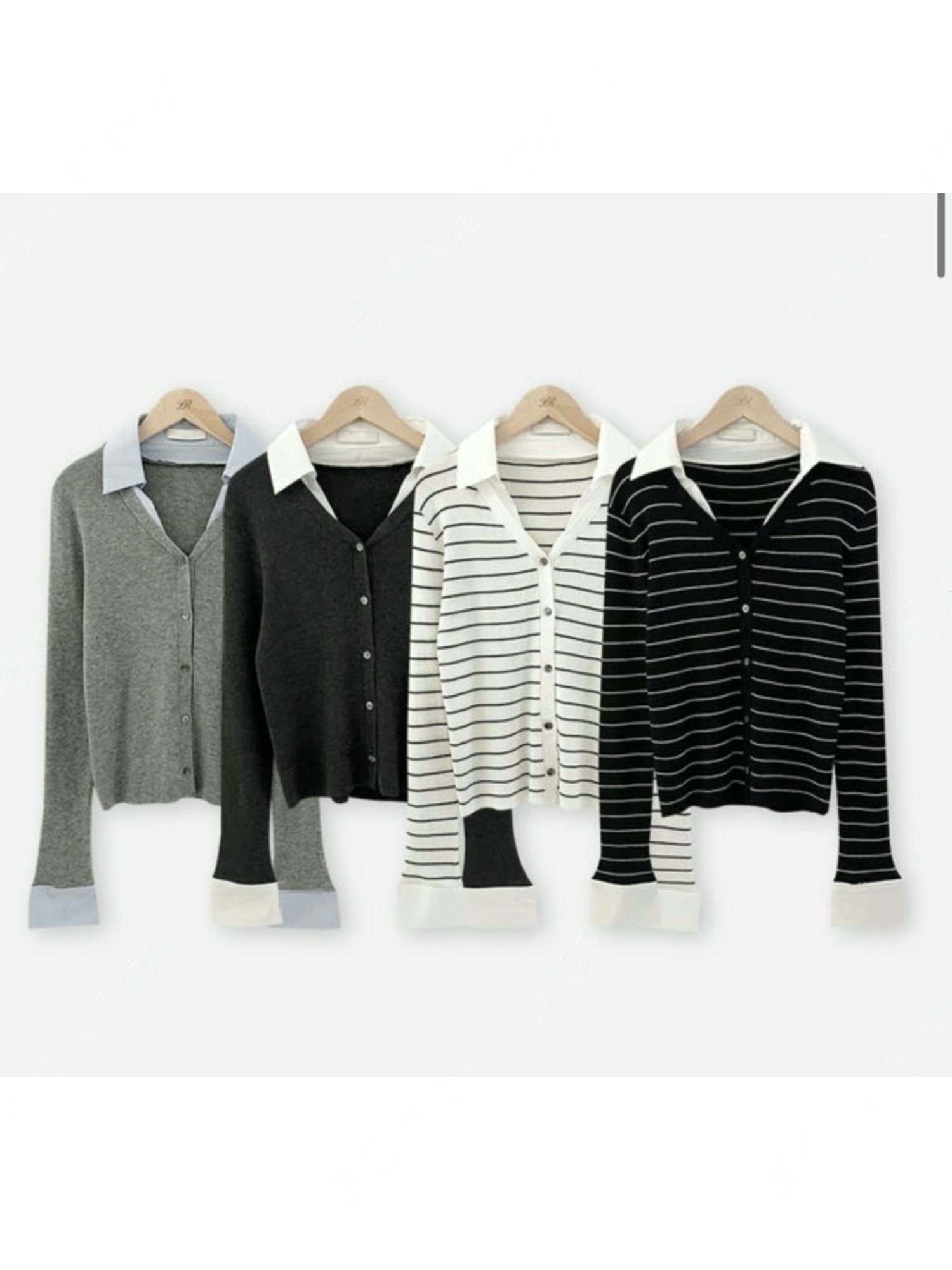 落肩寬鬆橫紋鏤空微透薄針織衫