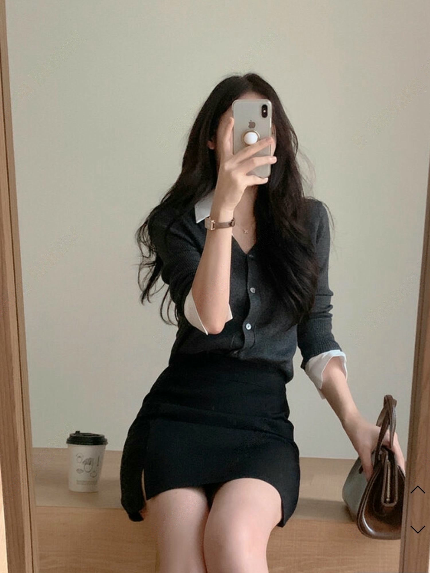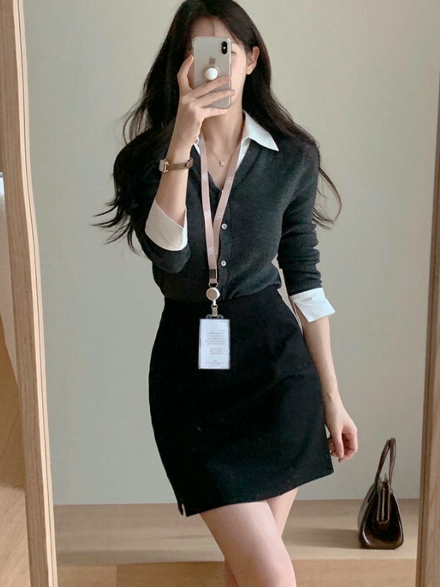 圓領銀扣金蔥小香外套+織紋短裙SET