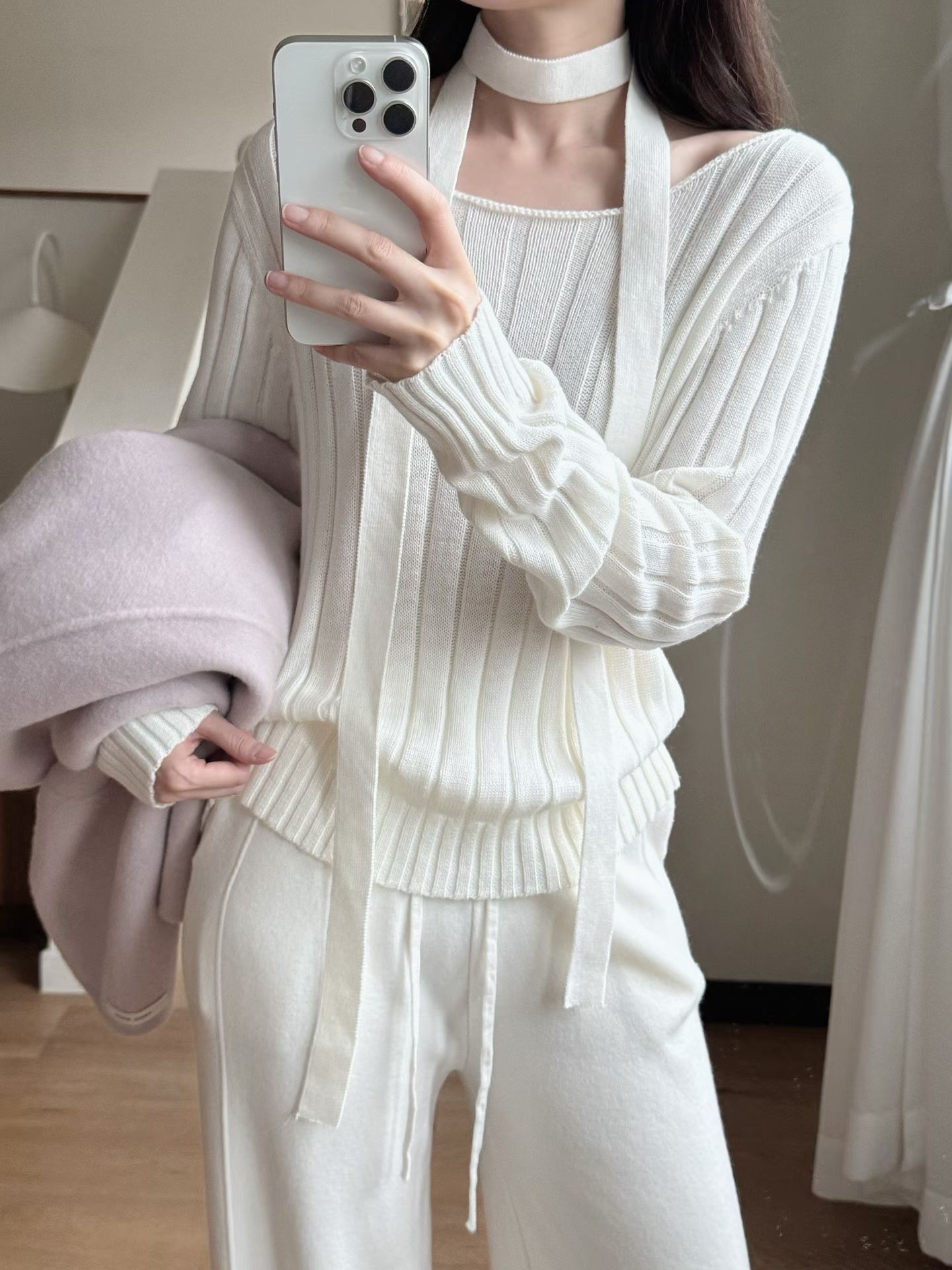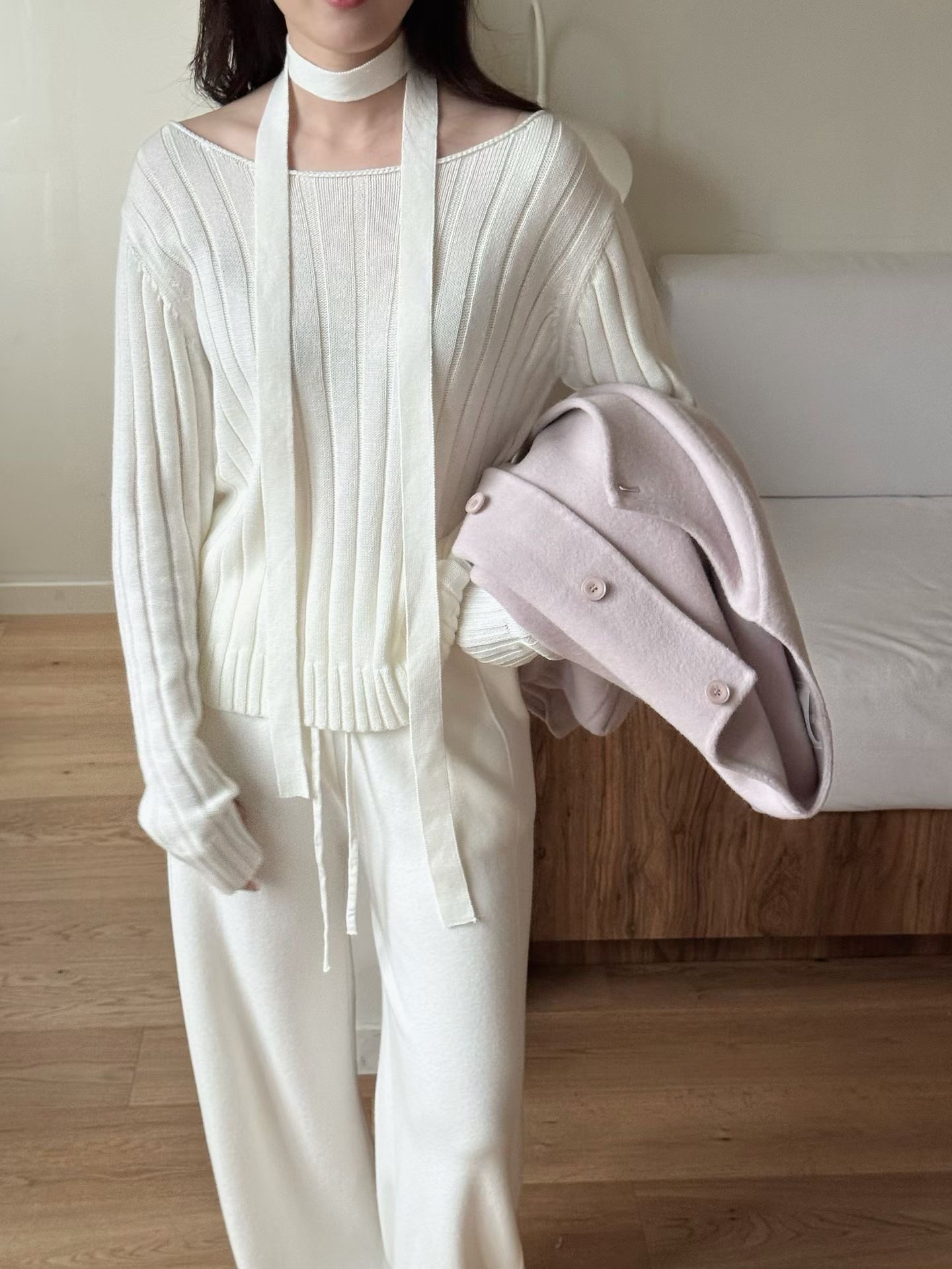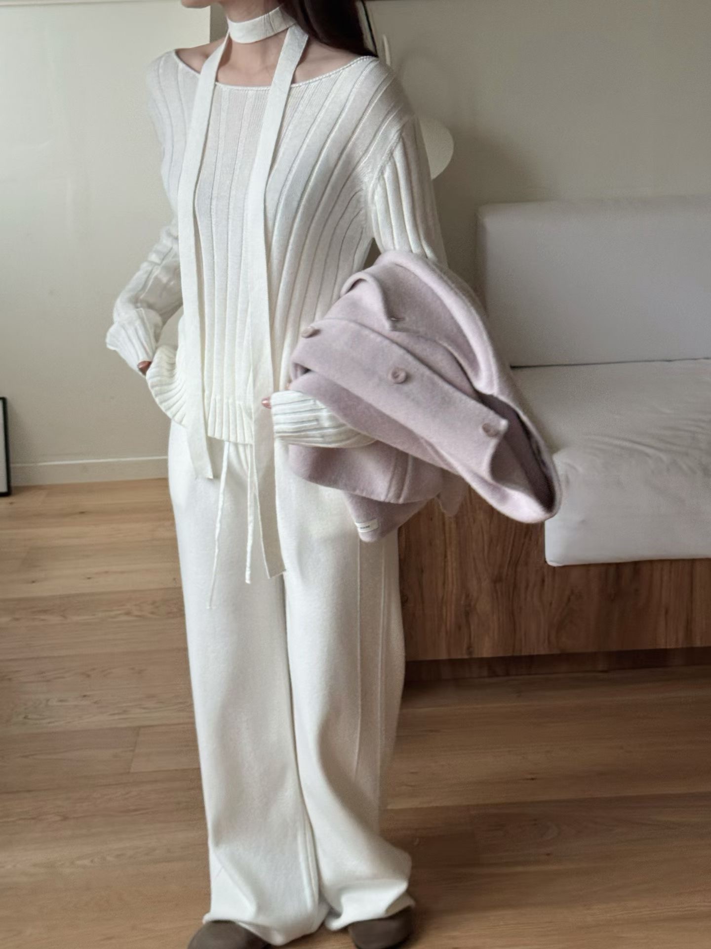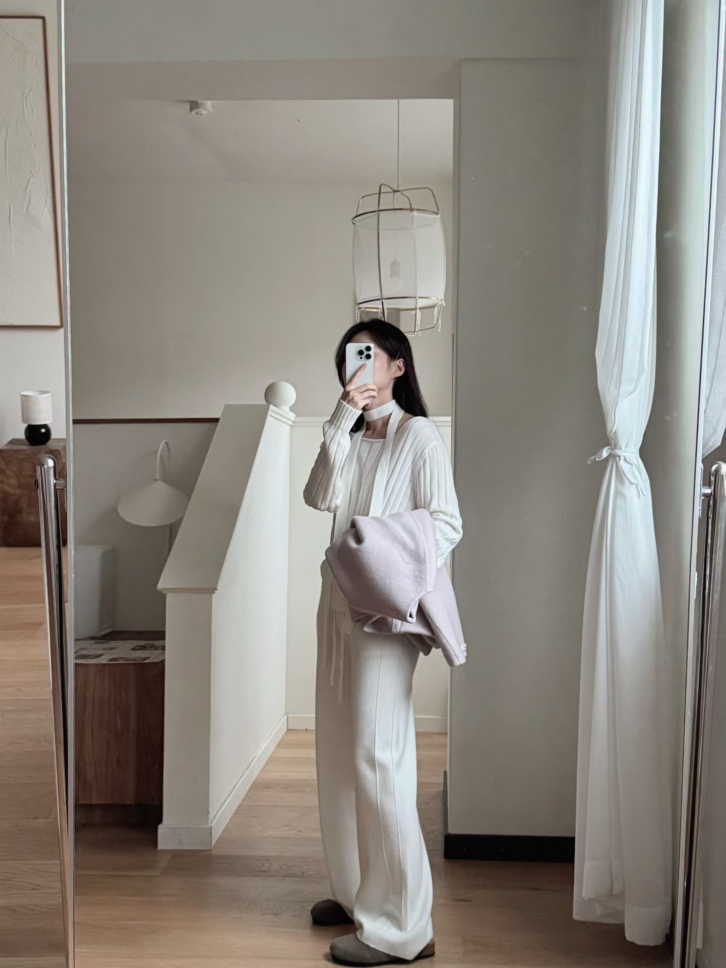 後鬆緊前壓褶秋冬厚款寬褲(附皮帶)
