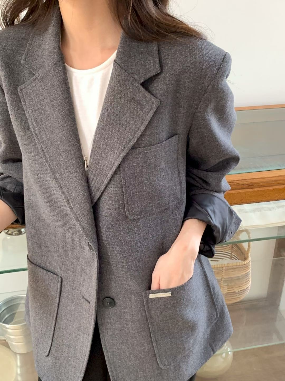 圓領銀扣金蔥小香外套+織紋短裙SET