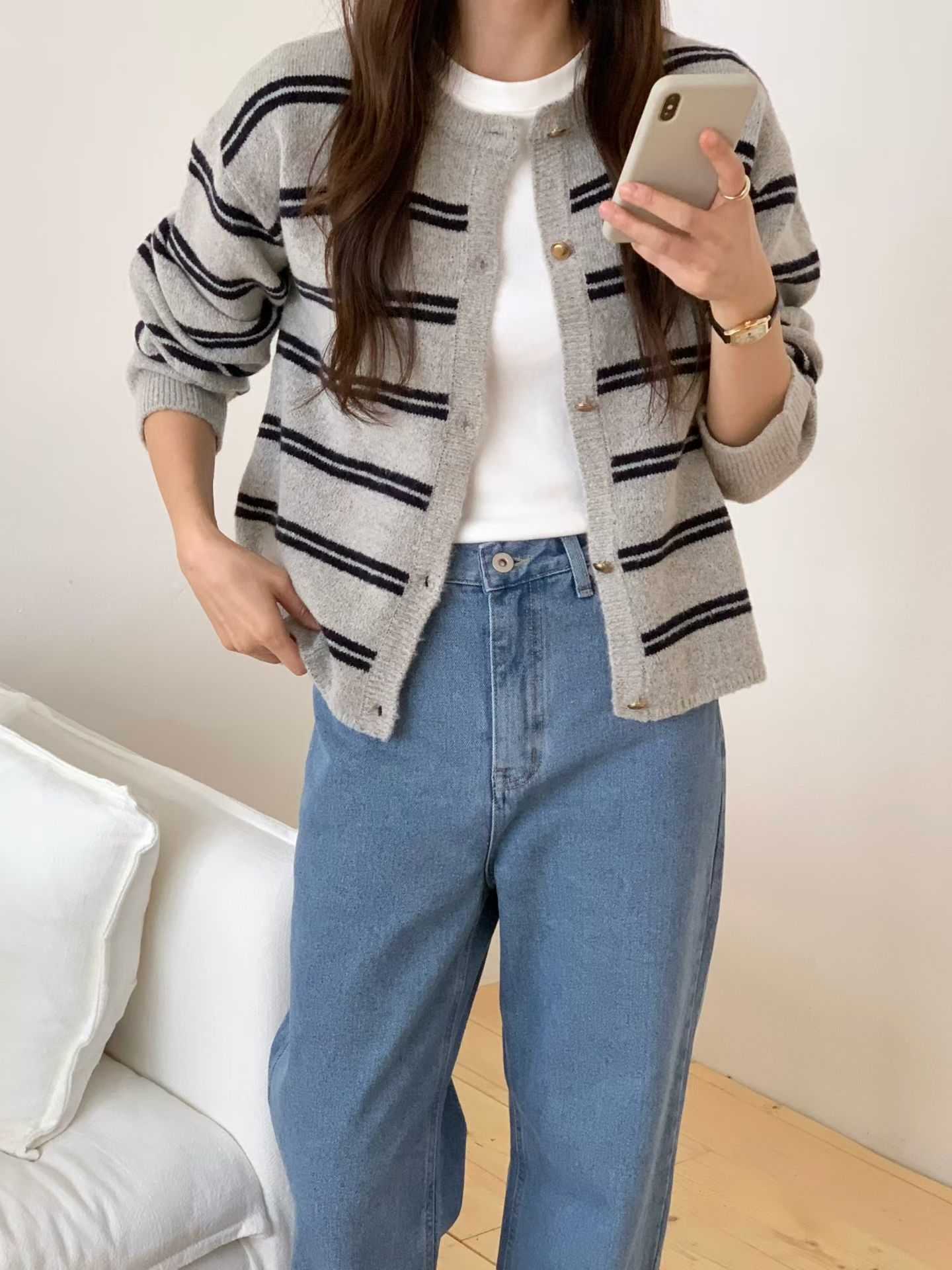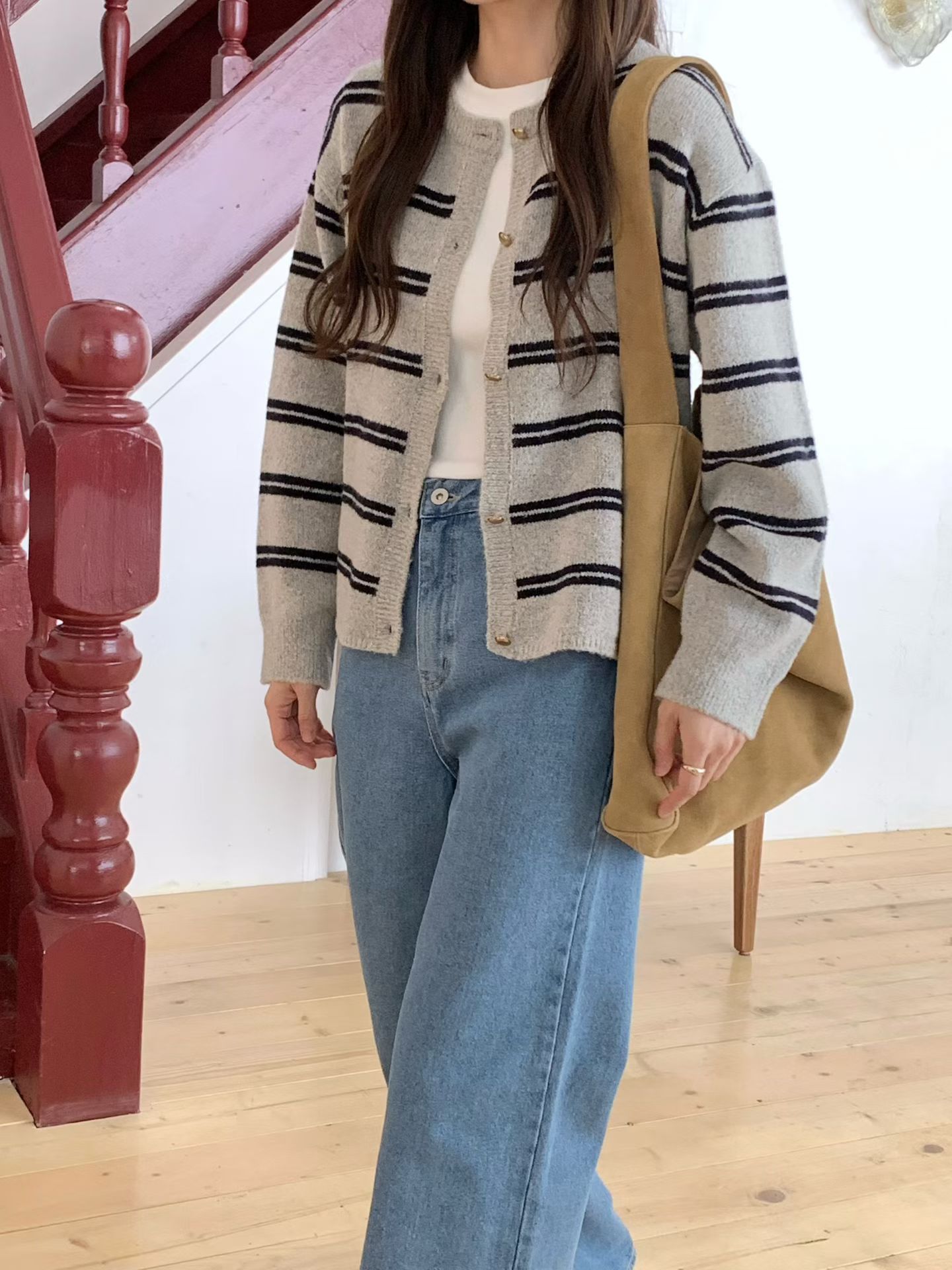 三件組|菱格紋背心+傘擺短裙+排釦罩衫SET