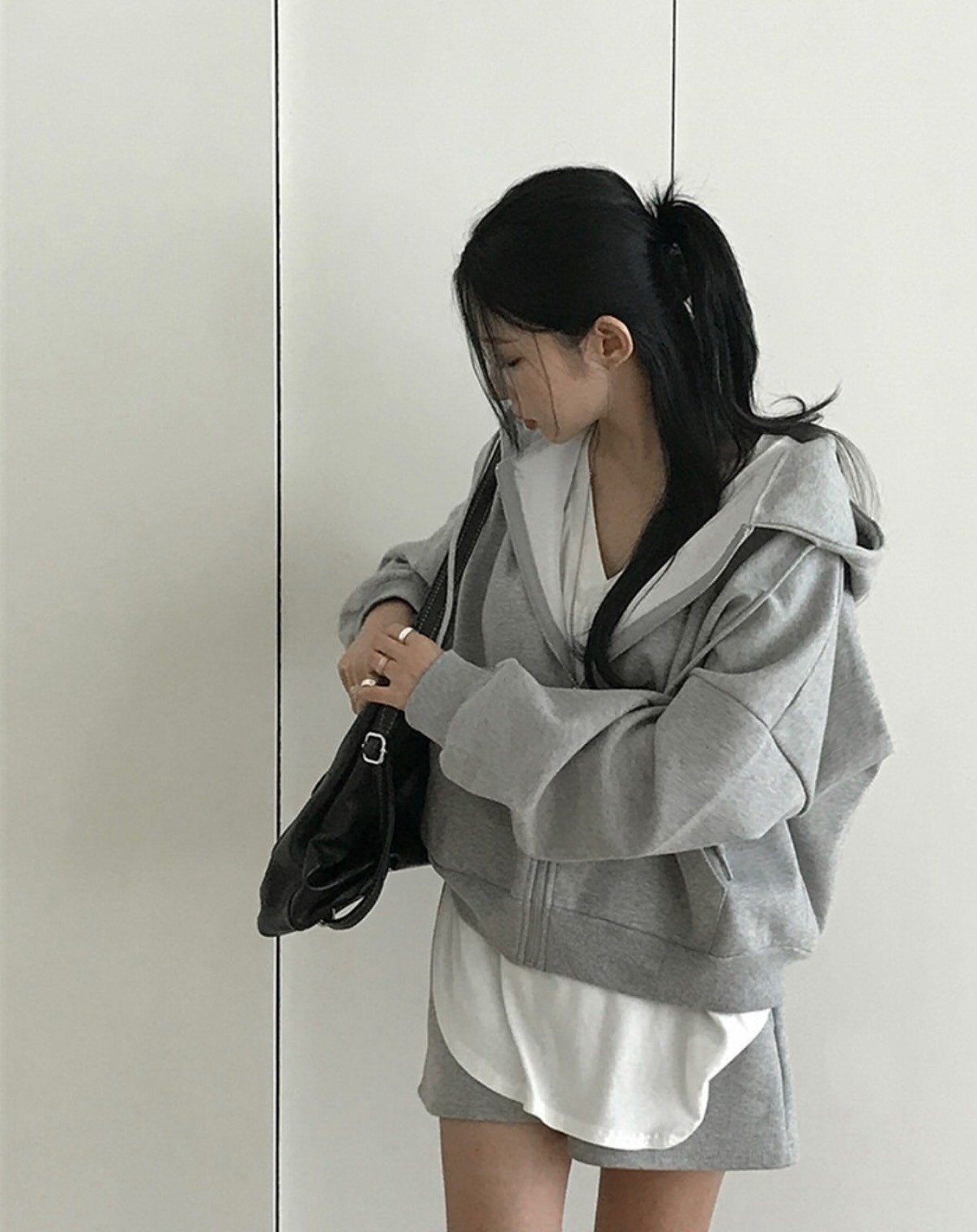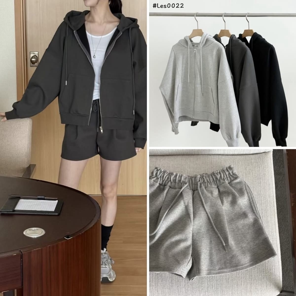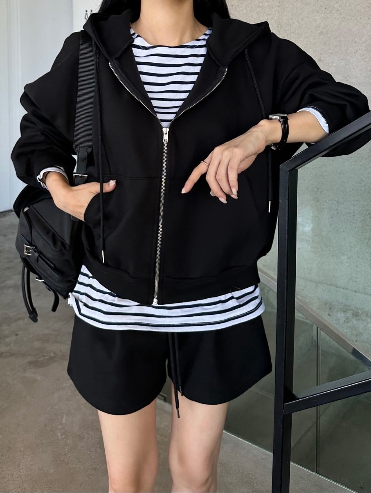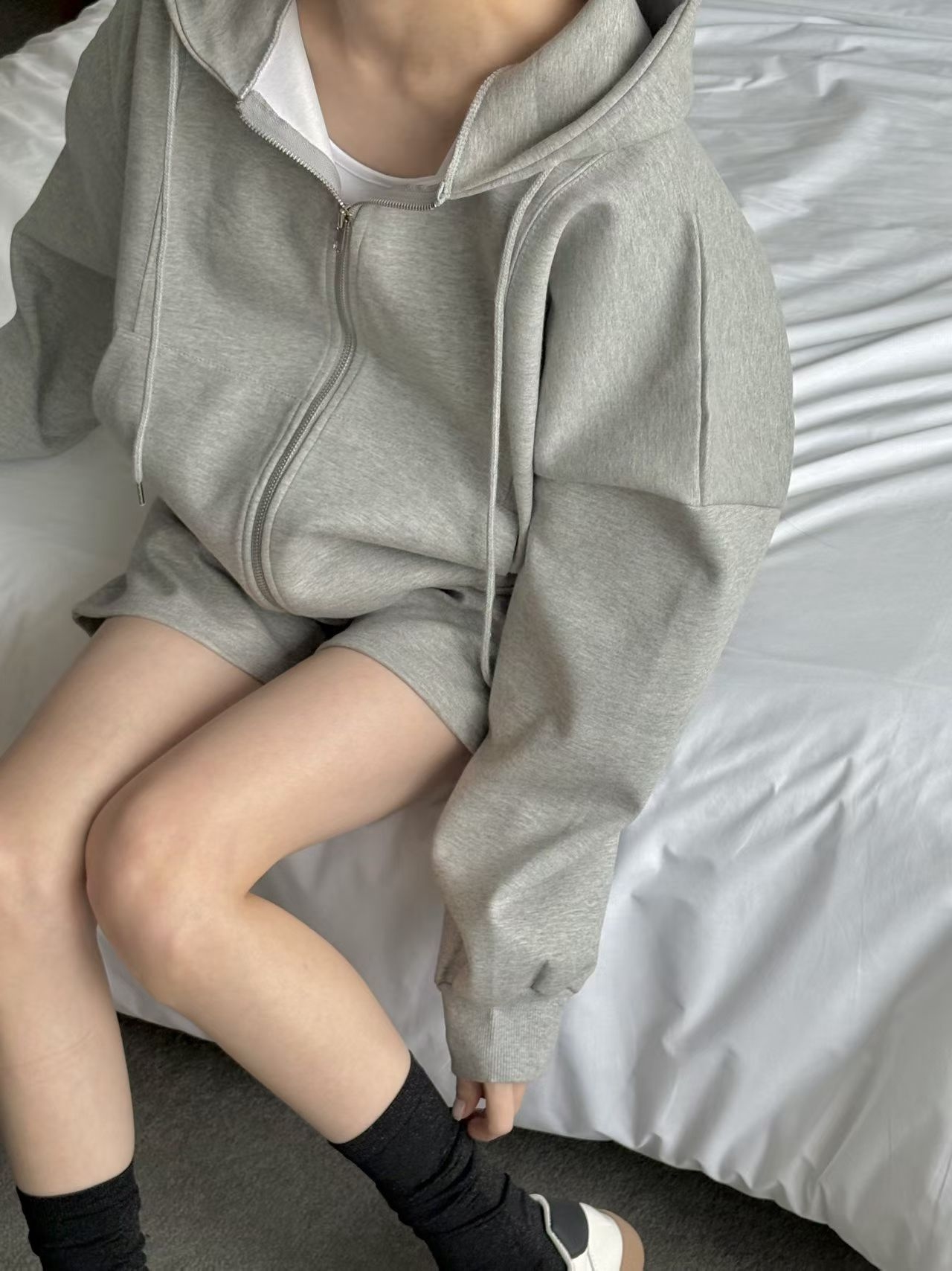 寬鬆抽繩連帽外套+抽繩短褲SET