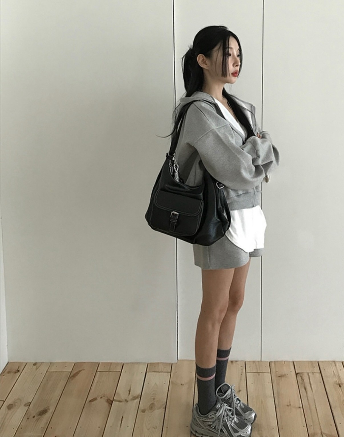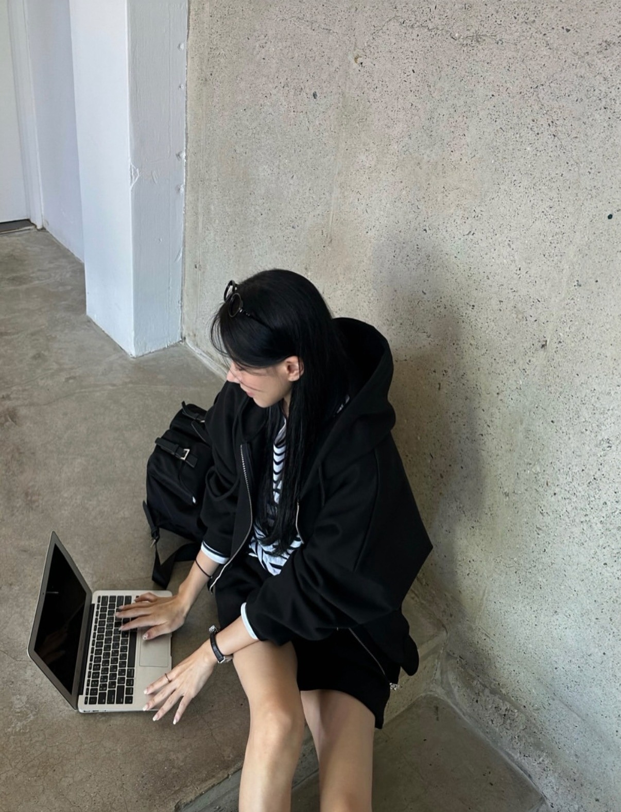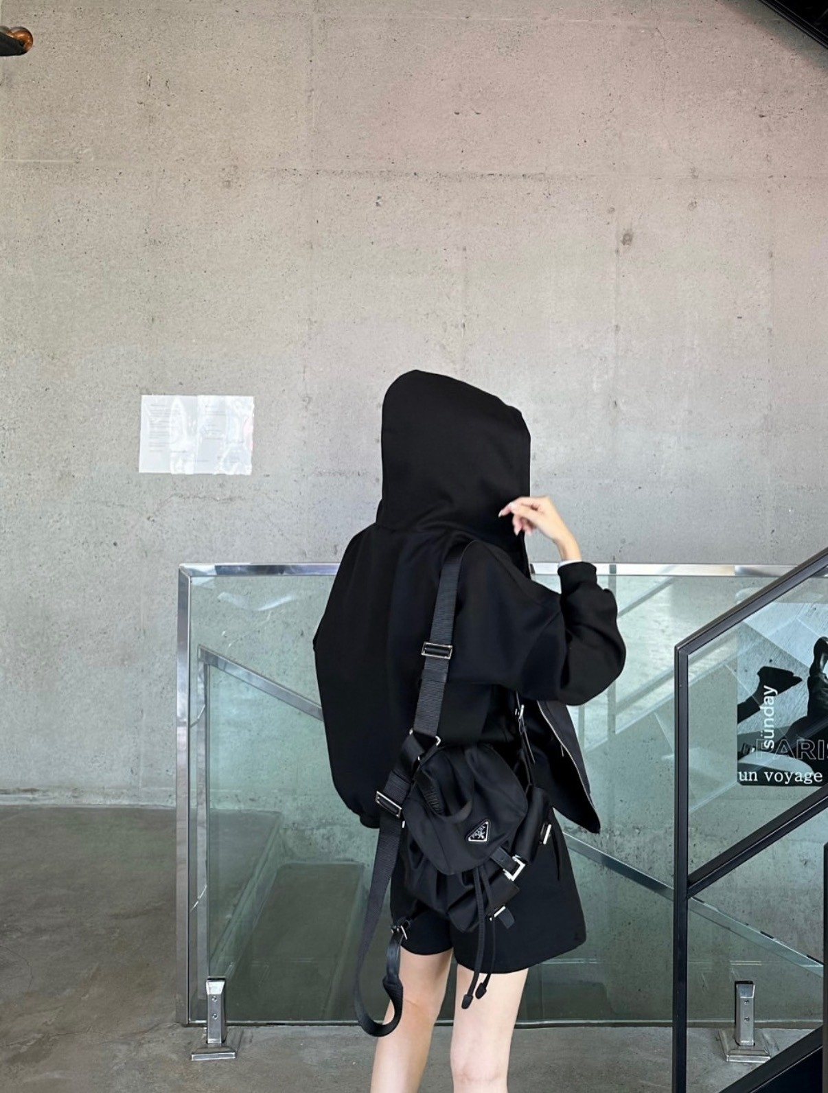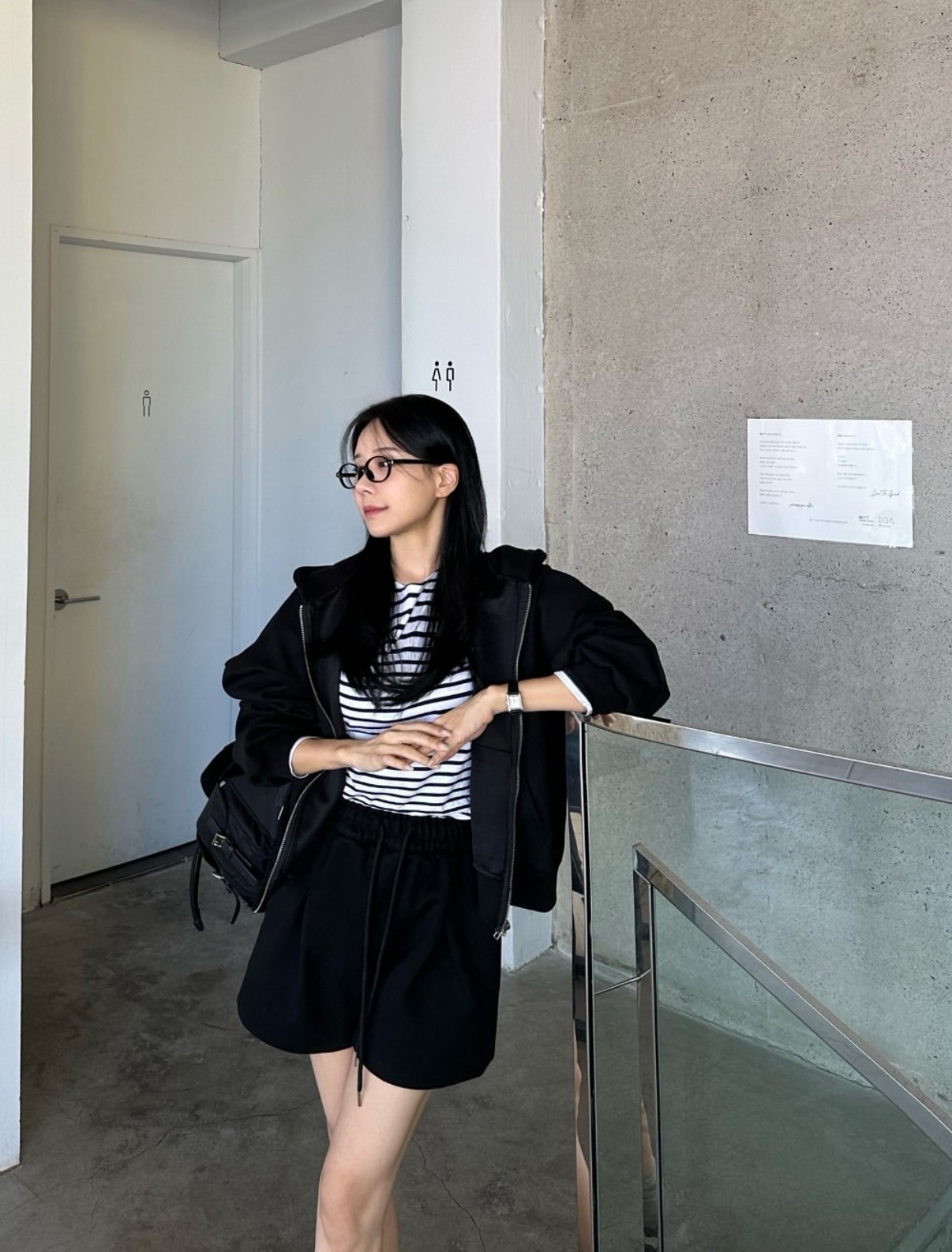 寬鬆抽繩連帽外套+抽繩短褲SET
