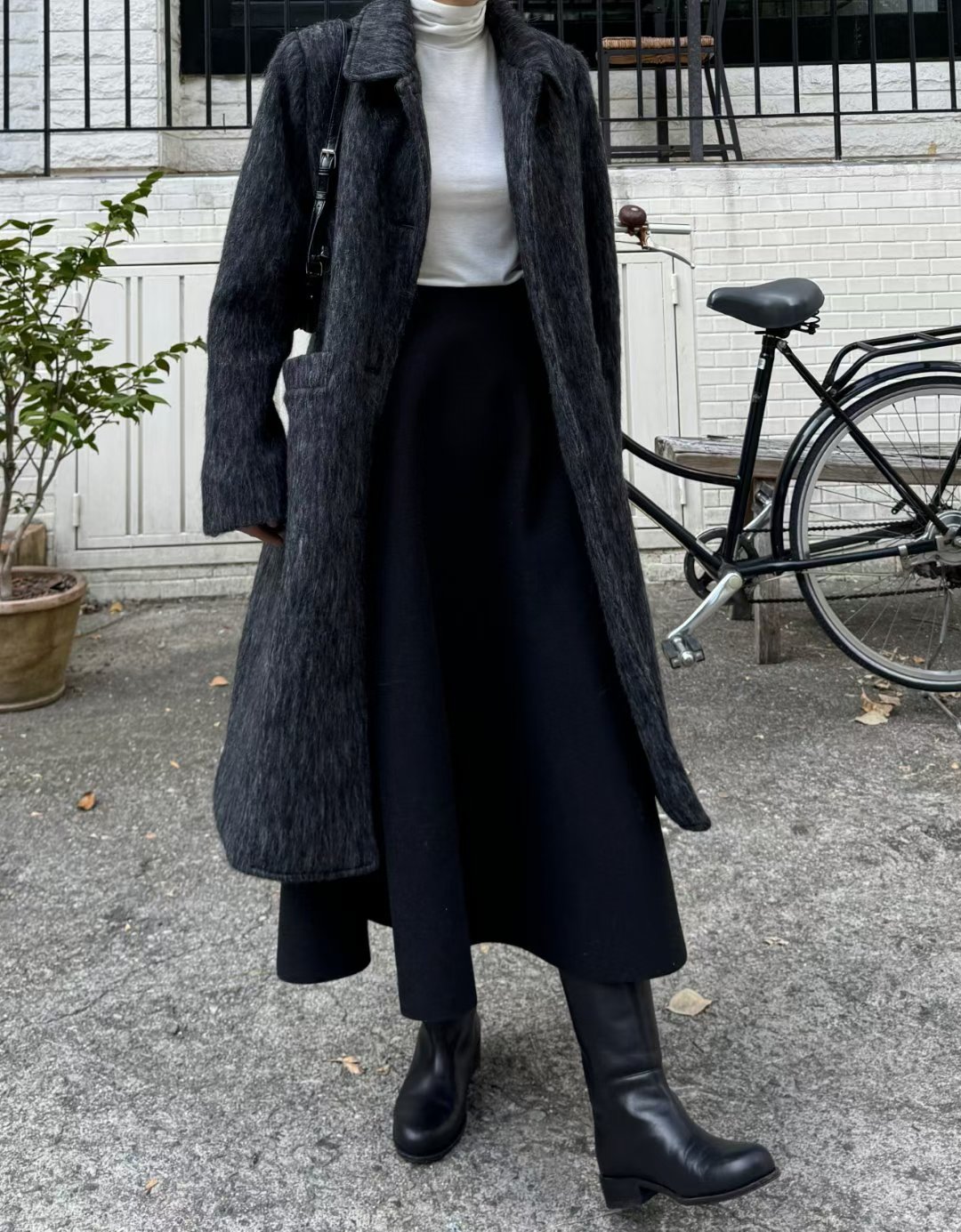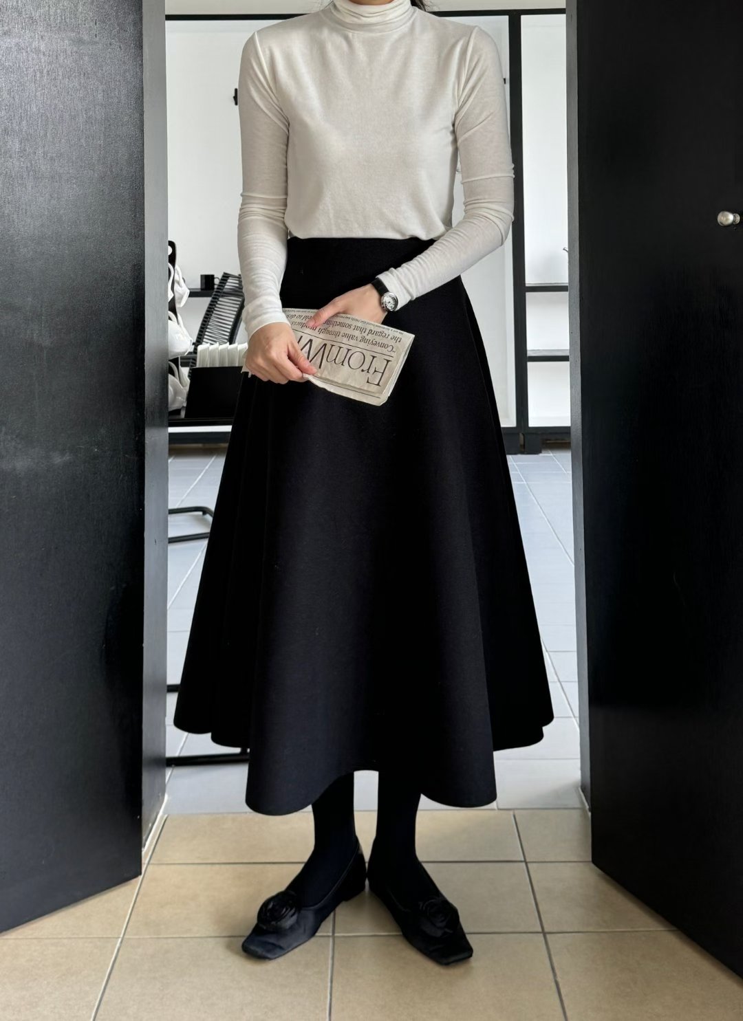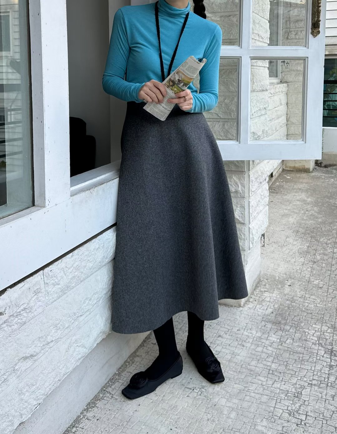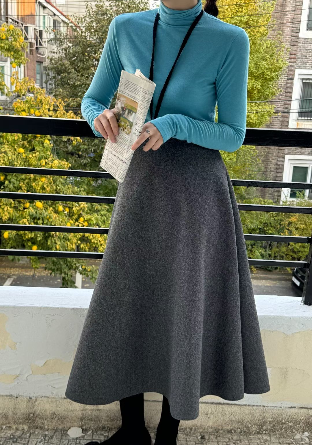 內磨毛可斜肩T+鬆緊落地磨毛長裙SET(可拆買)