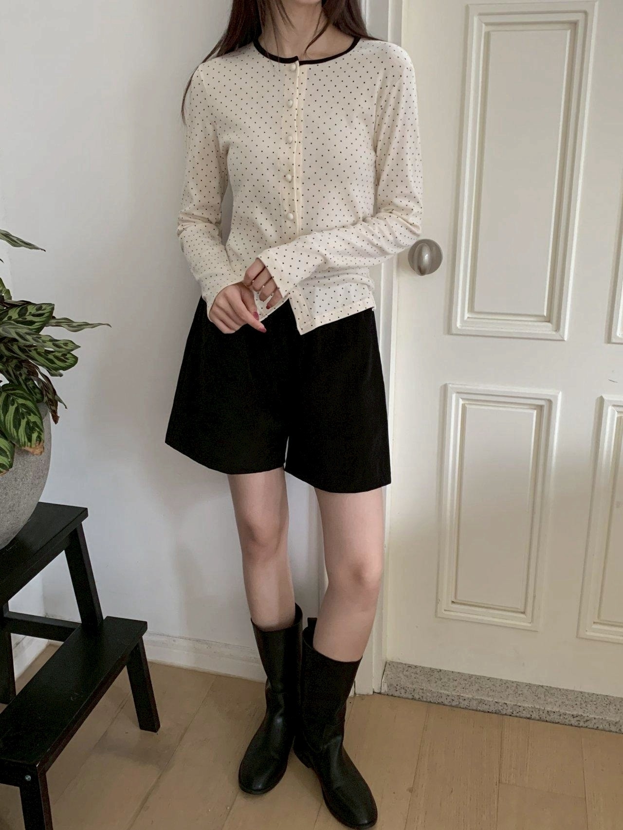 三件組|菱格紋背心+傘擺短裙+排釦罩衫SET