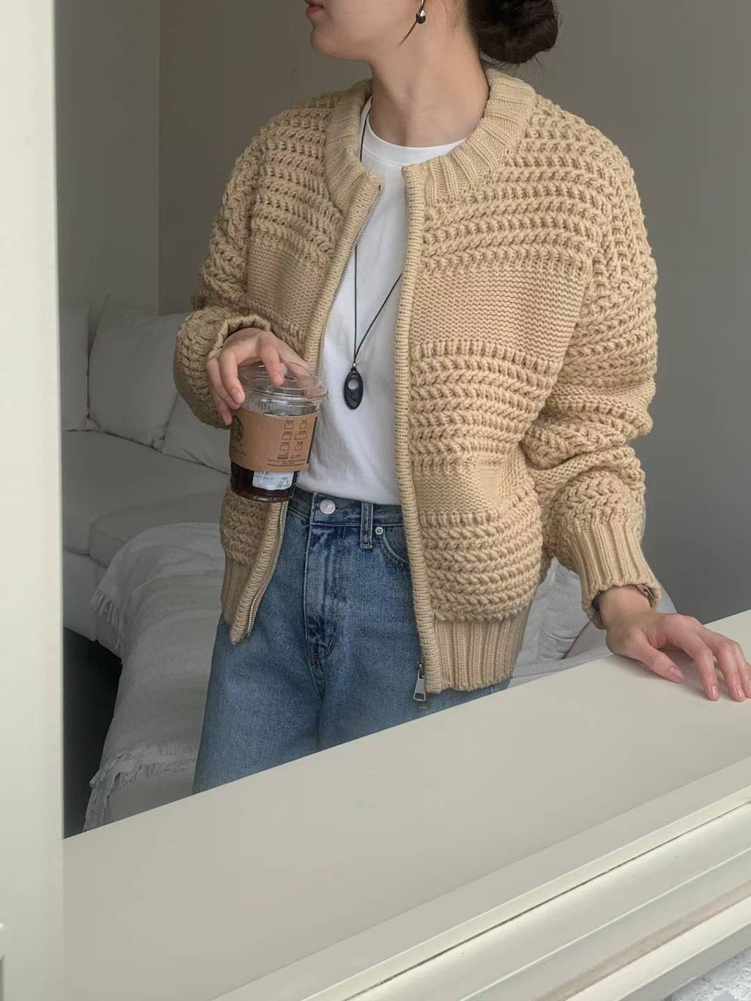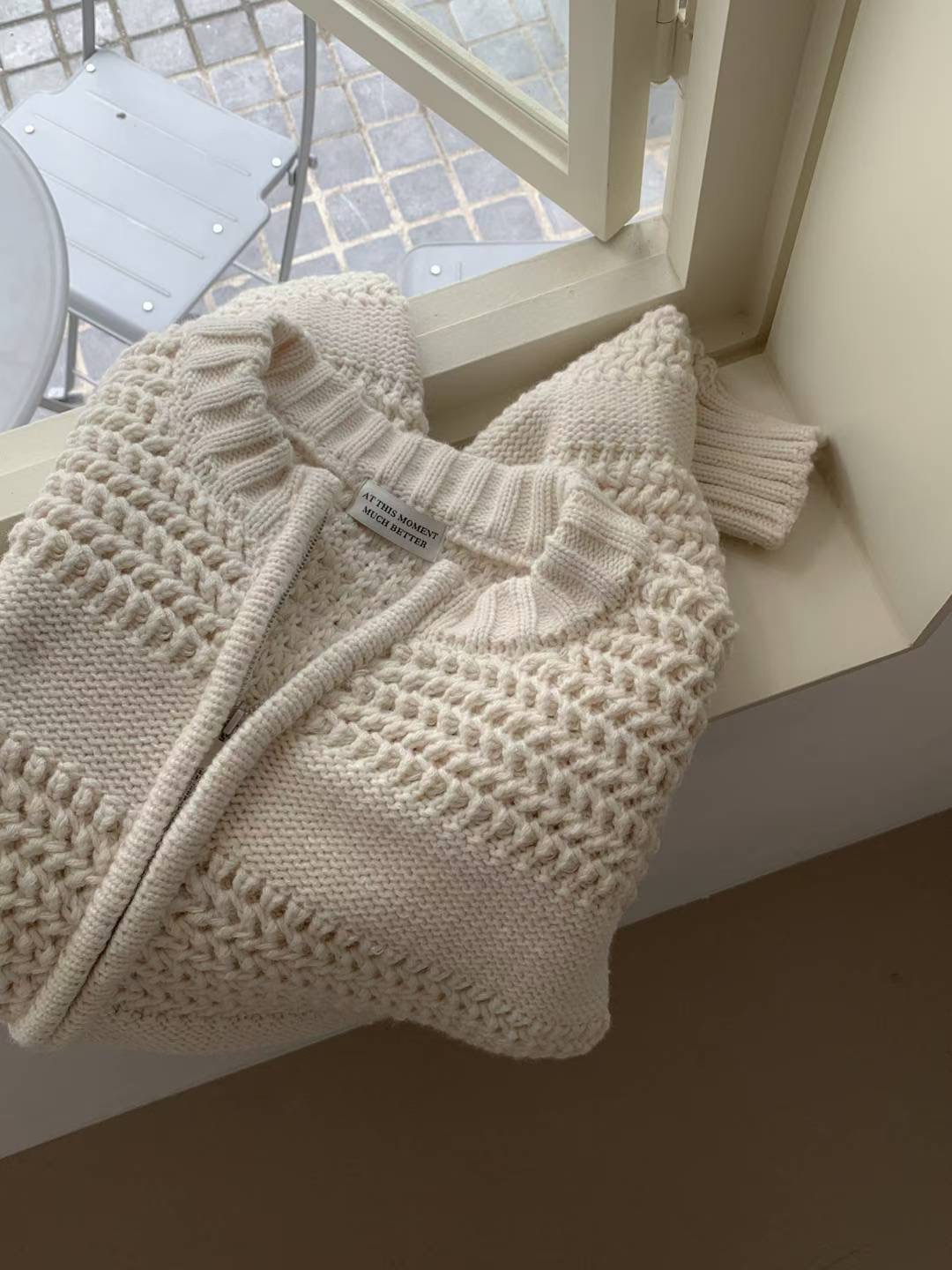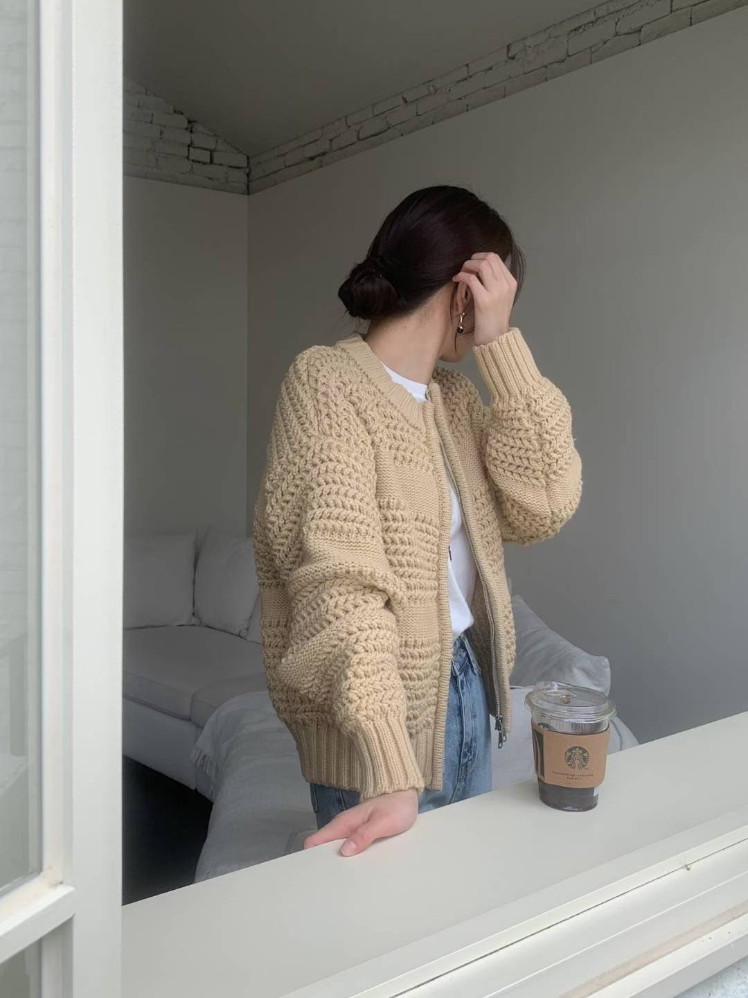圓領磅數編織紋拉鍊針織外套