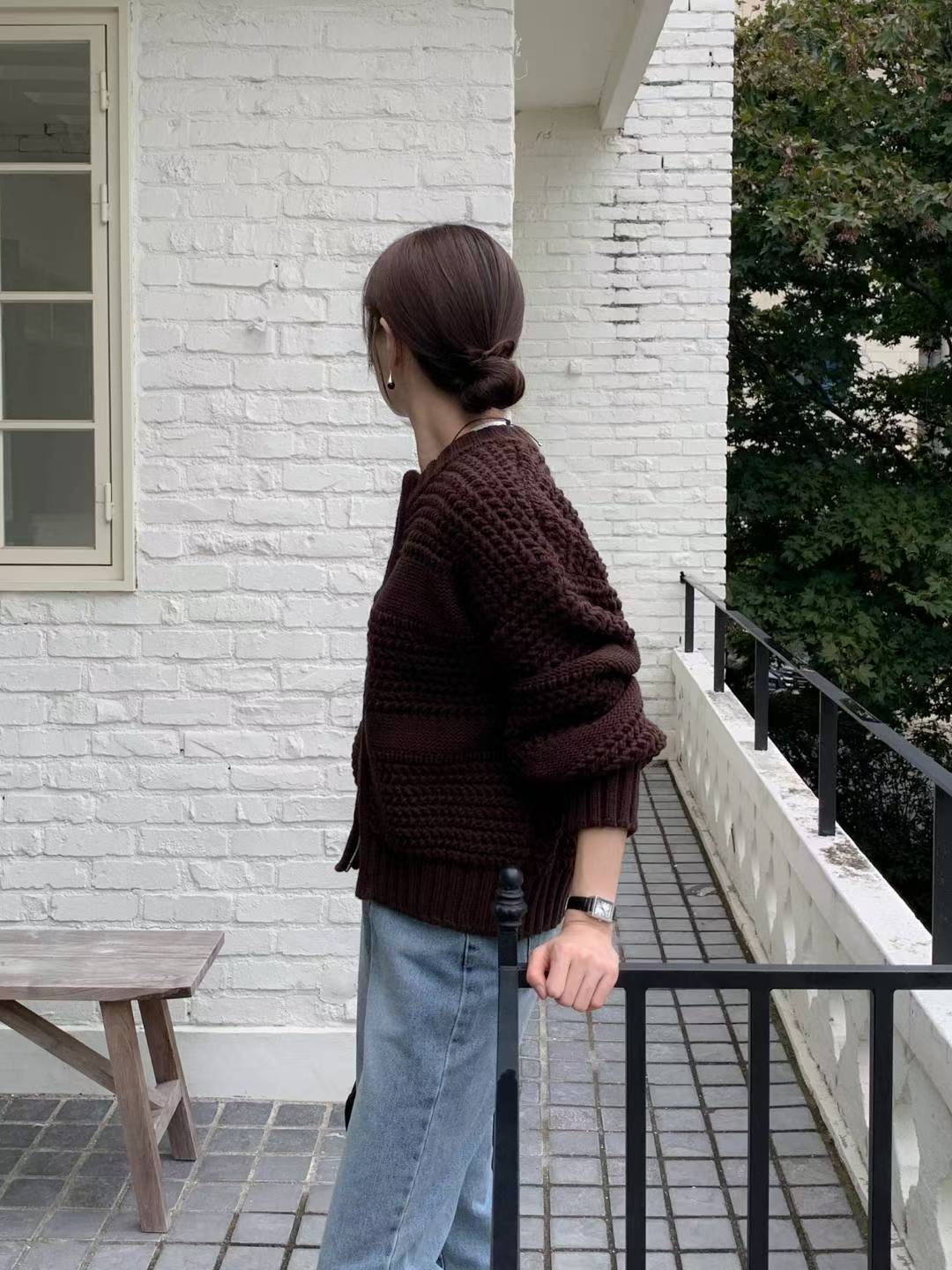 V領毛圈感金釦軟糯針織衣