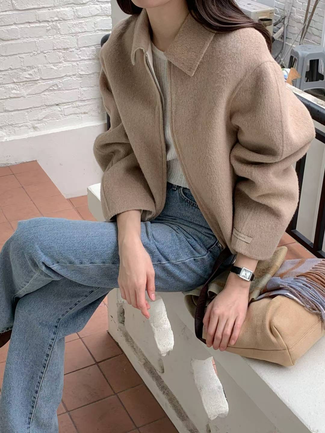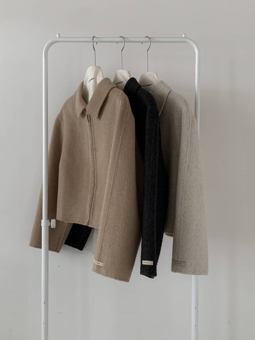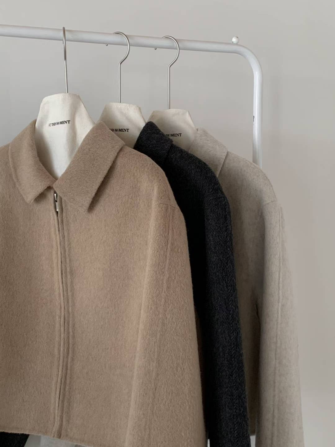 雙向拉鍊壓線連帽針織外套+落地長褲SET