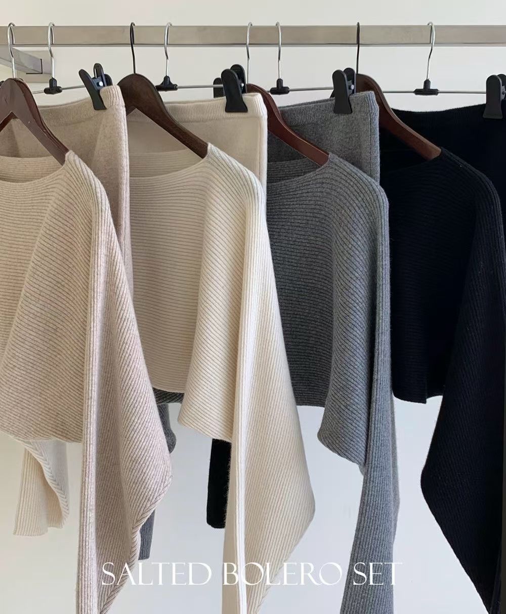 三件套|滾邊短袖針織衫+排釦外套+短裙SET