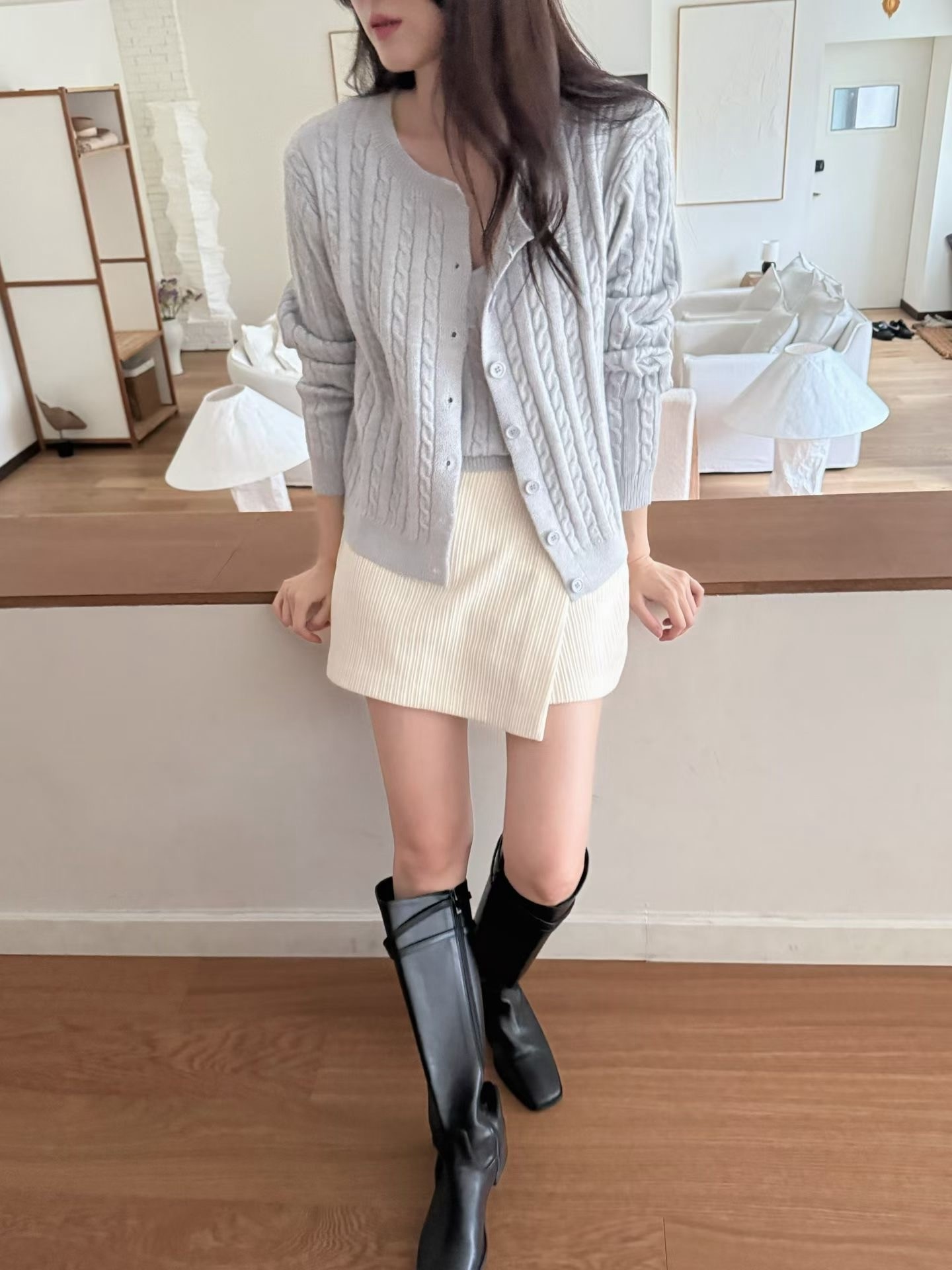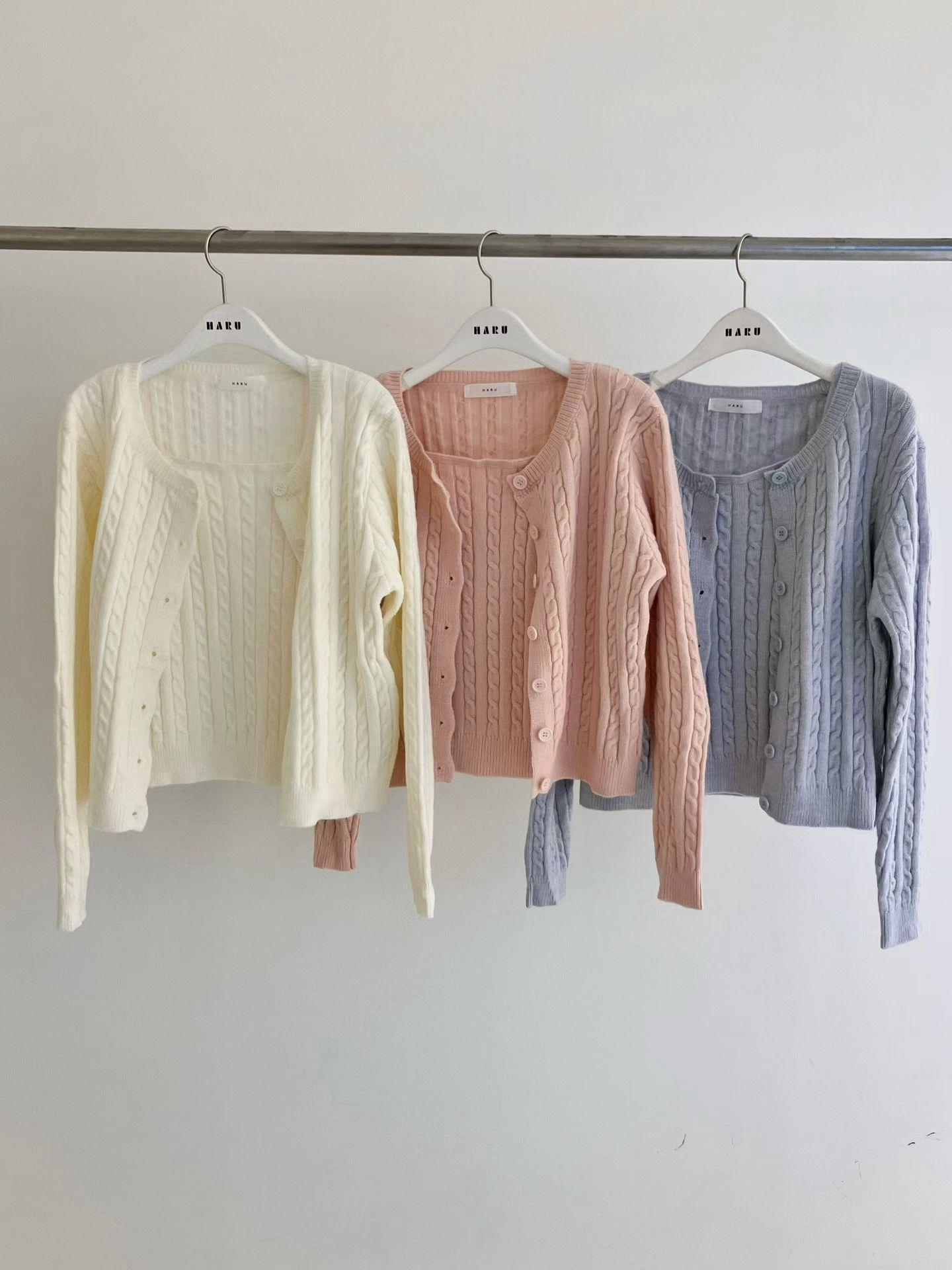 麻花細肩背心+排釦罩衫SET