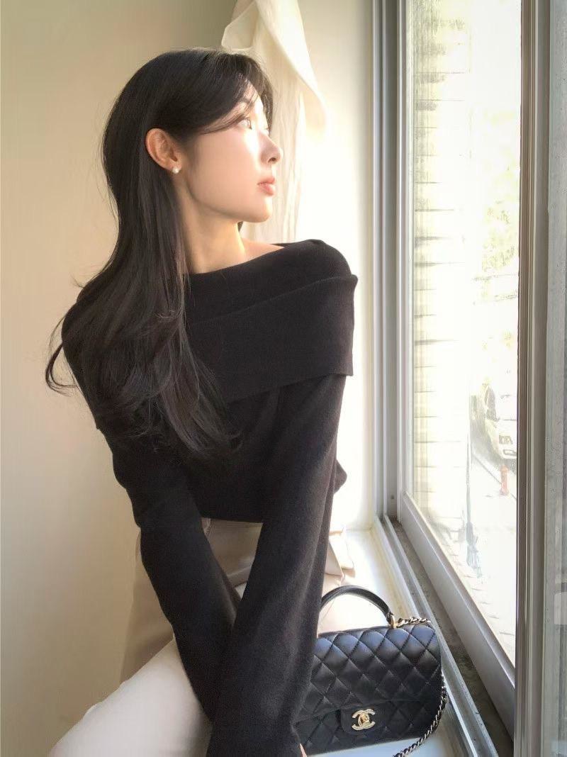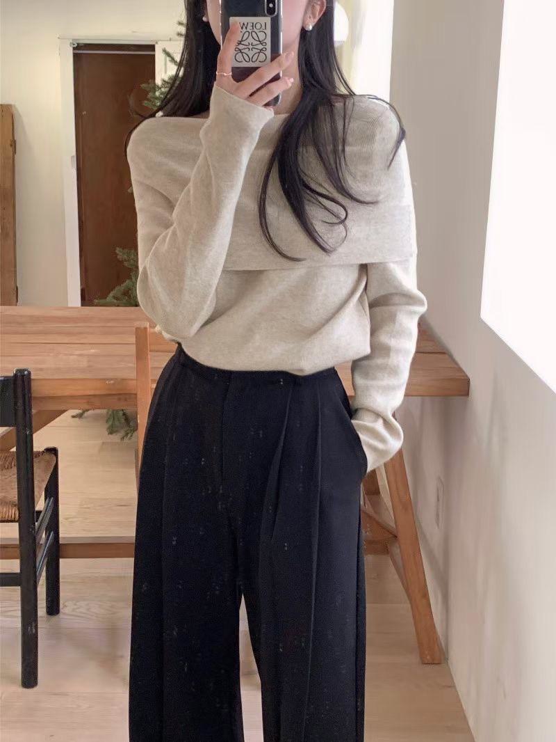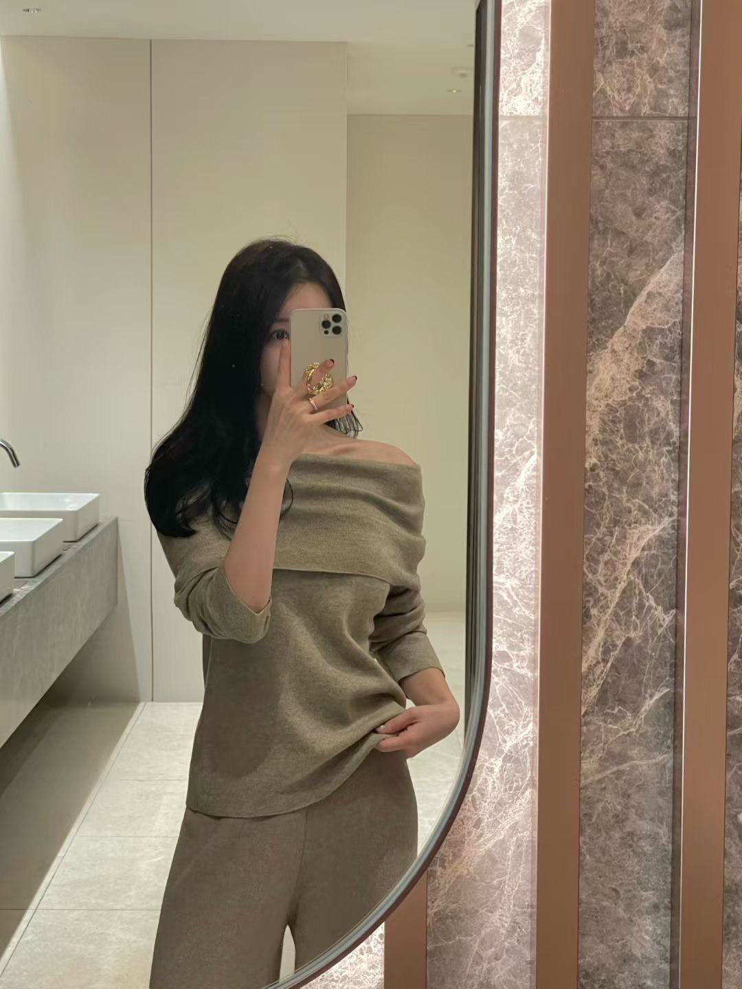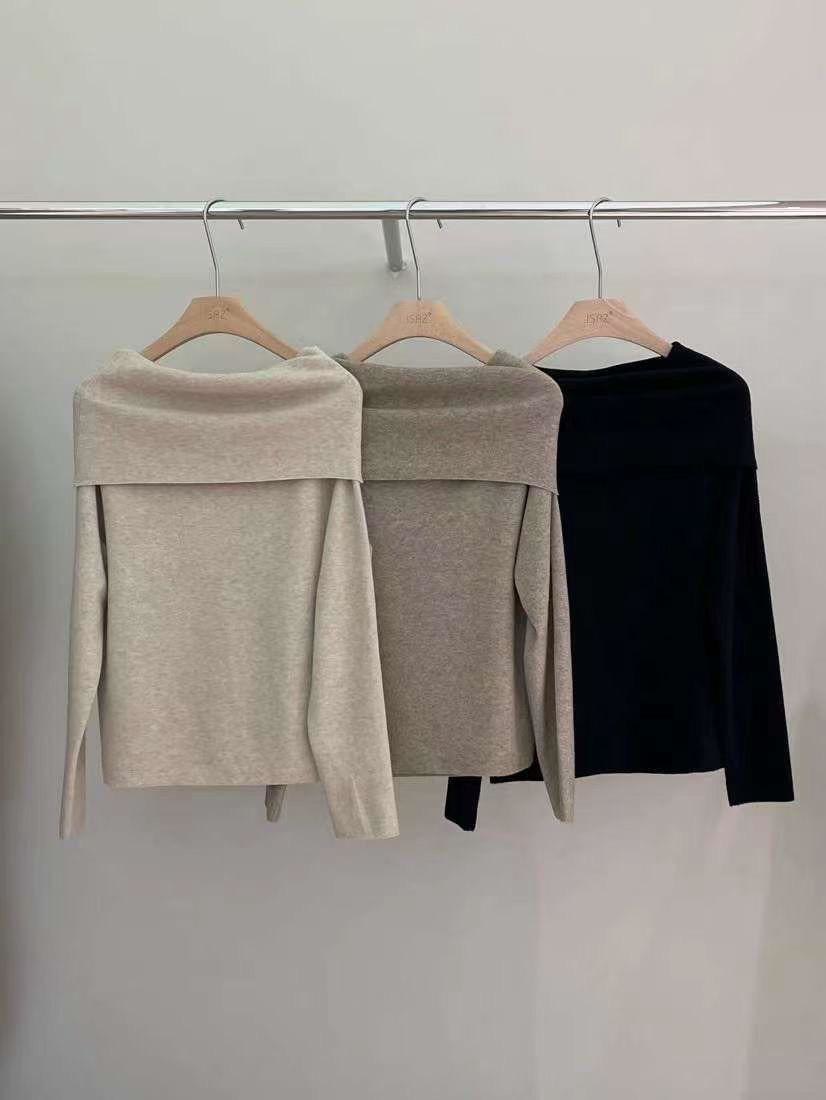 內磨毛可斜肩T+鬆緊落地磨毛長裙SET(可拆買)