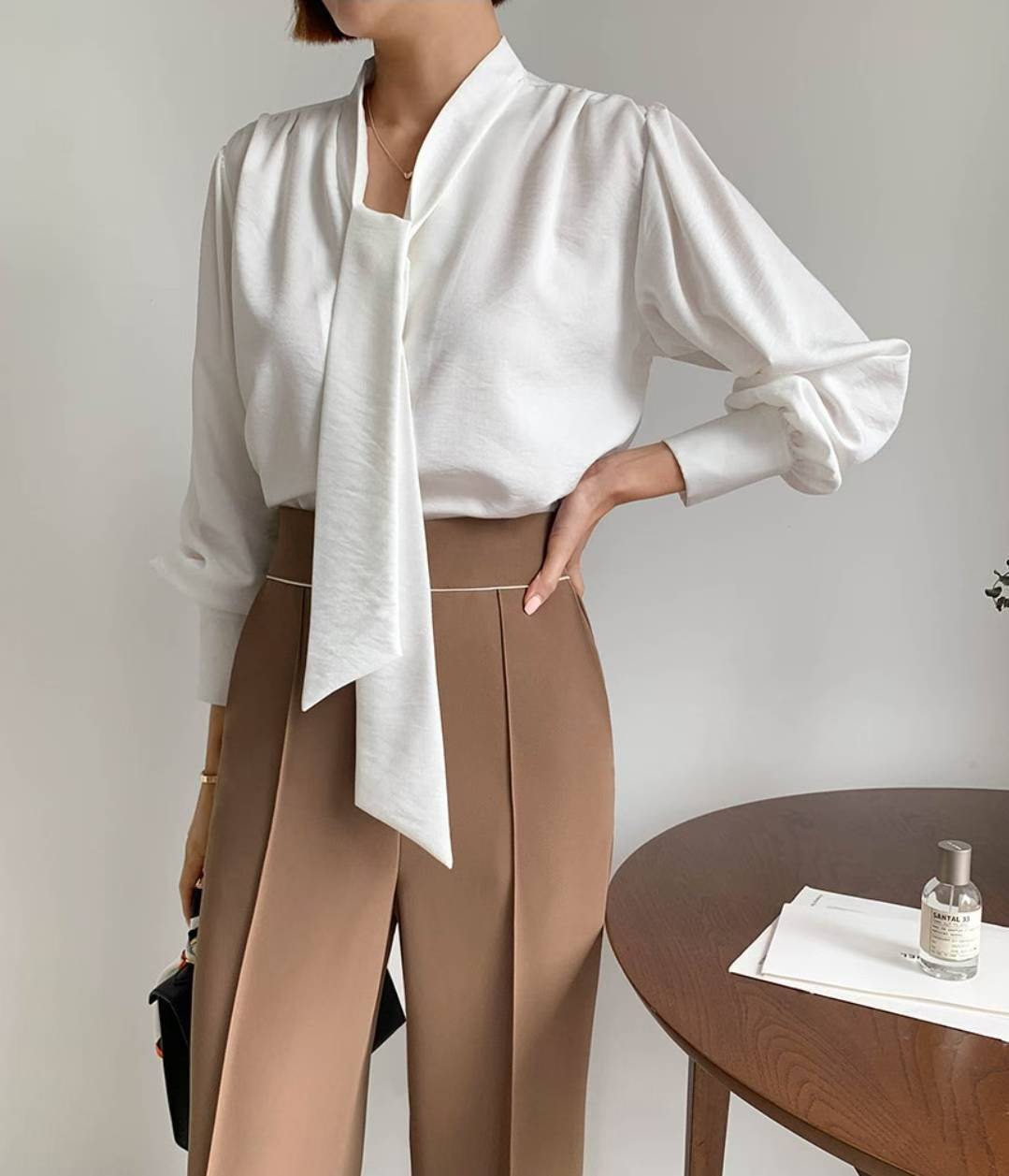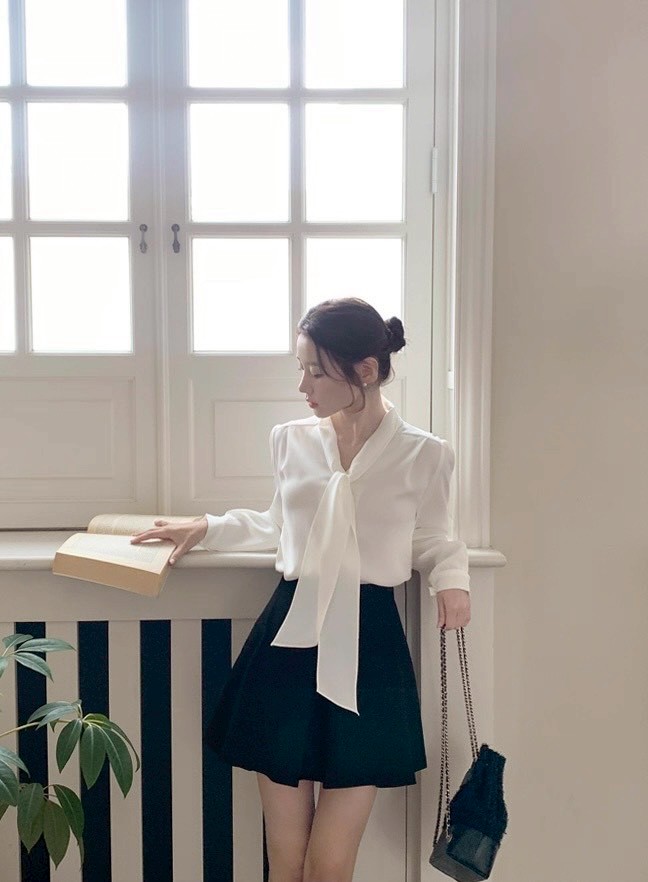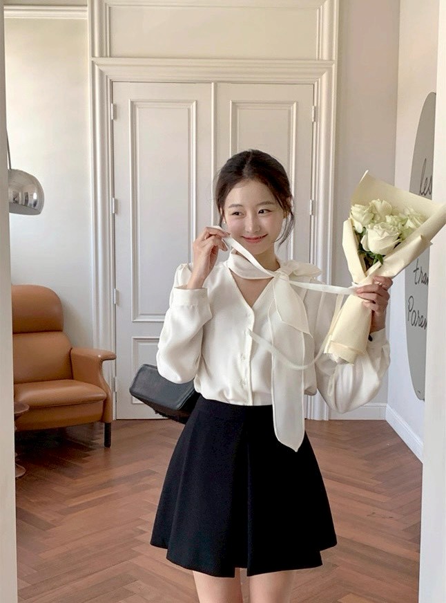 V領綁結雪紡衫
