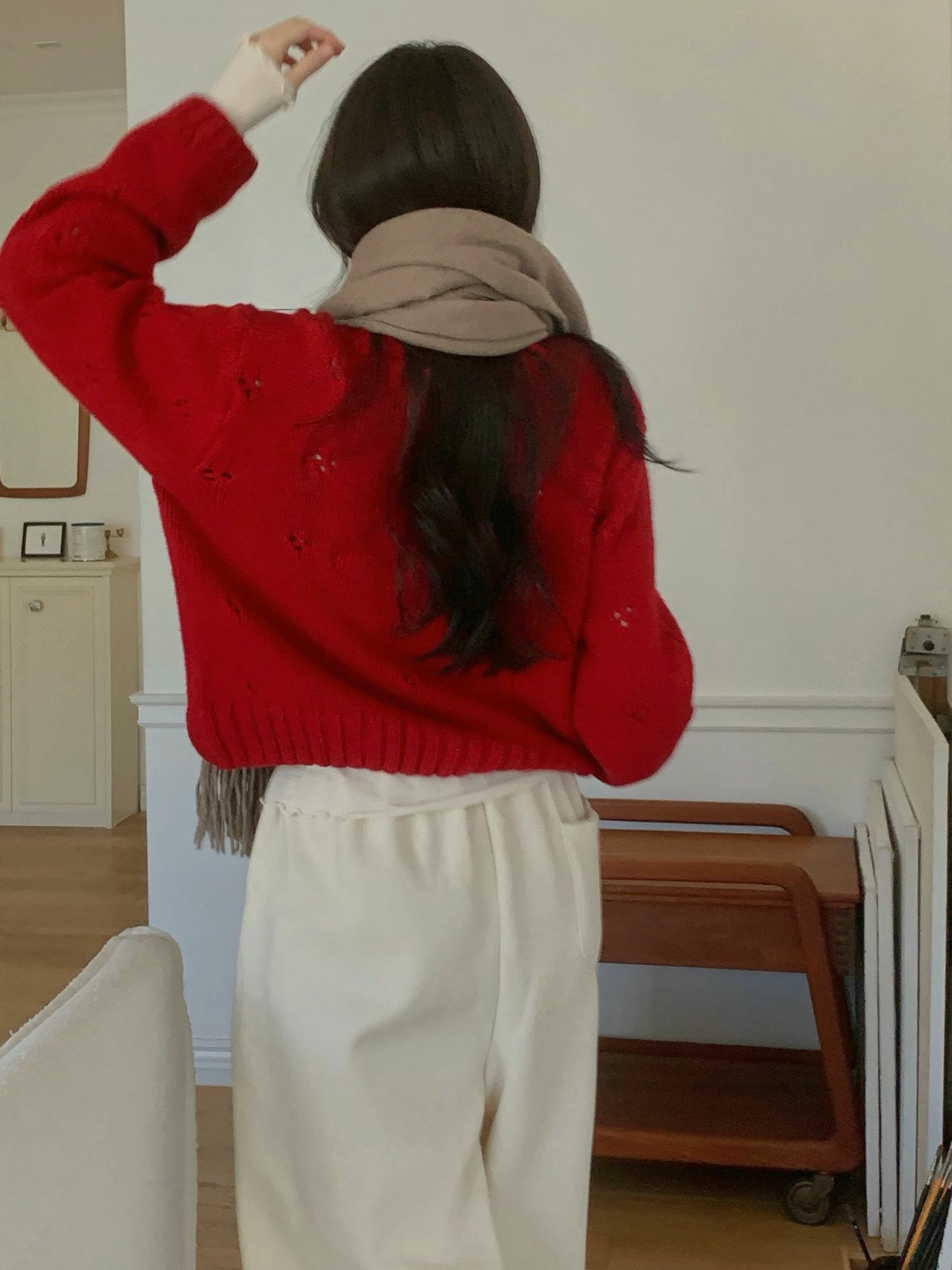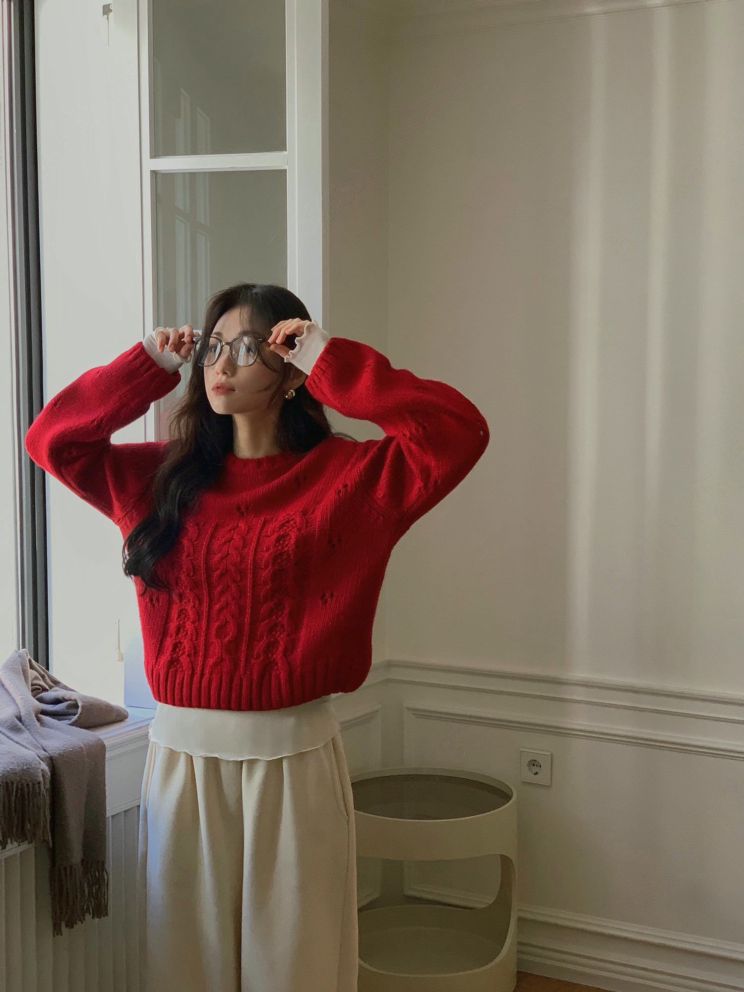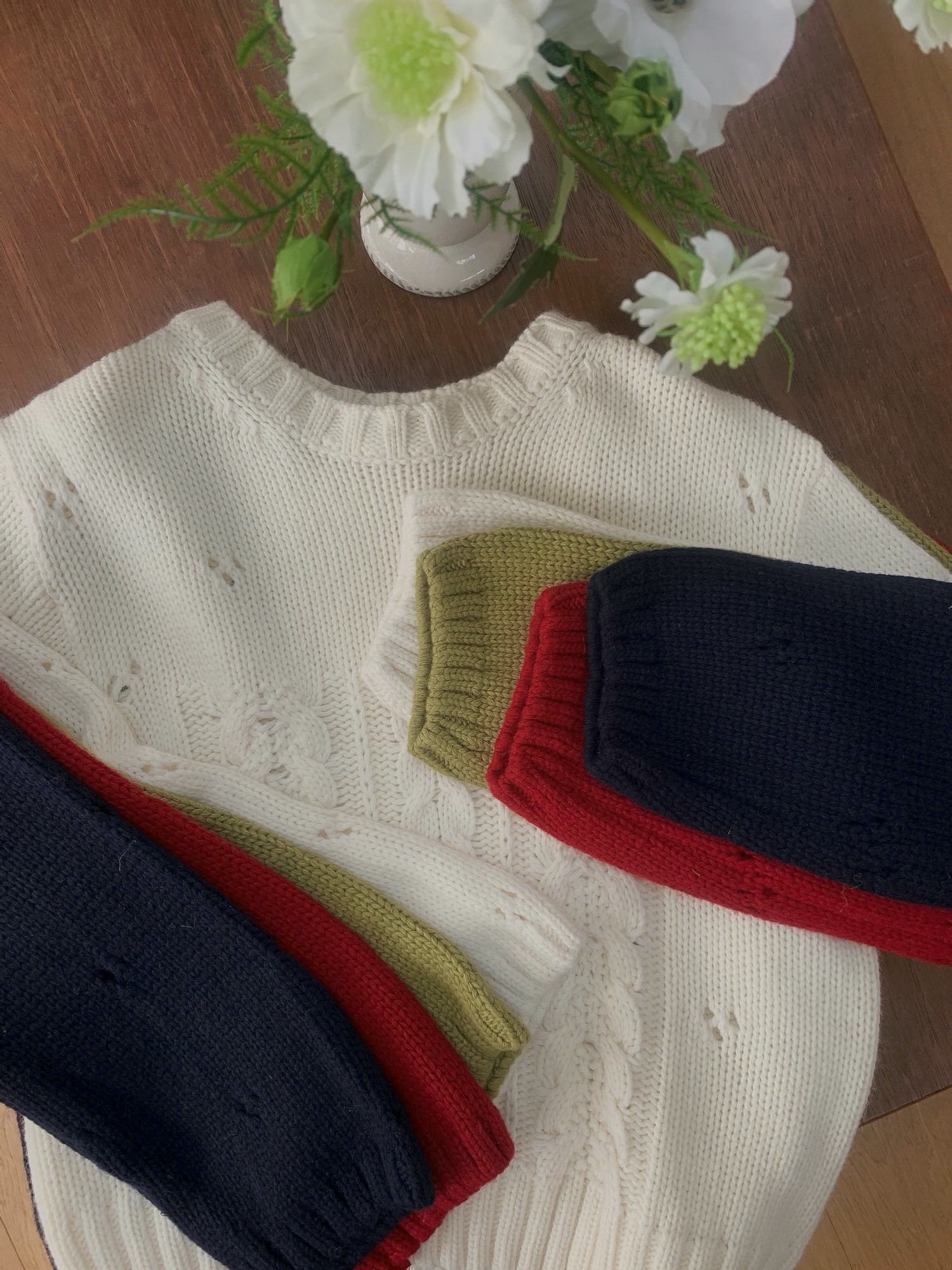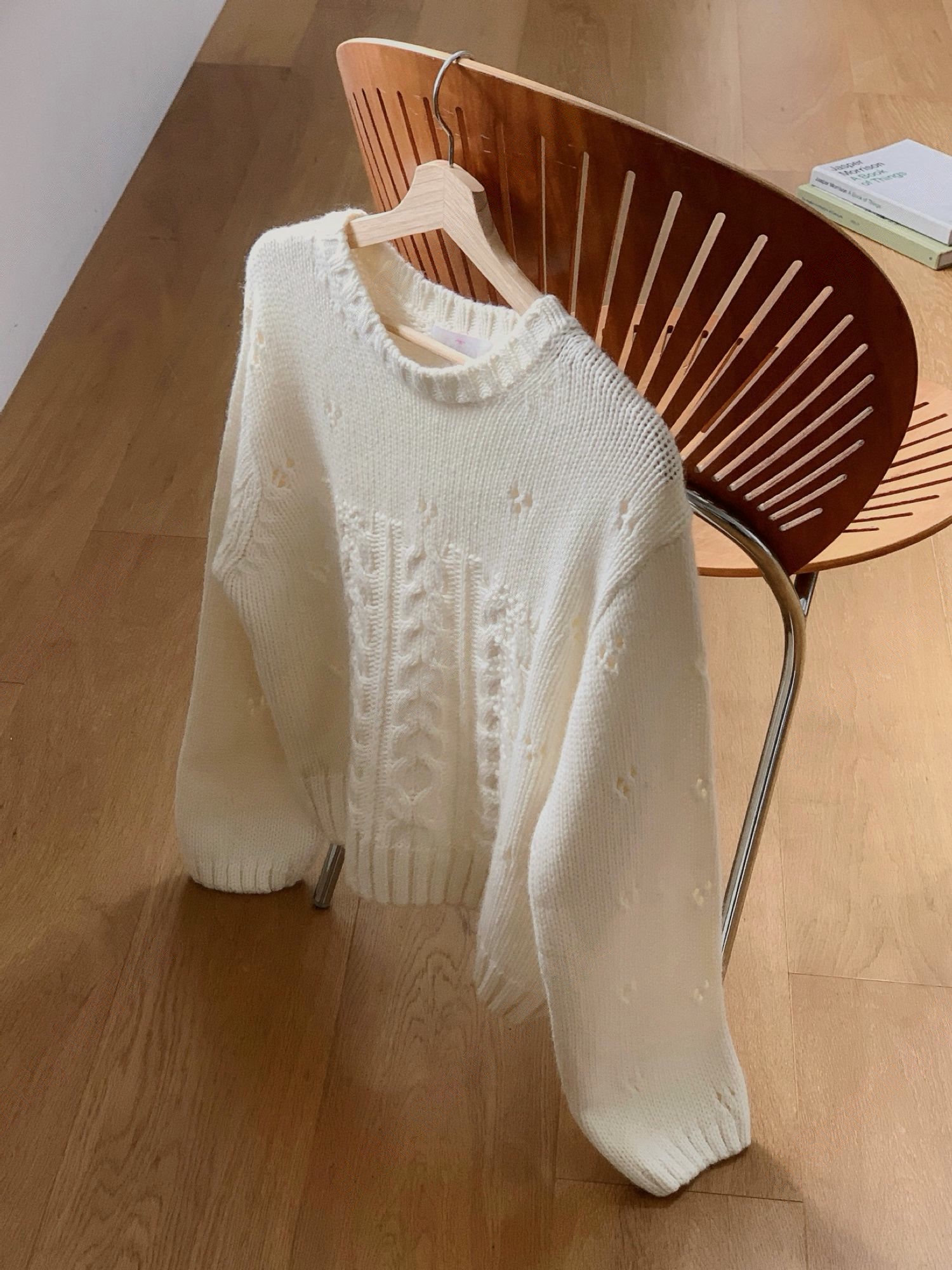小花鏤空麻花羊毛針織衣(羊毛30%)