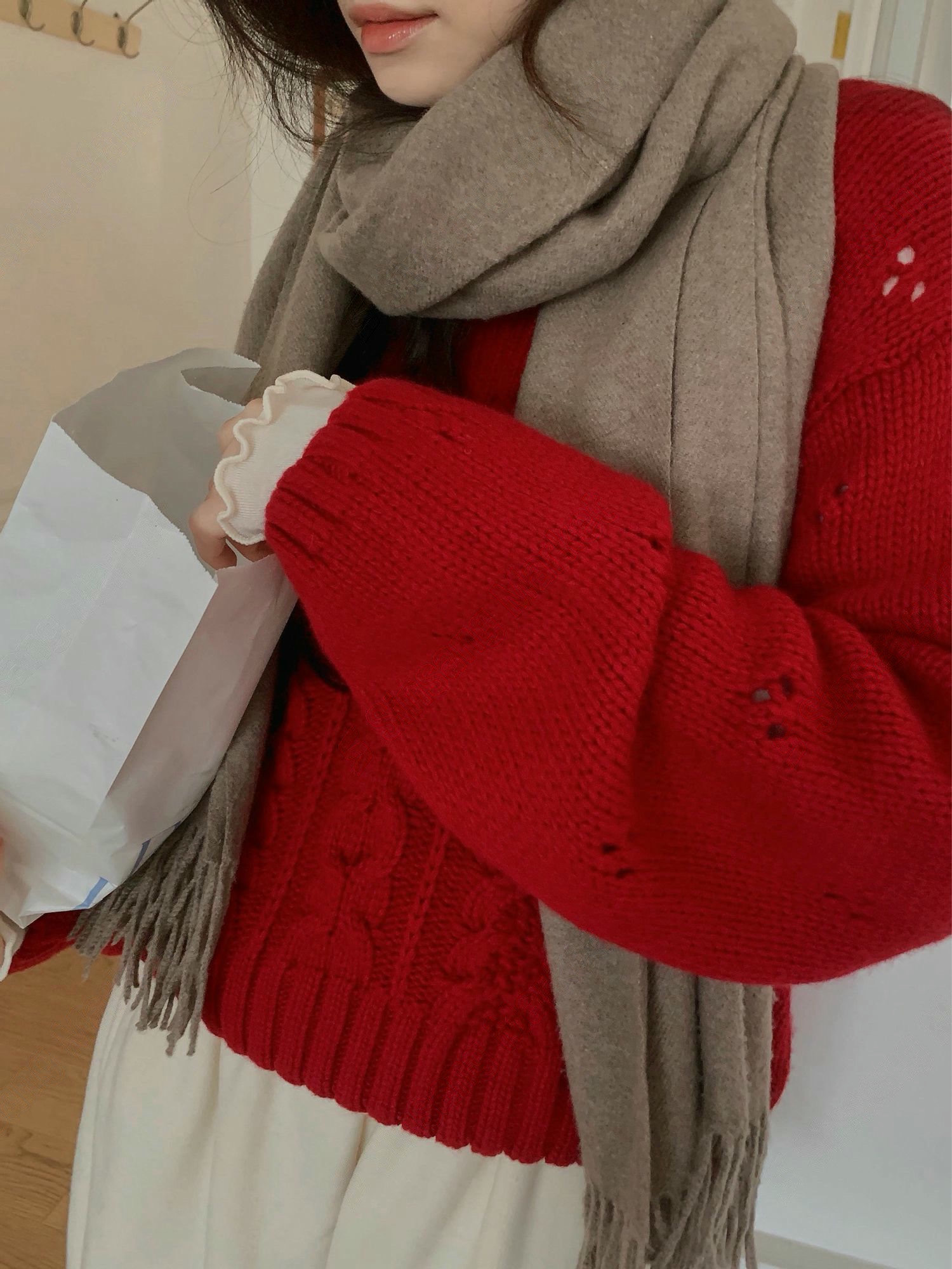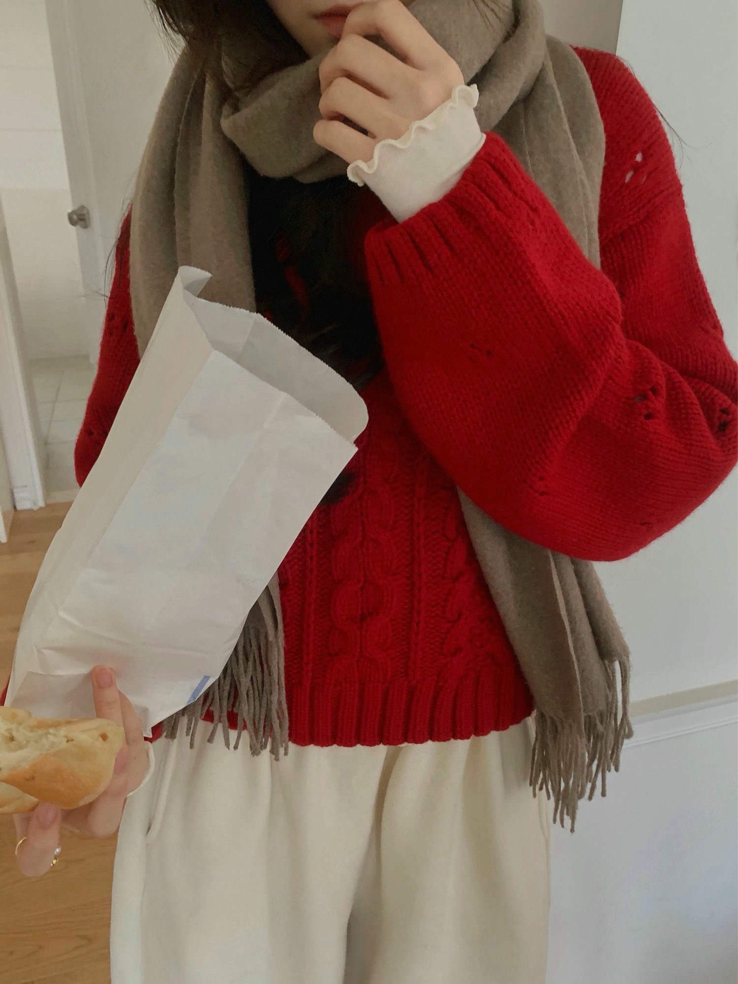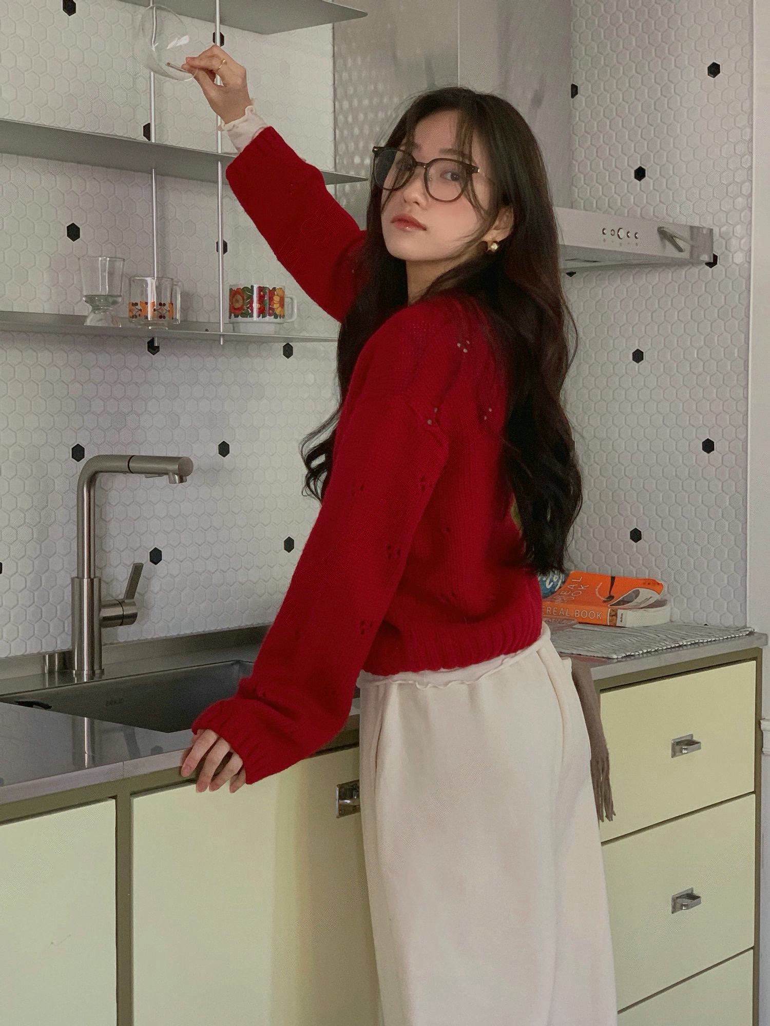 小花鏤空麻花羊毛針織衣(羊毛30%)