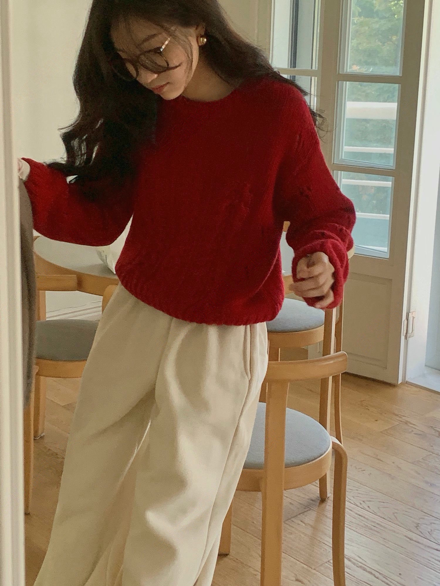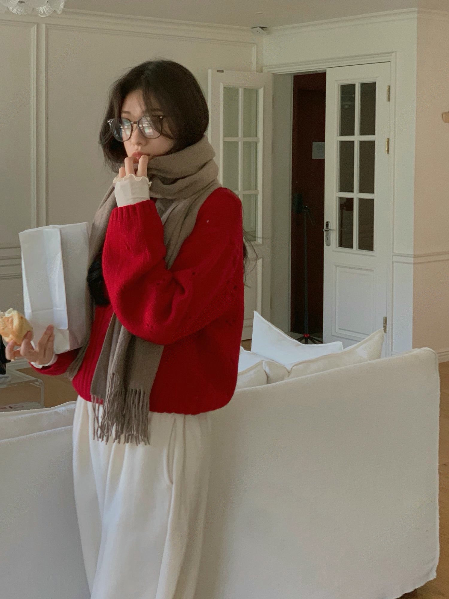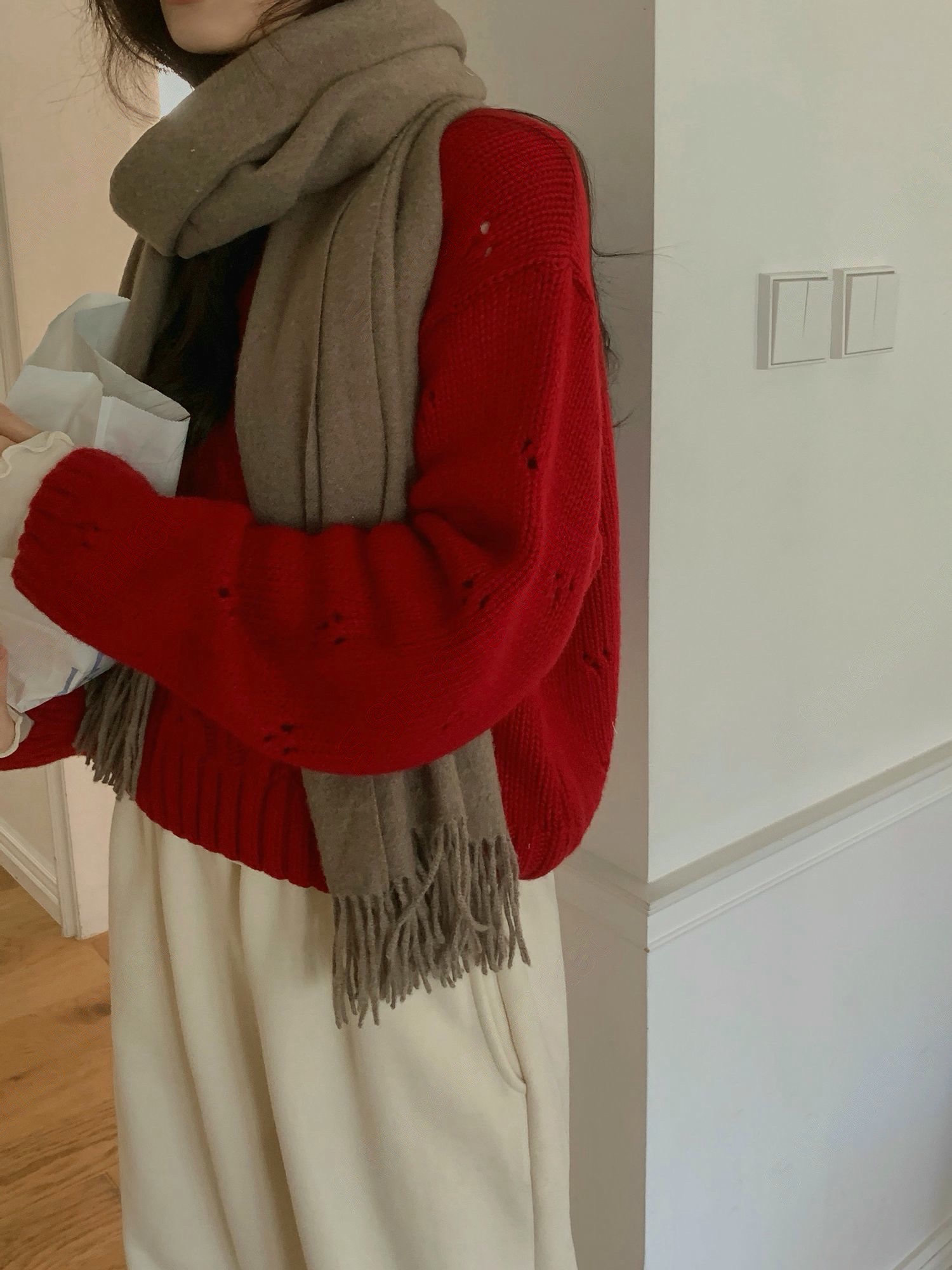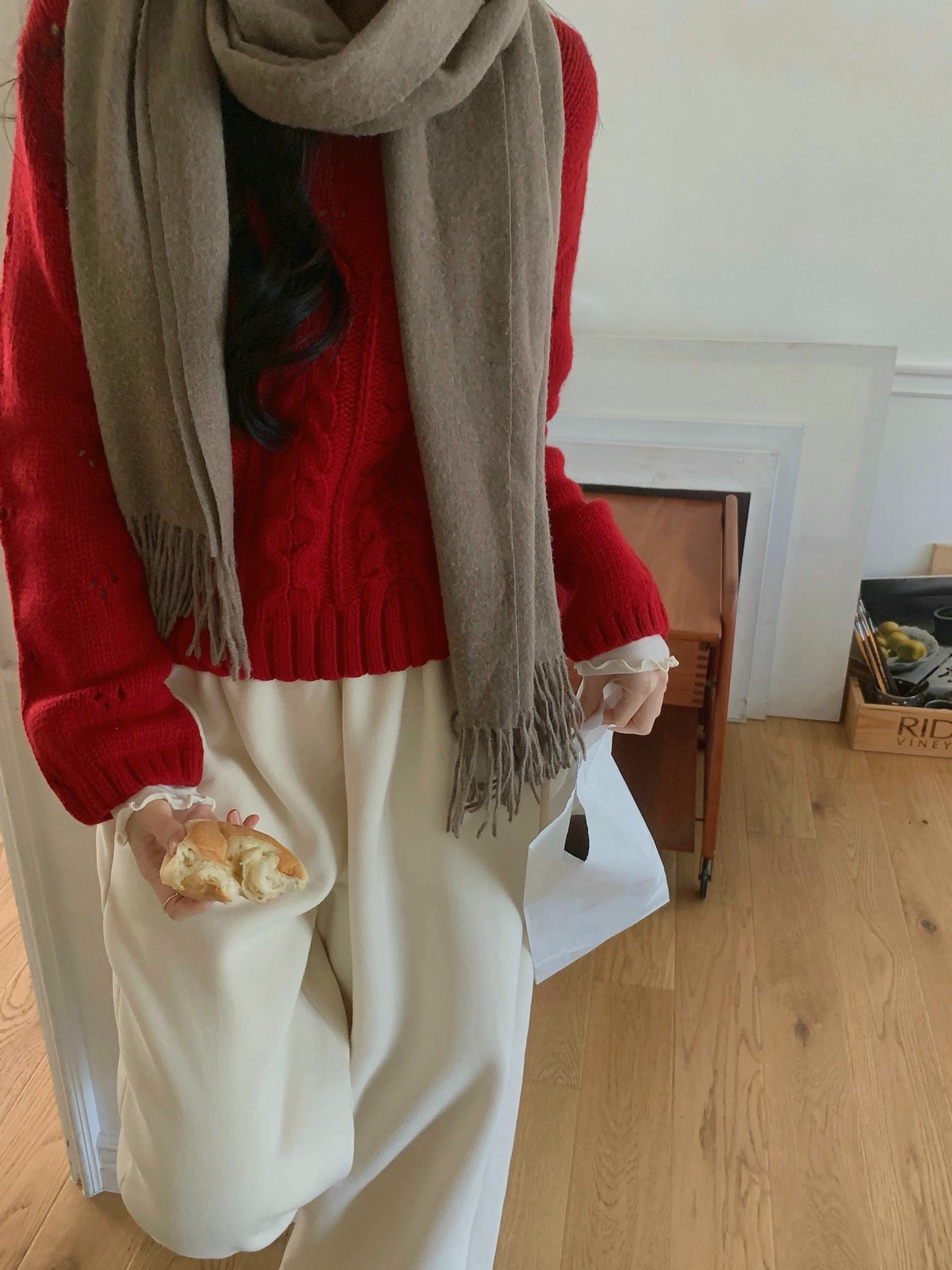 小花鏤空麻花羊毛針織衣(羊毛30%)