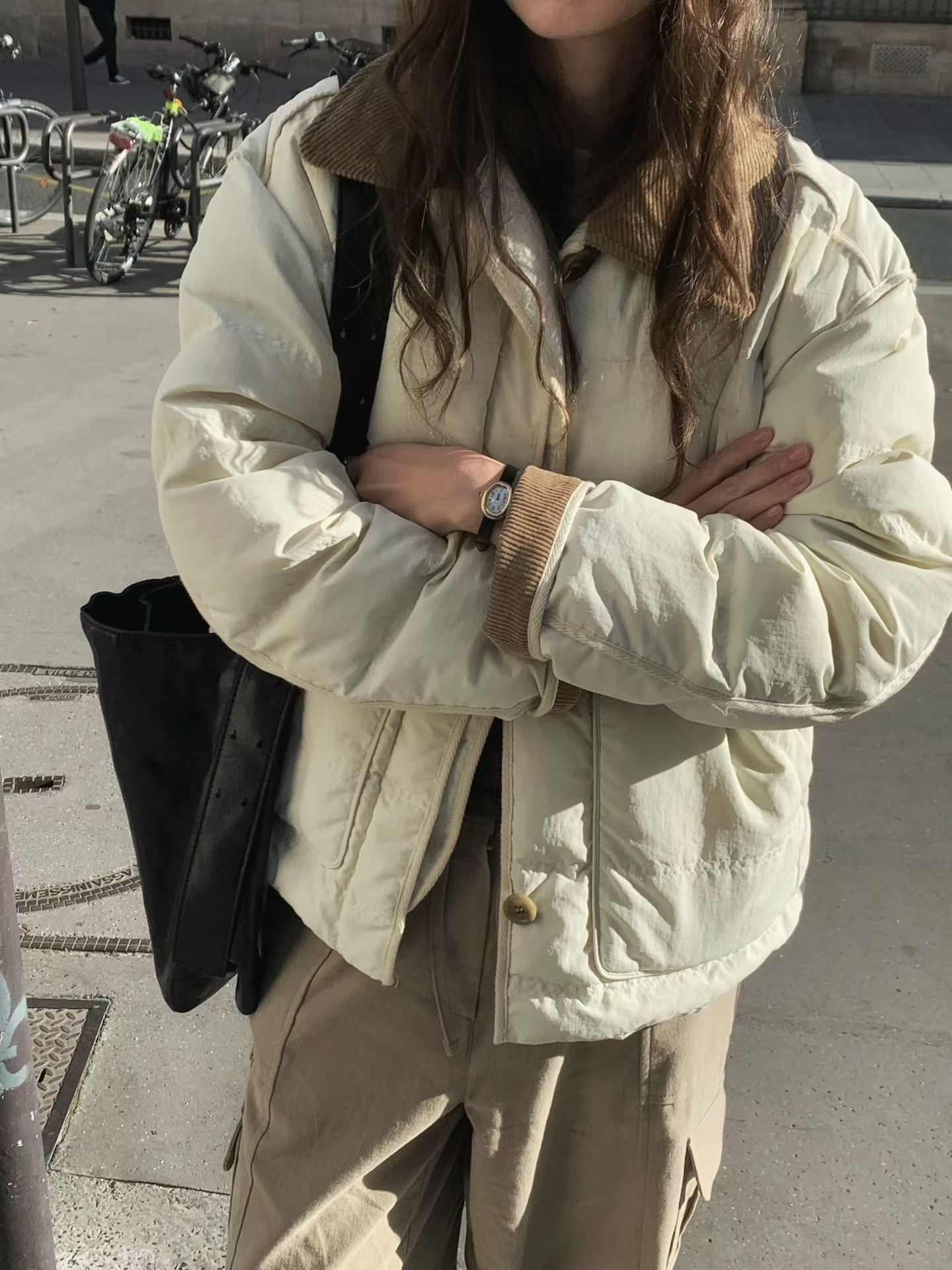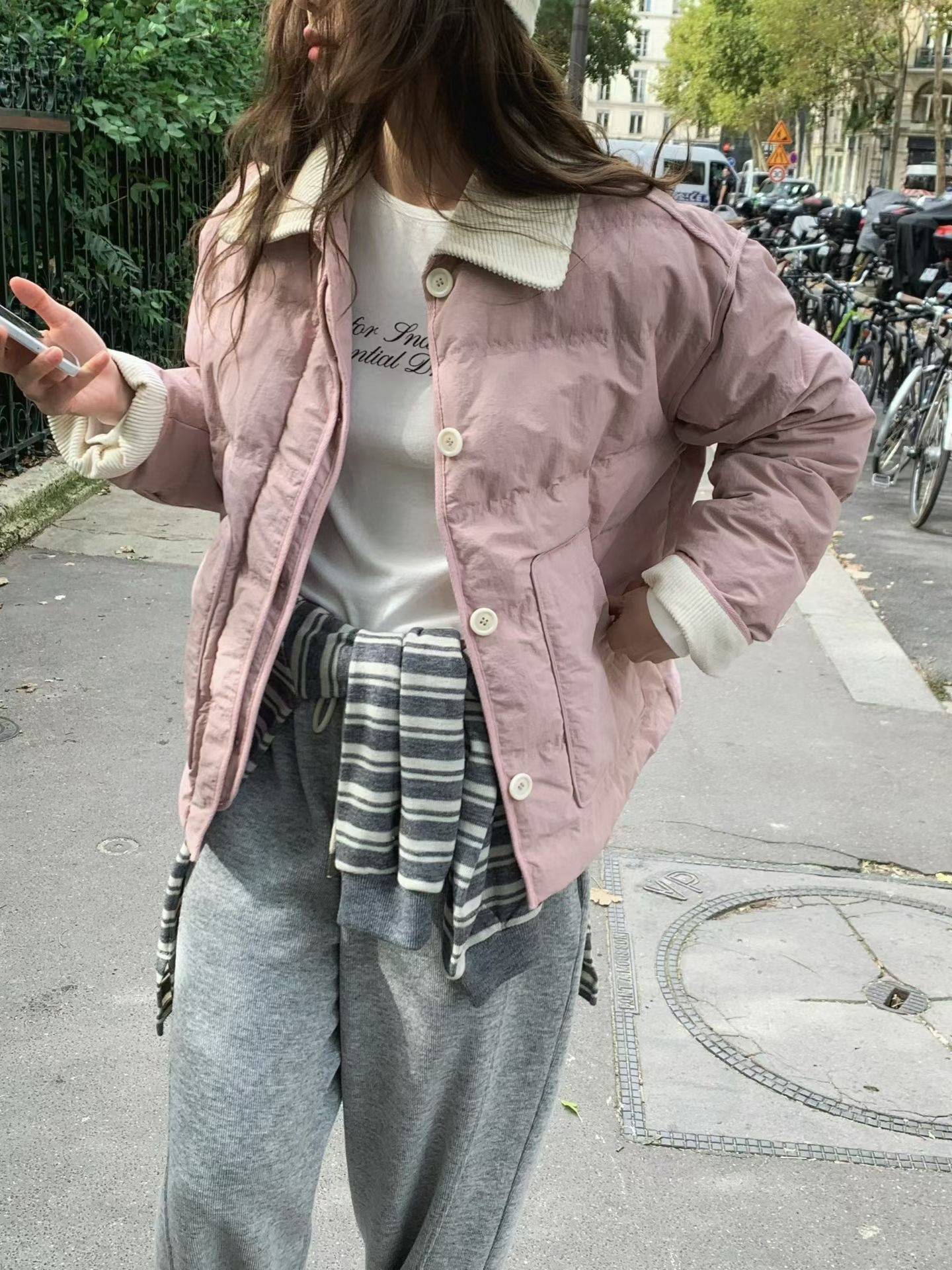 燈芯絨翻領100$鴨絨外套