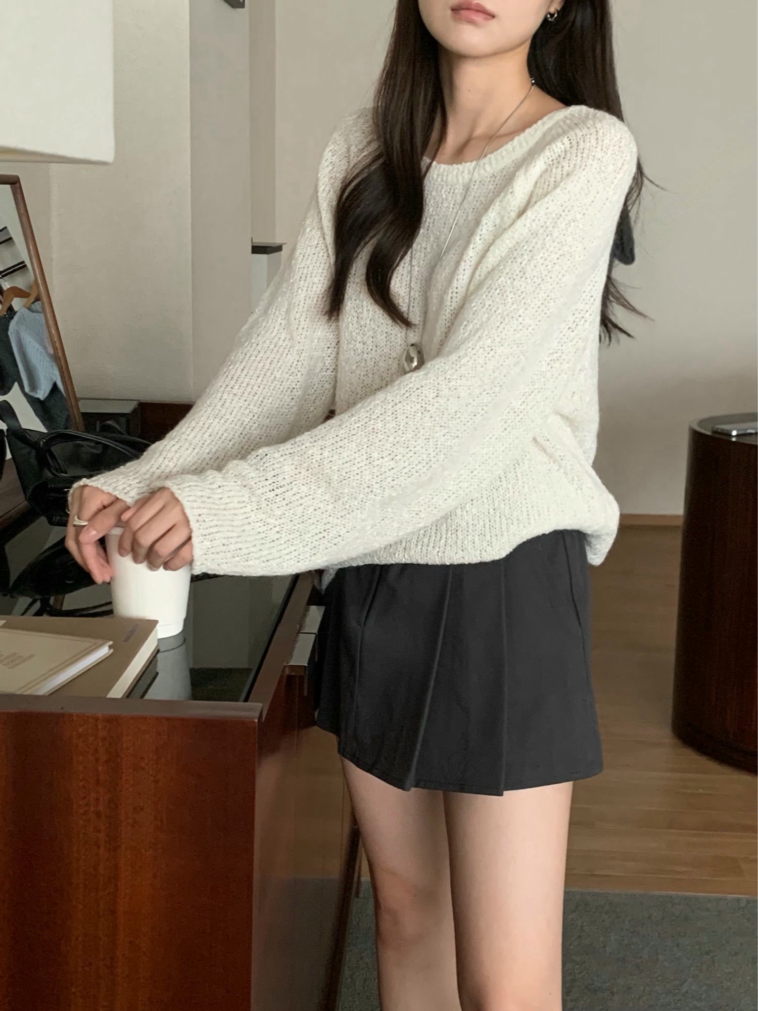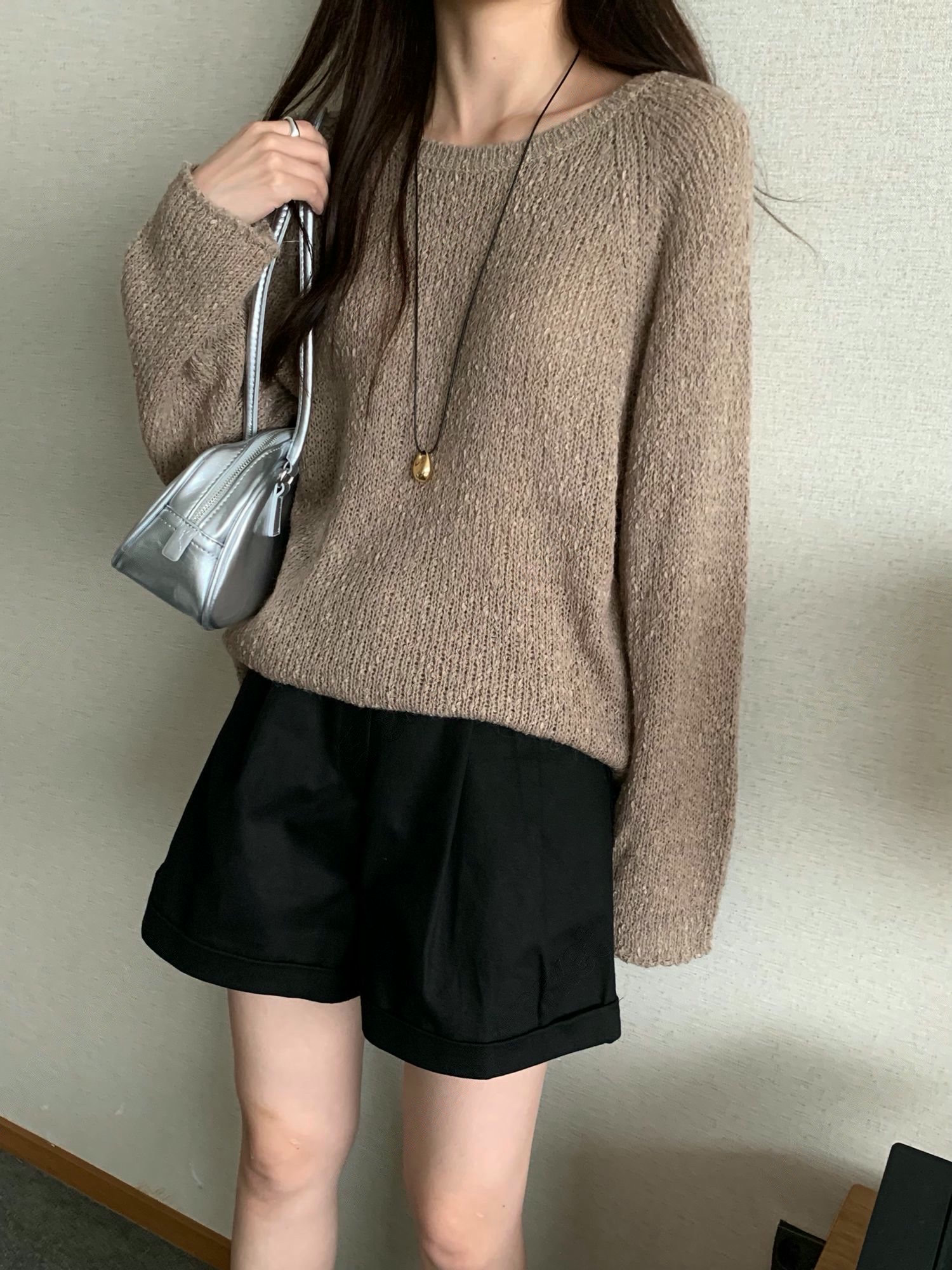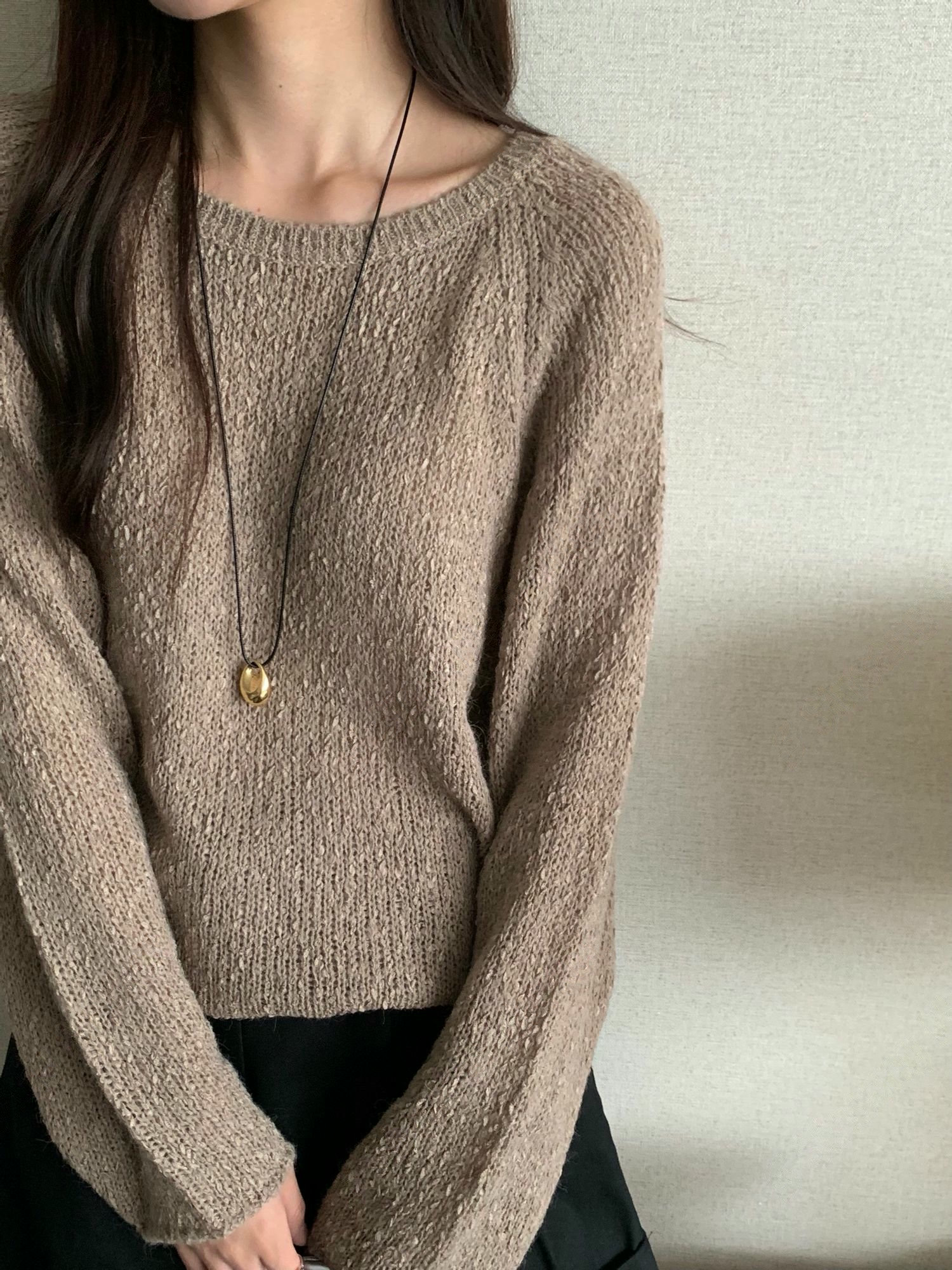 素色圓領柔軟織紋針織衫