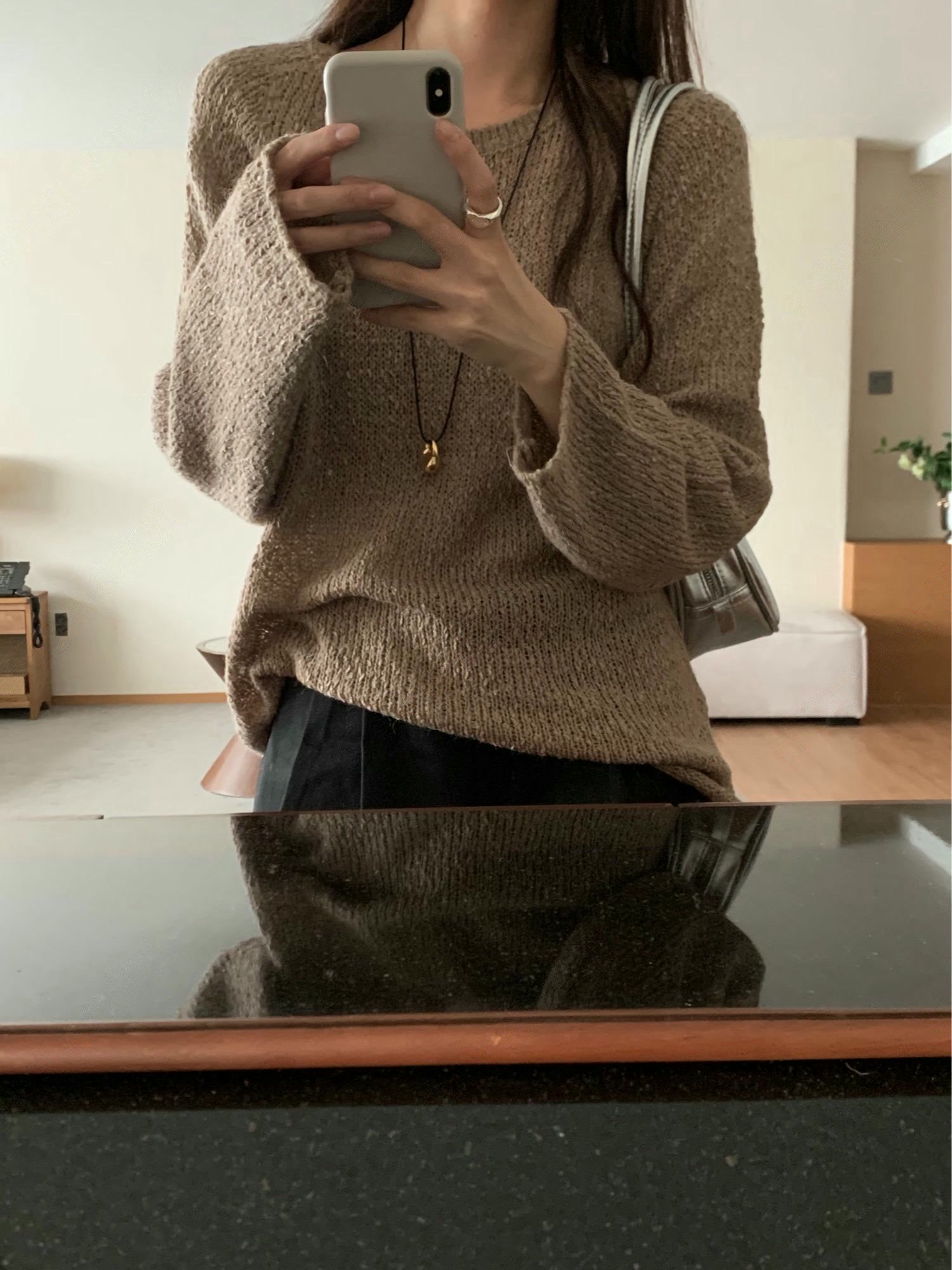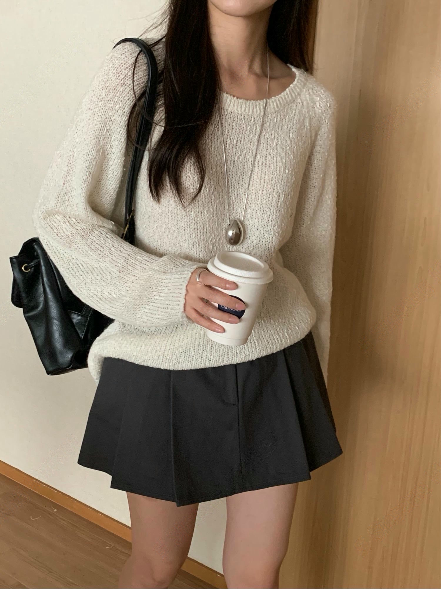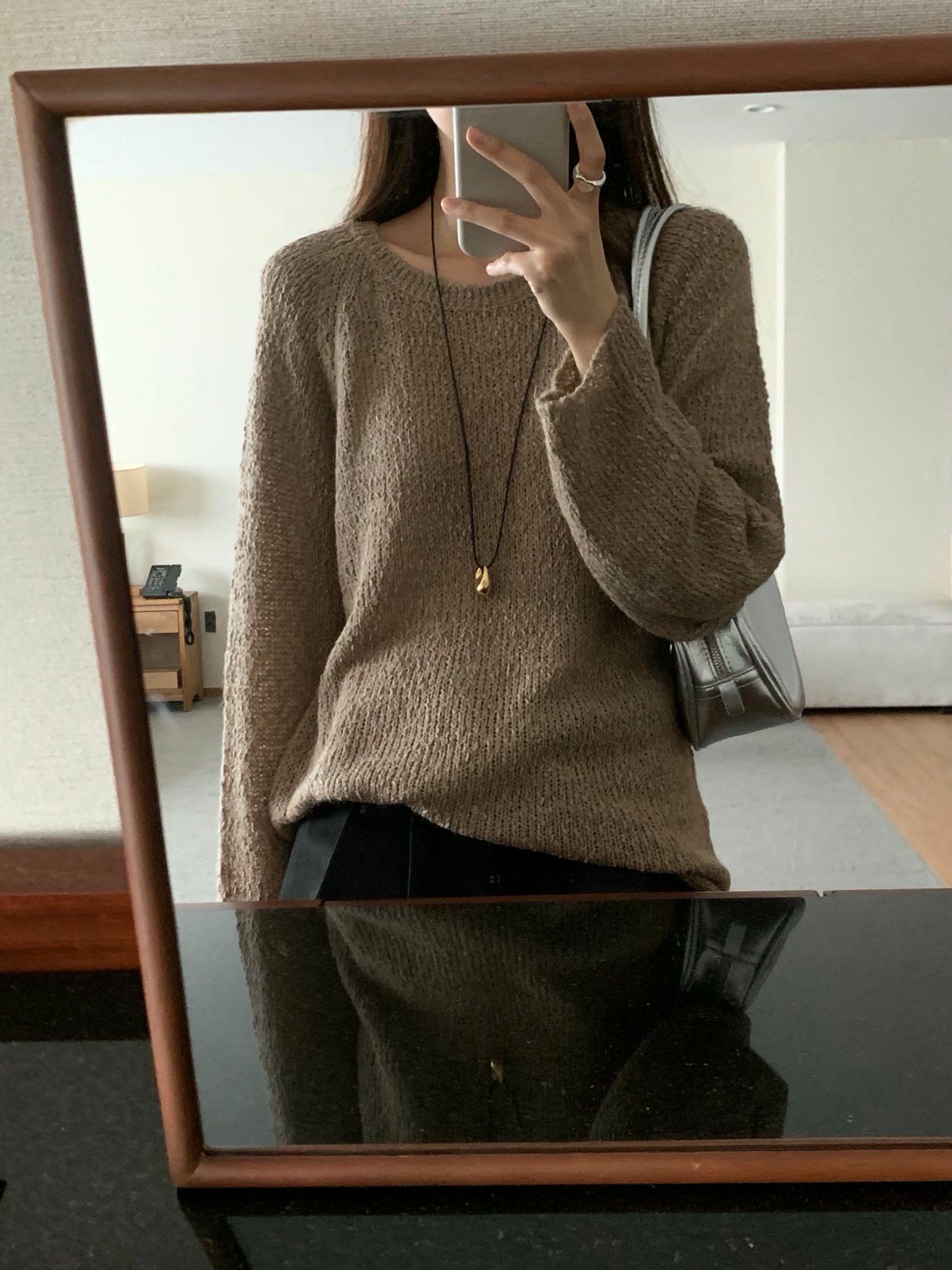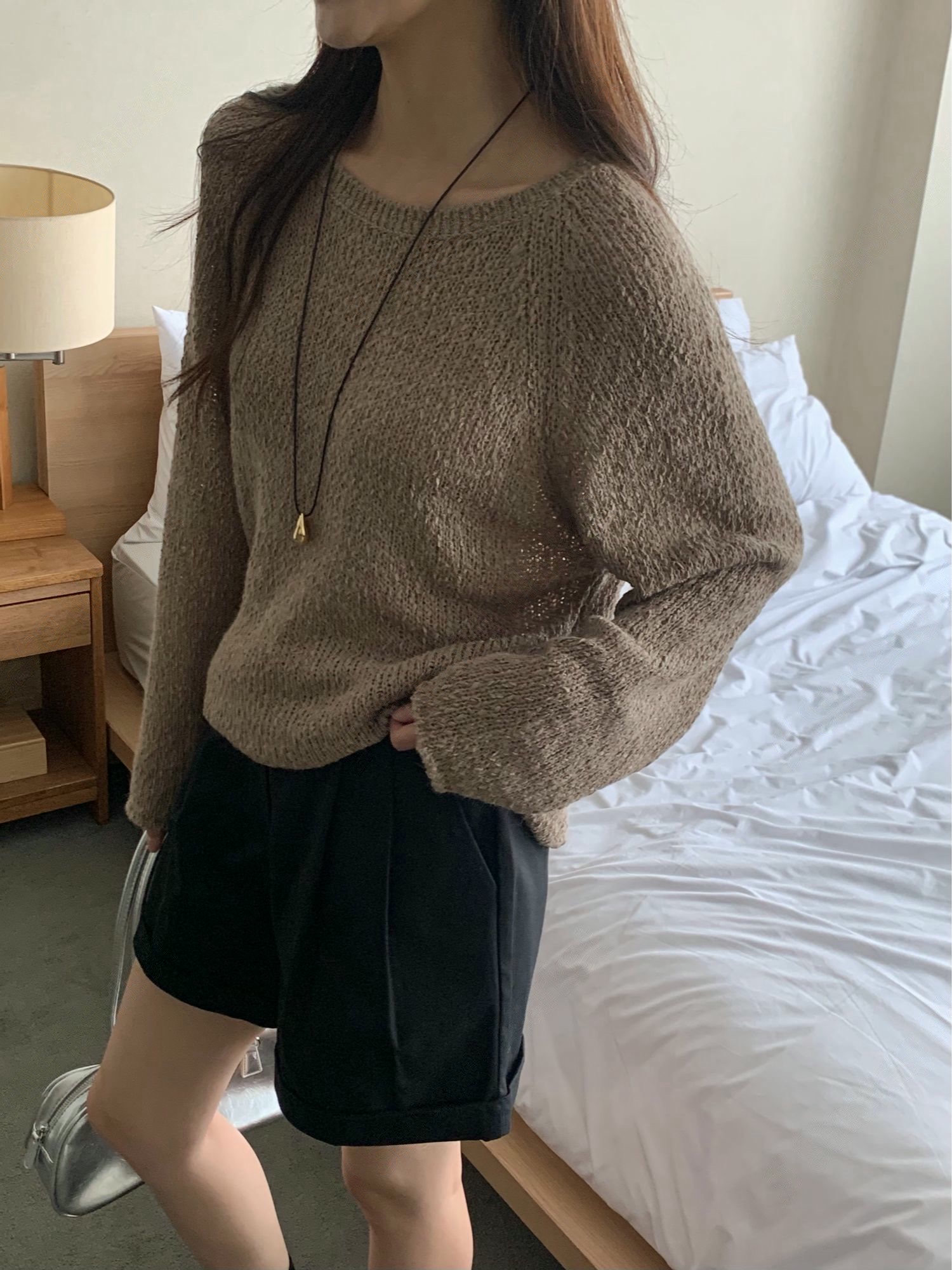 素色圓領柔軟織紋針織衫