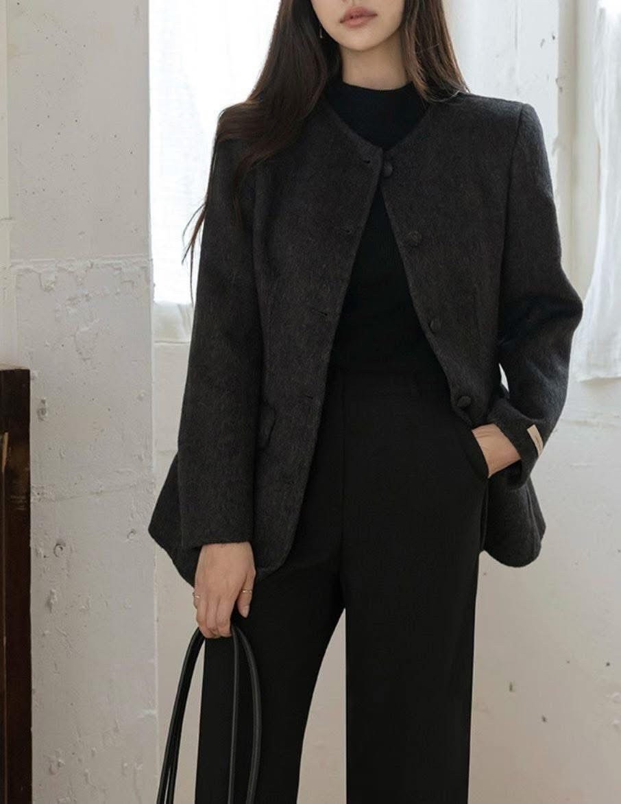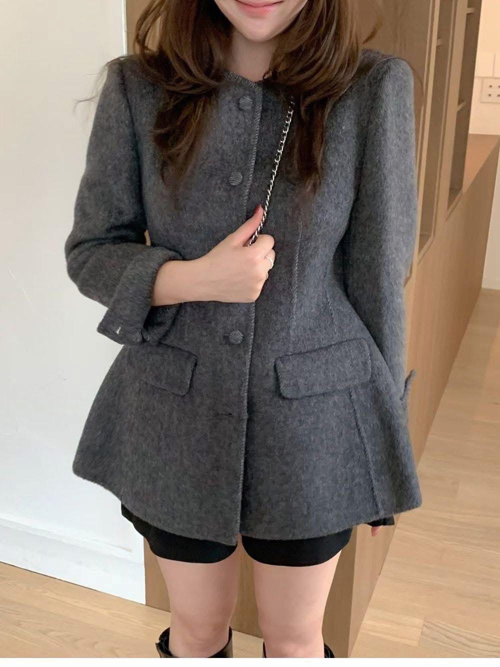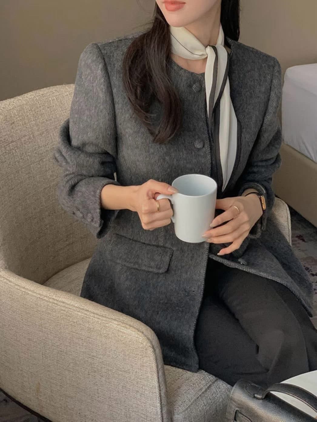墊肩腰線感中長款羊毛西裝外套
